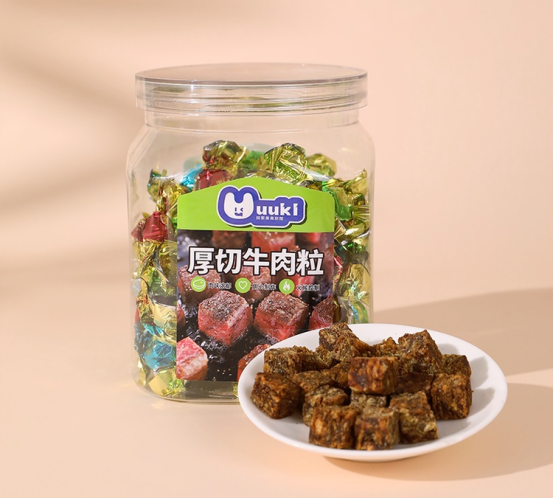 UUKI厚切牛肉粒 牛肉粒肉质紧实有嚼劲 肉香四溢,每一粒都充满了 浓郁的牛肉风味,咸淡适中 越嚼越香,是肉食爱好者的首选