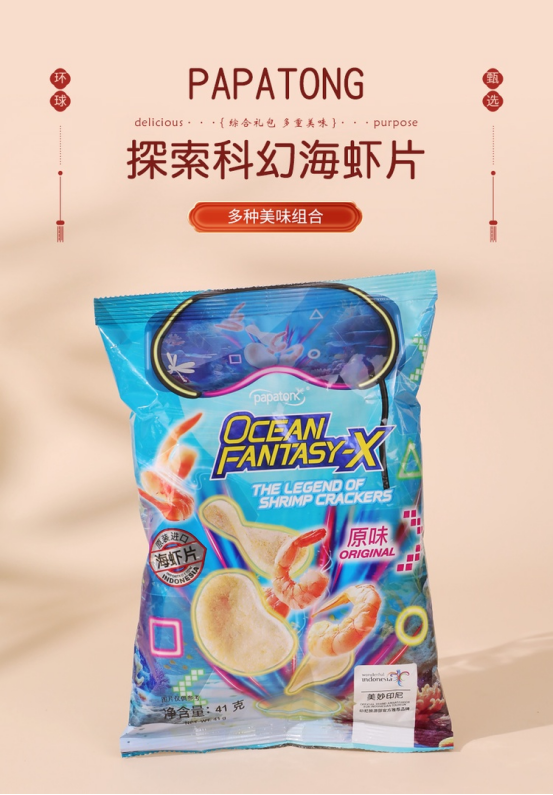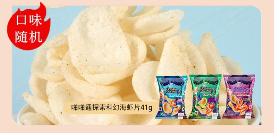 PAPATONG探索科幻海虾片 原味/番茄酸味/麻辣烫味随机发 海虾片口感酥脆鲜美,带有浓浓的 海鲜风味,每一片都薄如蝉翼 炸得金黄酥脆,让人一吃就停不下来 是海鲜爱好者的首选零食