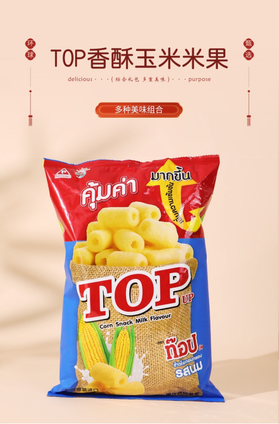 TOP香酥玉米米果 玉米米果口感酥脆香浓 每一口都能感受到玉米的 香甜和米果的酥脆 甜而不腻,是休闲时光的绝佳伴侣