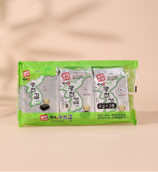韩国海苔 海苔口感薄脆鲜美,带有 淡淡的海鲜风味,每一口 都能感受到海苔的鲜脆和 自然的咸香,是健康零食的优选