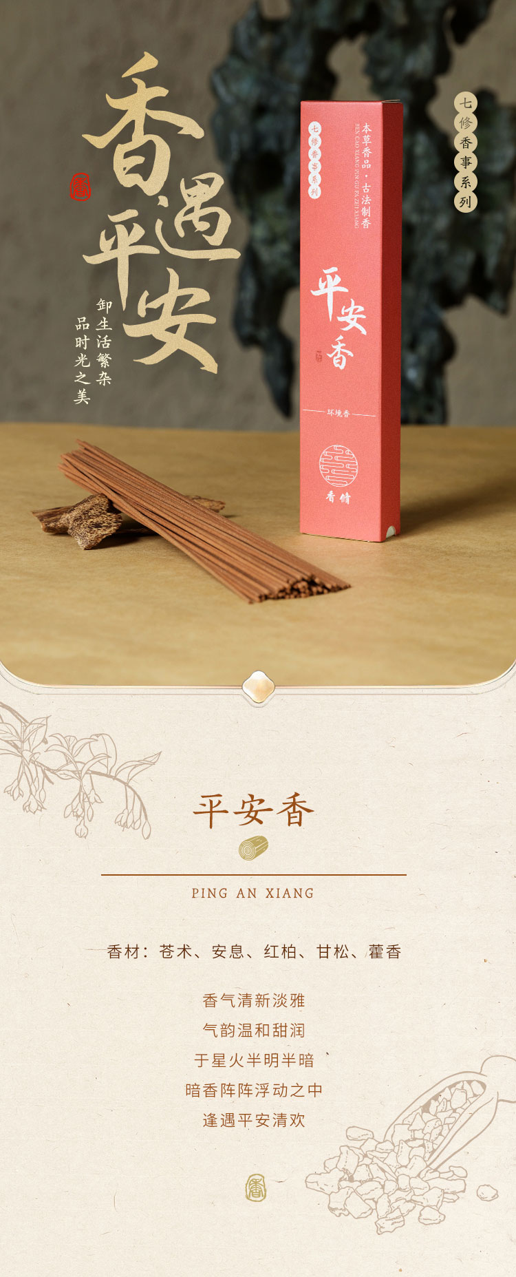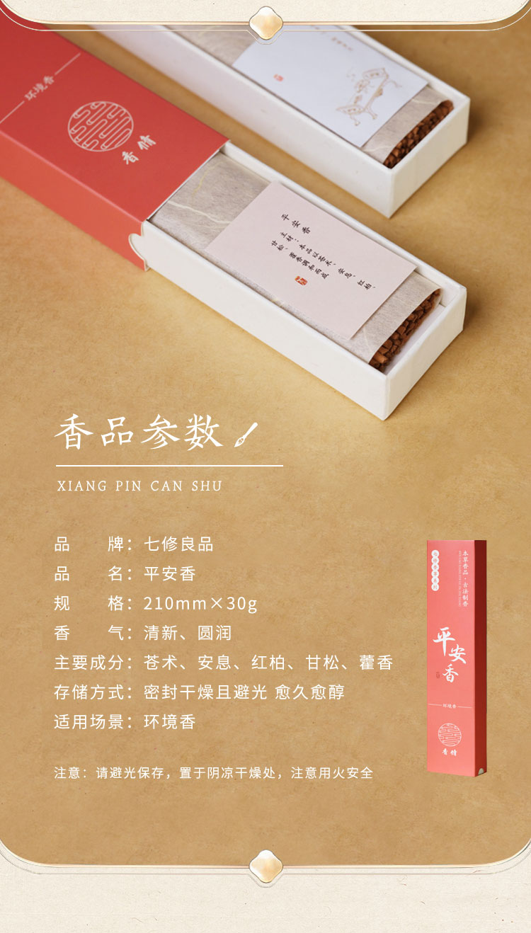 七修平安香30g/盒 21cm 环境香 香气清新 圆润 送礼佳品