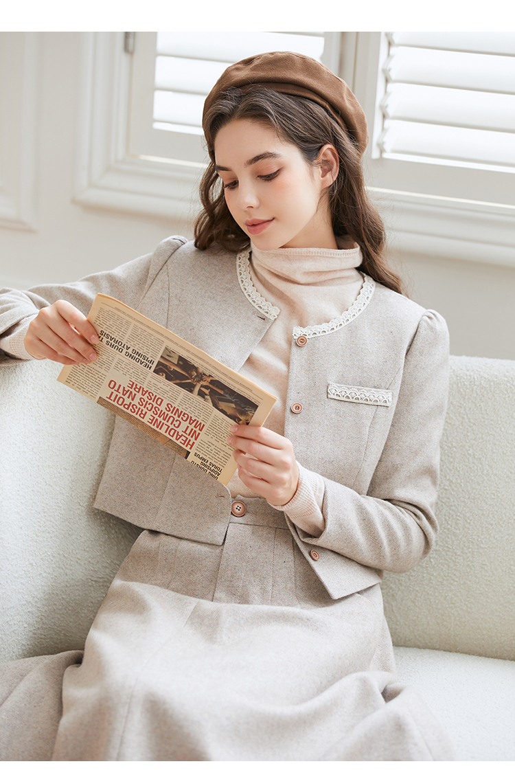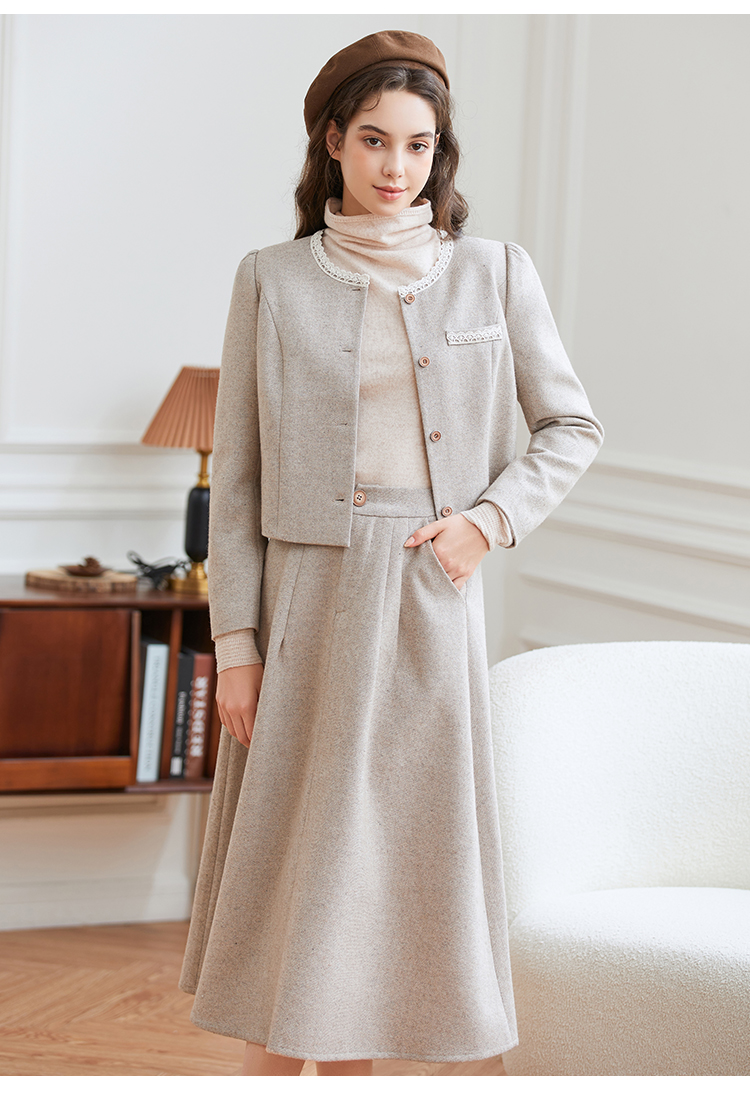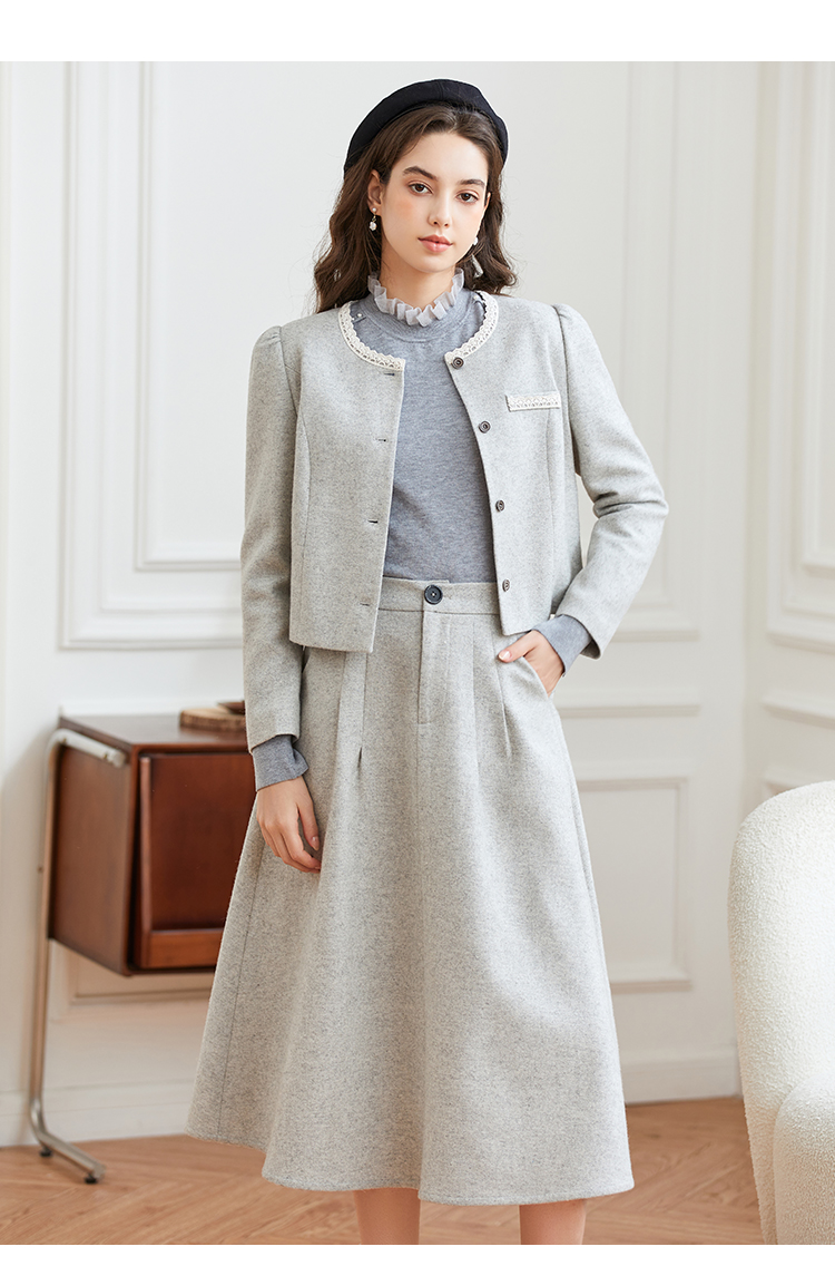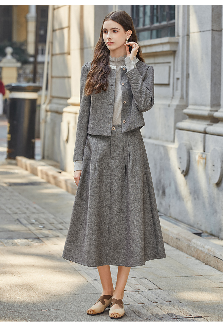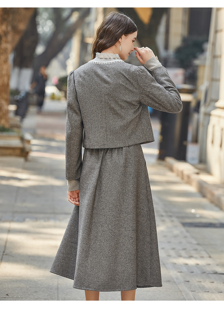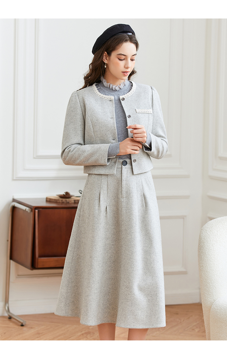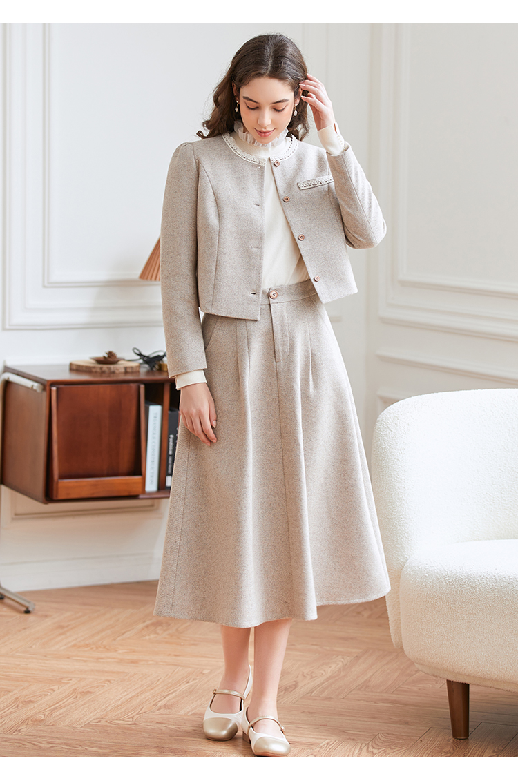 Famecoco范可儿小香风开衫半身裙两件套装FAB8EA021