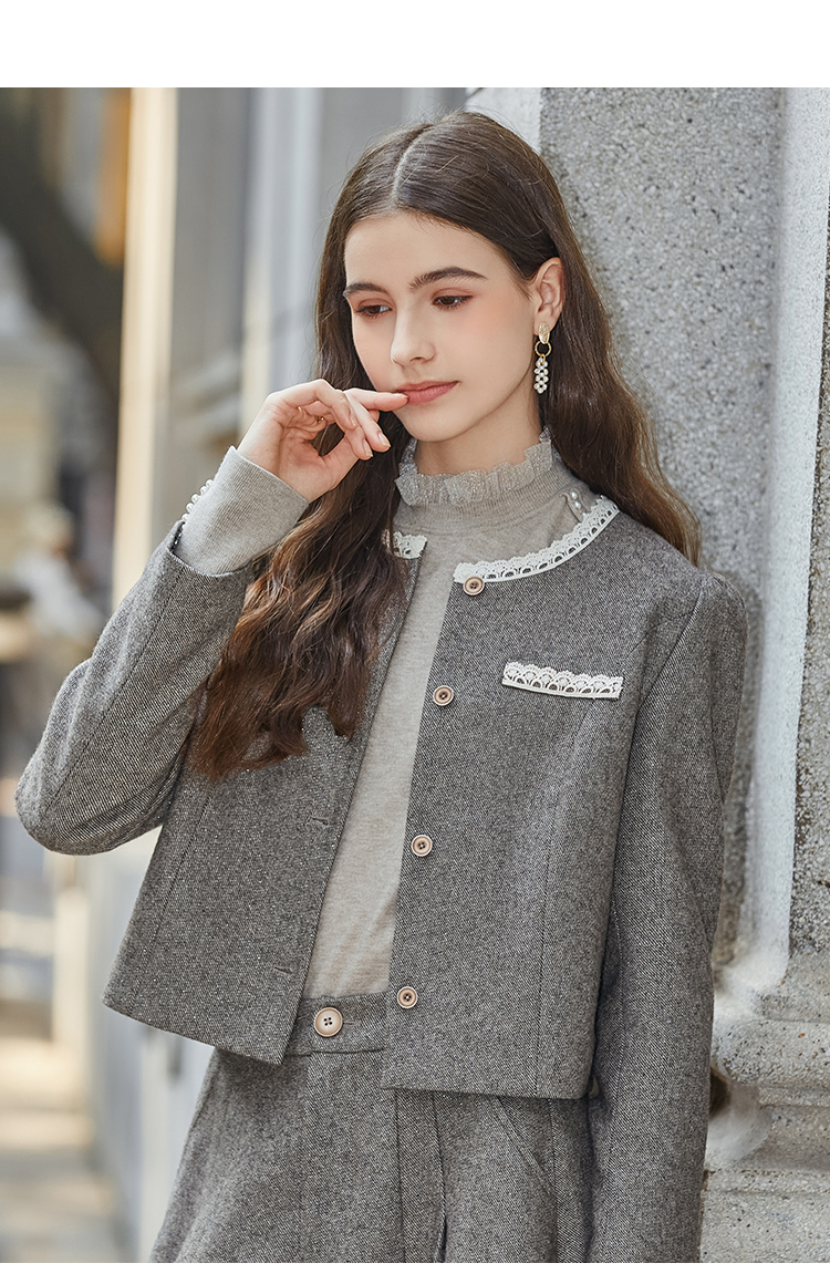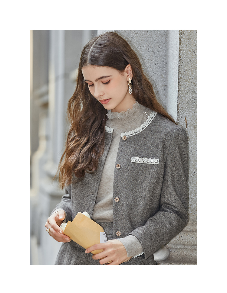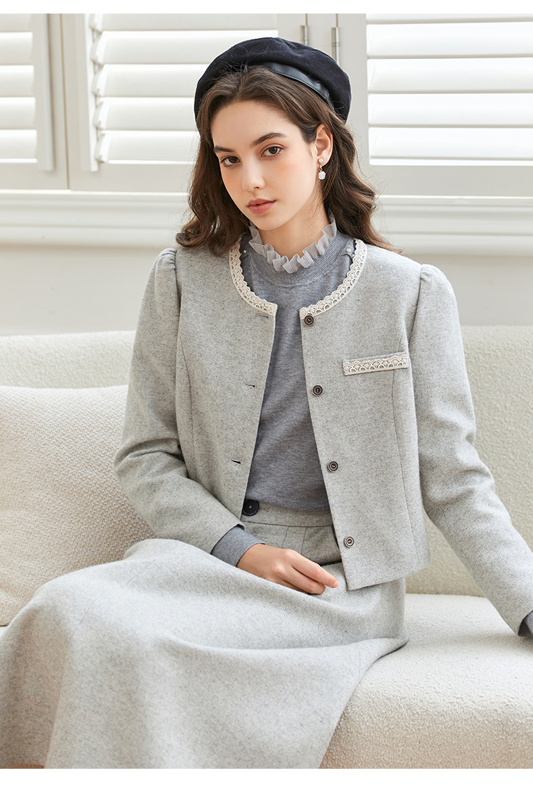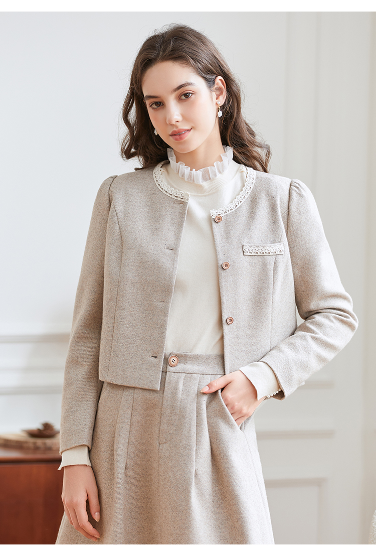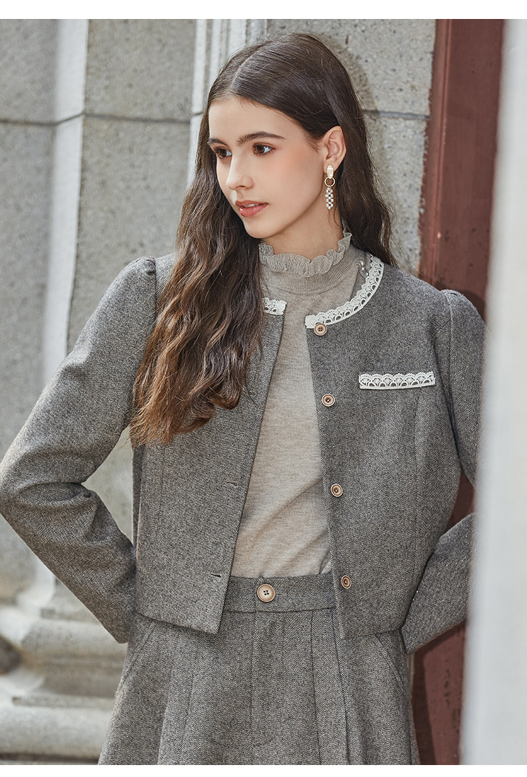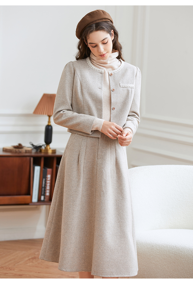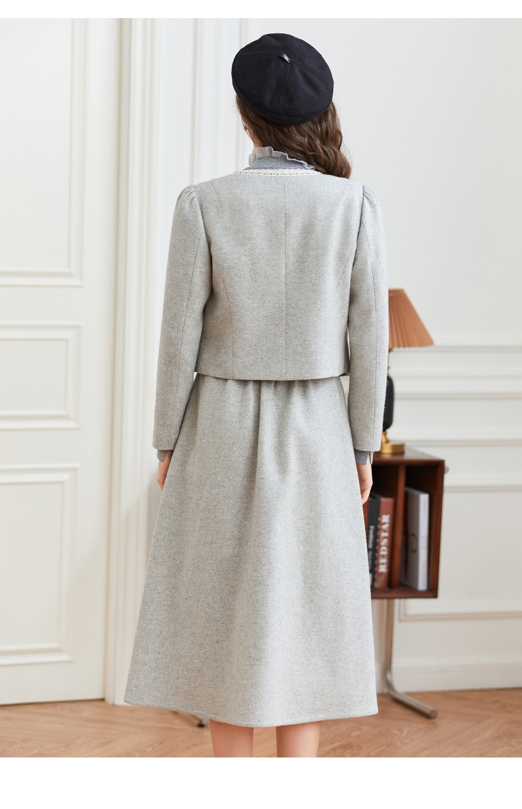 Famecoco范可儿小香风开衫半身裙两件套装FAB8EA021