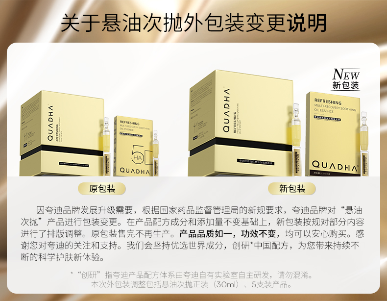 夸迪舒润稳肌悬油次抛精华液 1ml×30支/盒 小金管精华液 以油养肤 多维修护
