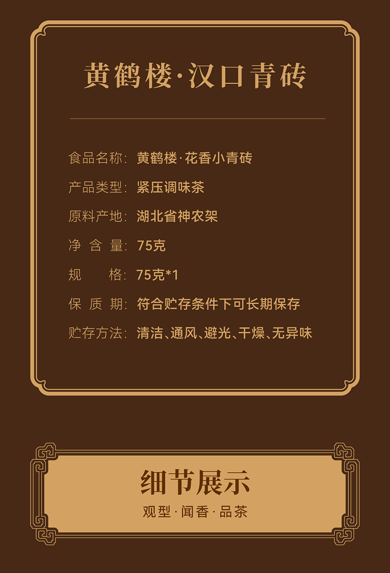 【武汉-江夏】江城百臻黄鹤楼汉口青砖茶小罐装75g多口味茶叶
