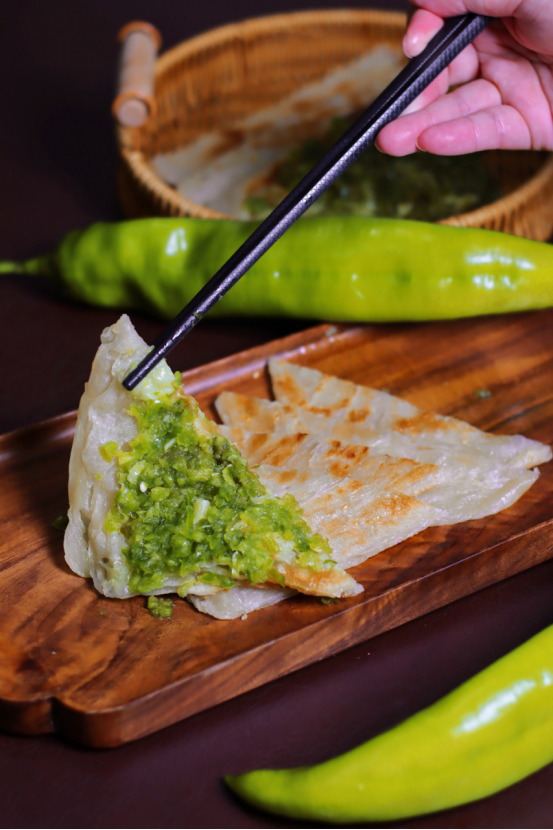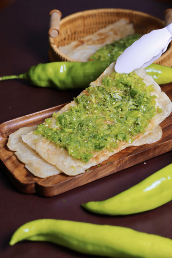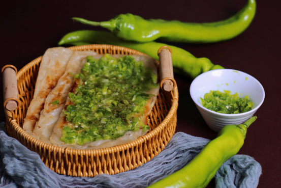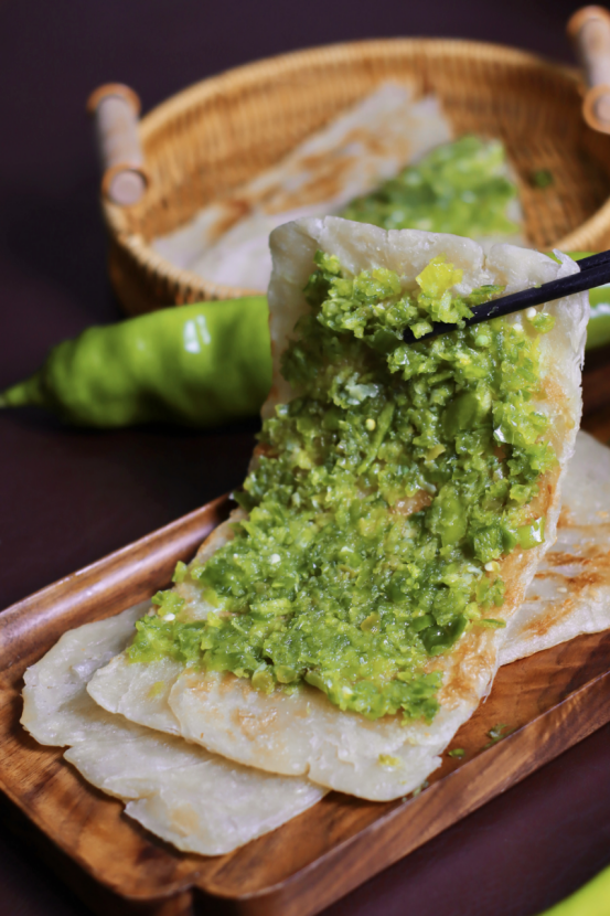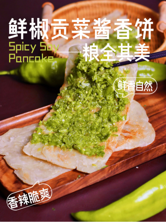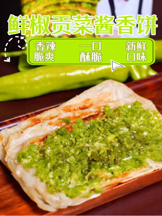 粮全其美—鲜椒贡菜酱香饼✅ 随时随地,咸鲜解馋!😭😭 不同于靠调味和炒制来爆香的传统辣椒酱 🥰鲜椒酱追求的是青椒本身的鲜香。