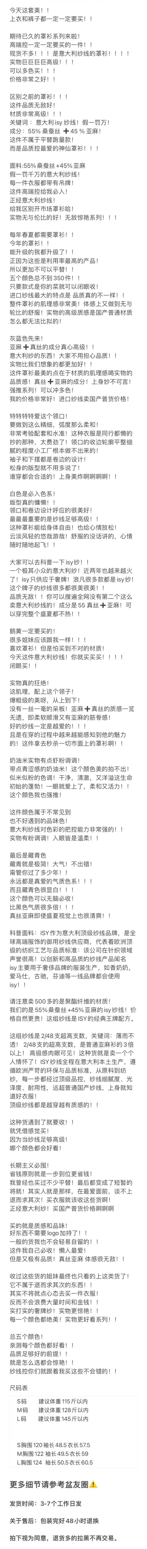 重磅渠道 isy意大利纱线罩衫 慵懒氛围感 55桑蚕丝45亚麻 春夏必备!