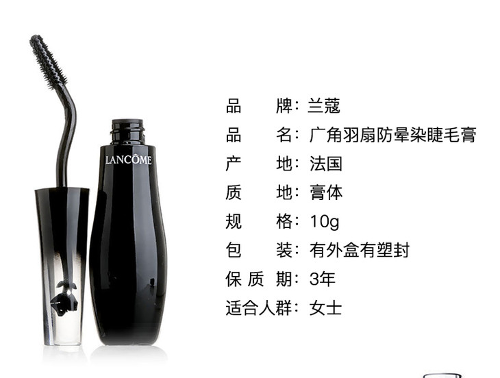 【香港直邮】兰蔻(LANCOME) 广角羽扇防晕染睫毛膏(天鹅颈睫毛膏) 01# 10g