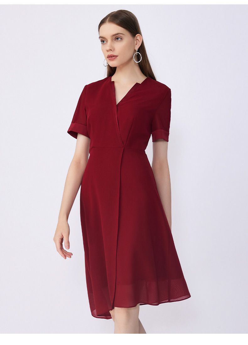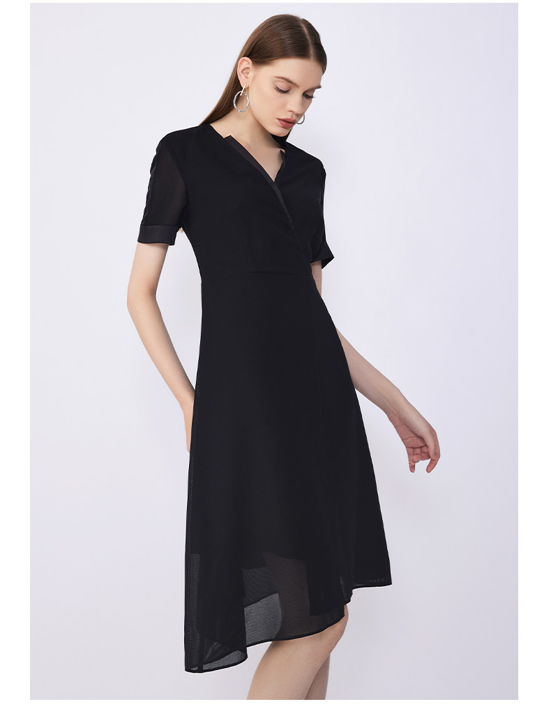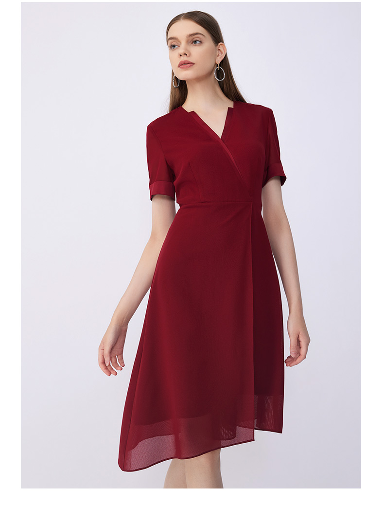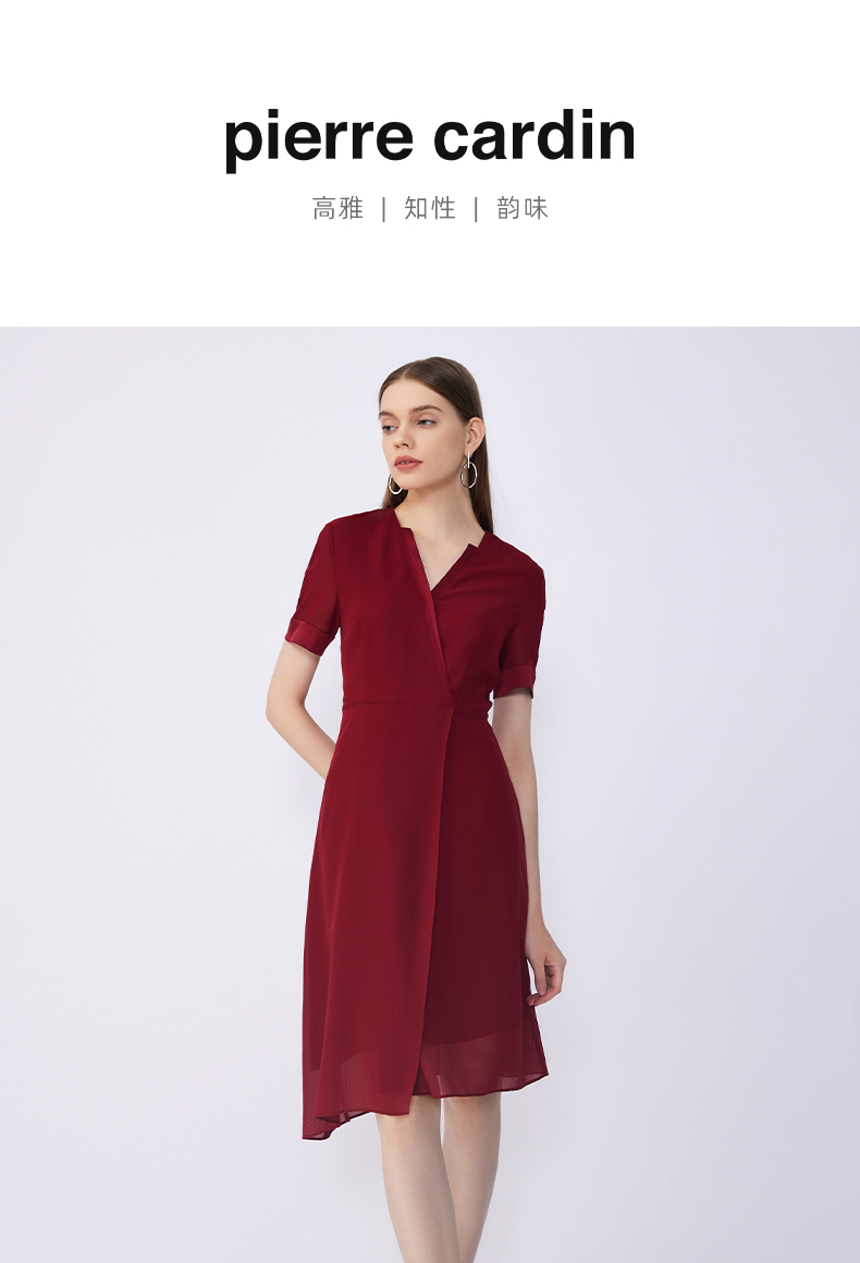 皮尔卡丹女装夏季新款通勤修身不对称多色连衣裙C32DS016