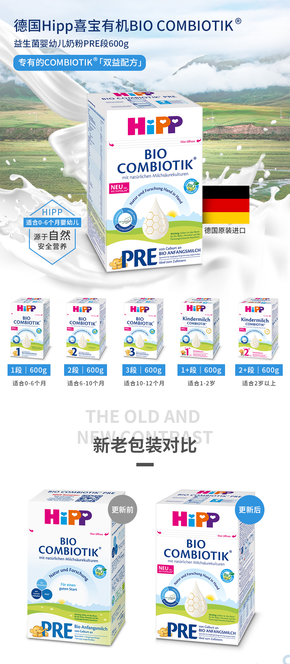3盒【保税】德国 喜宝(HiPP)益生菌奶粉 Pre段600g(新版)