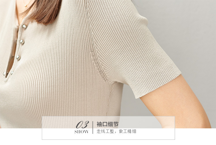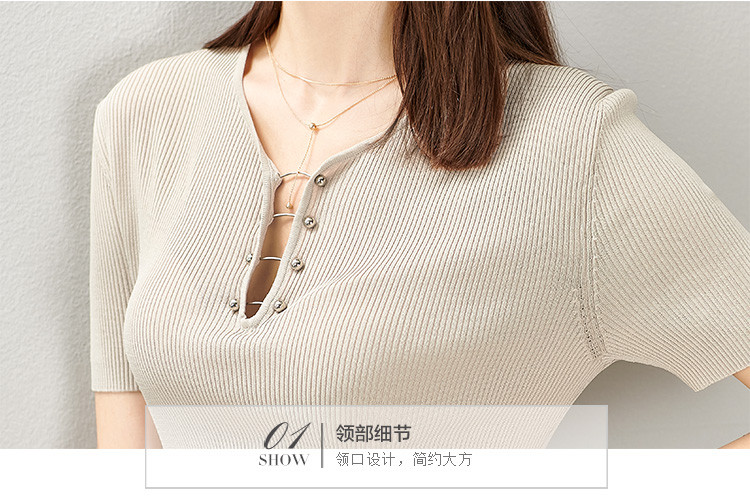 剩S 芳外芳外含金属领扣夏季针织衫深V领小诱惑女式针织衫