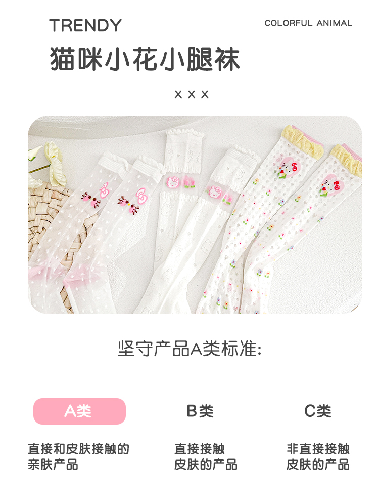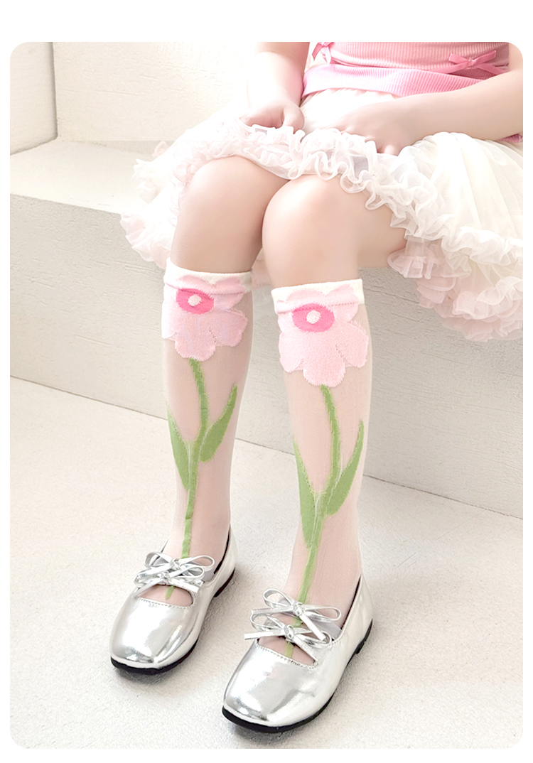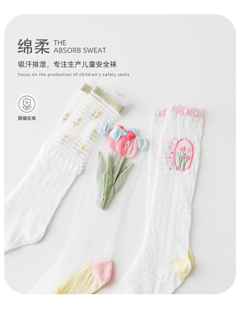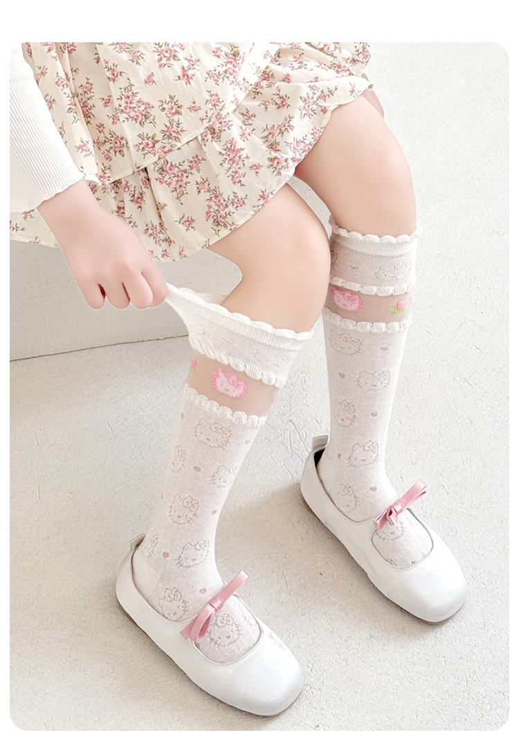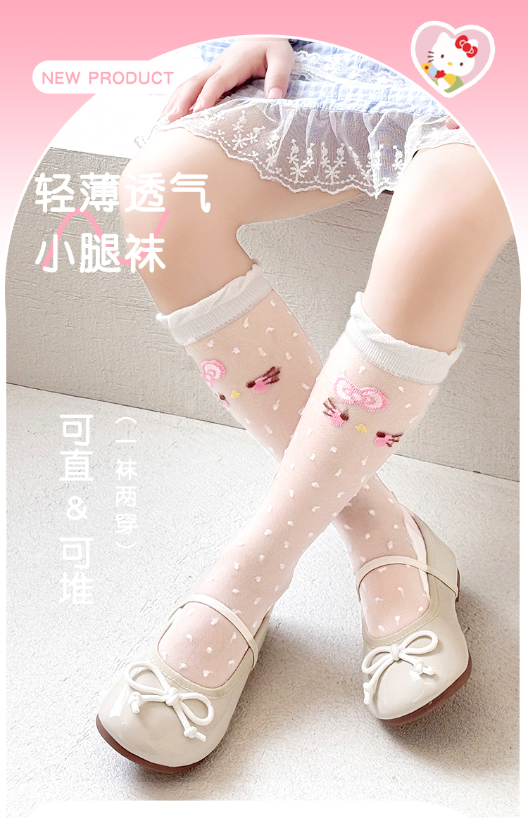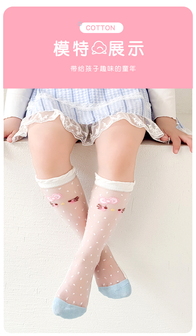 pureshare蓬纱馆 女童袜子透气网面夏季长筒袜儿童袜子可爱小腿袜