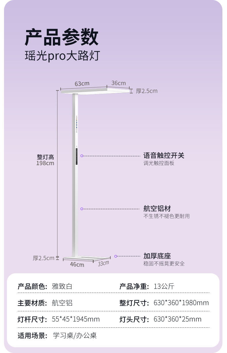 【渠道专属】大满贯瑶光pro 紫光全光谱落地护眼大路灯 智能语音控制 首尔芯片