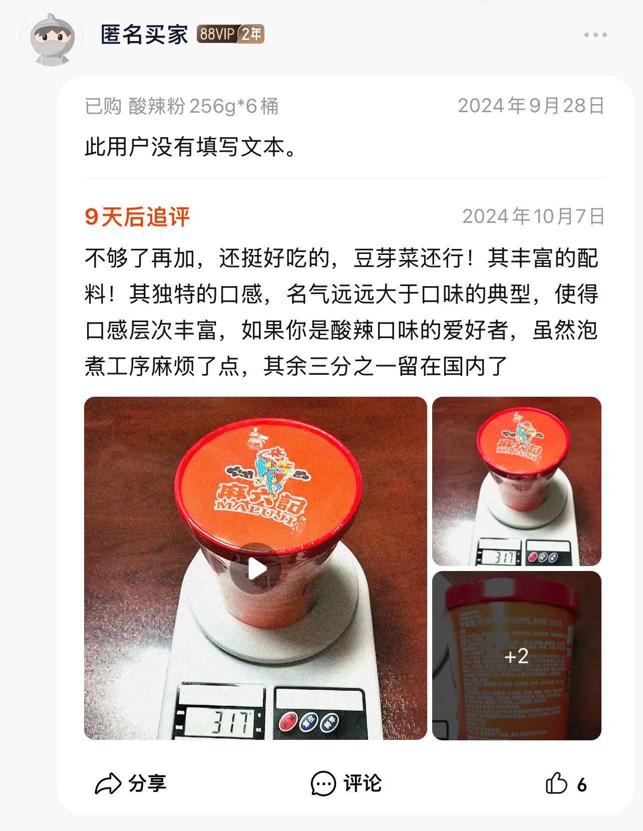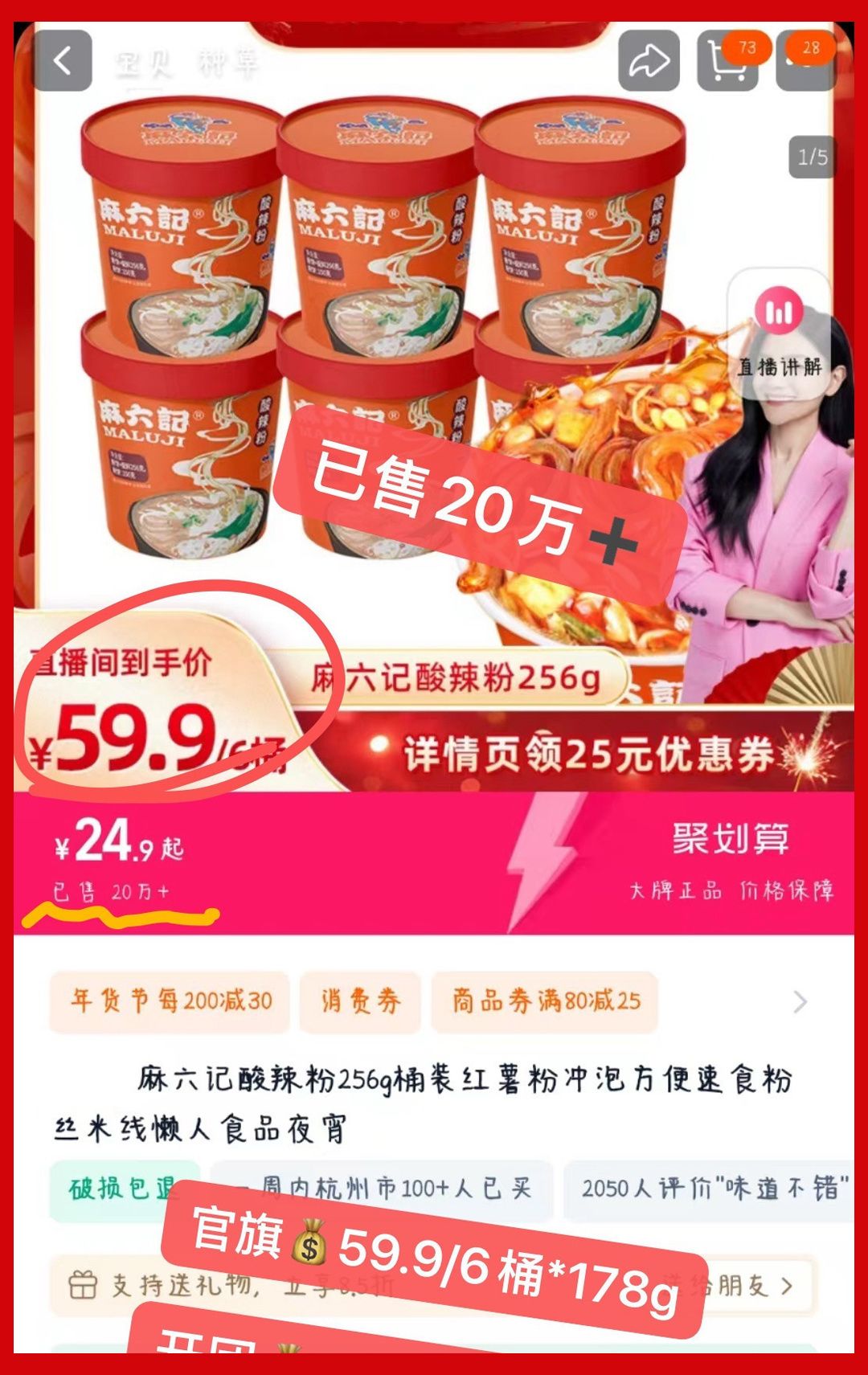 【多妈团购 麻六记酸辣粉6桶装(无豆芽)】每一口都是灵魂!酸酸辣辣贼过瘾!酸辣暴击,超级过瘾!酸辣暴击,味蕾炸裂!红薯,木薯,蕨根淀粉,三粉合一,一口入魂,酸爽-大鱼大物