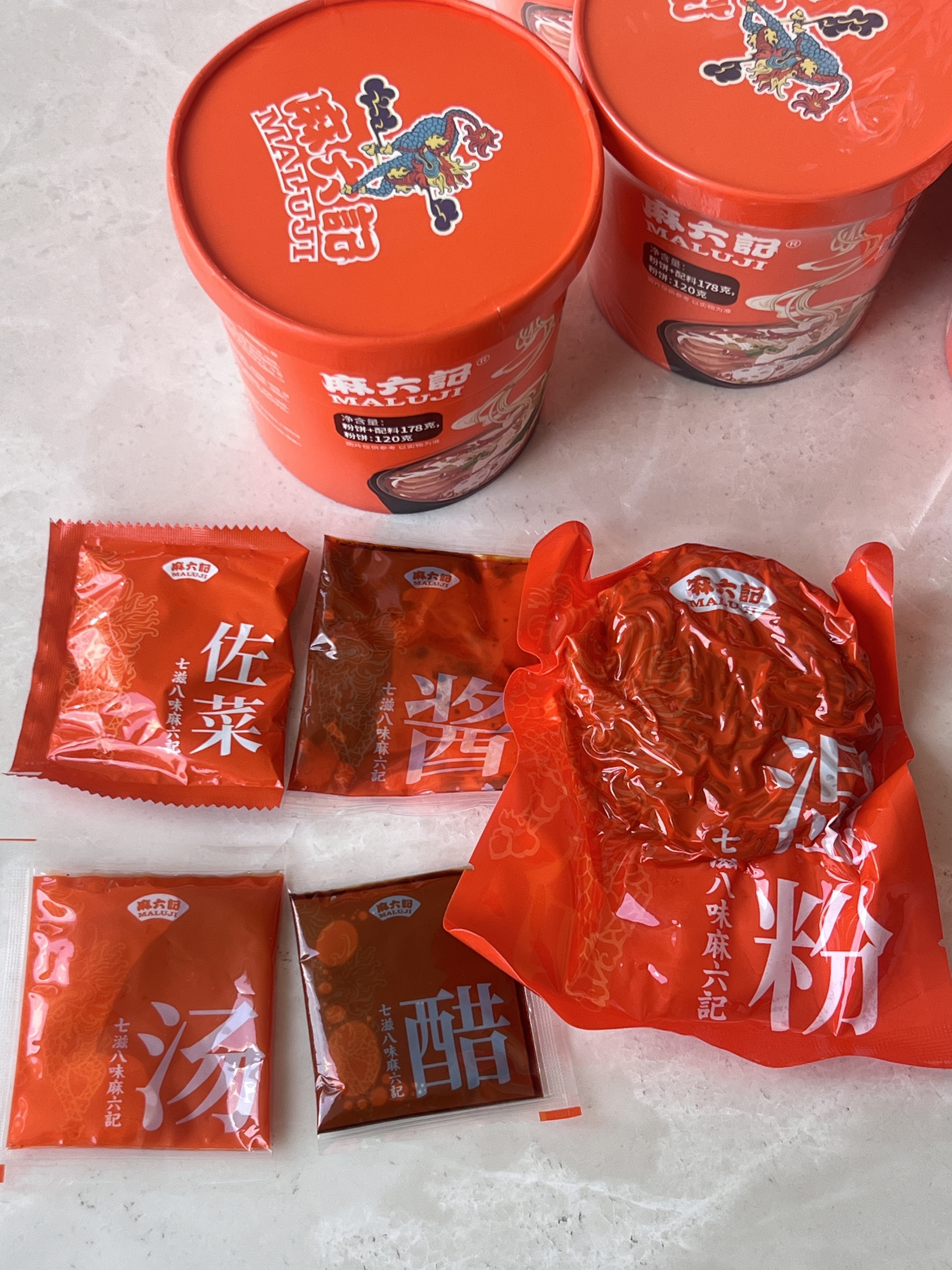 (里面有四包料包,一包湿粉酱包,骨汤包,