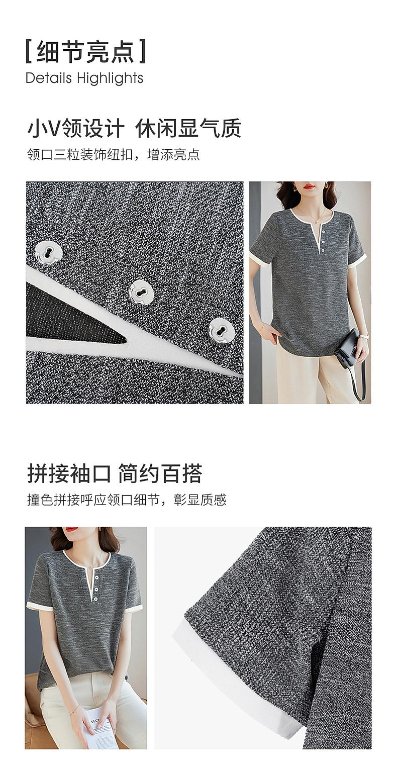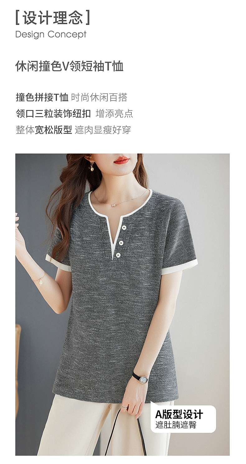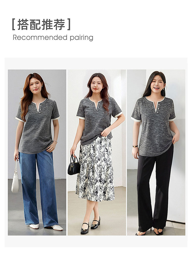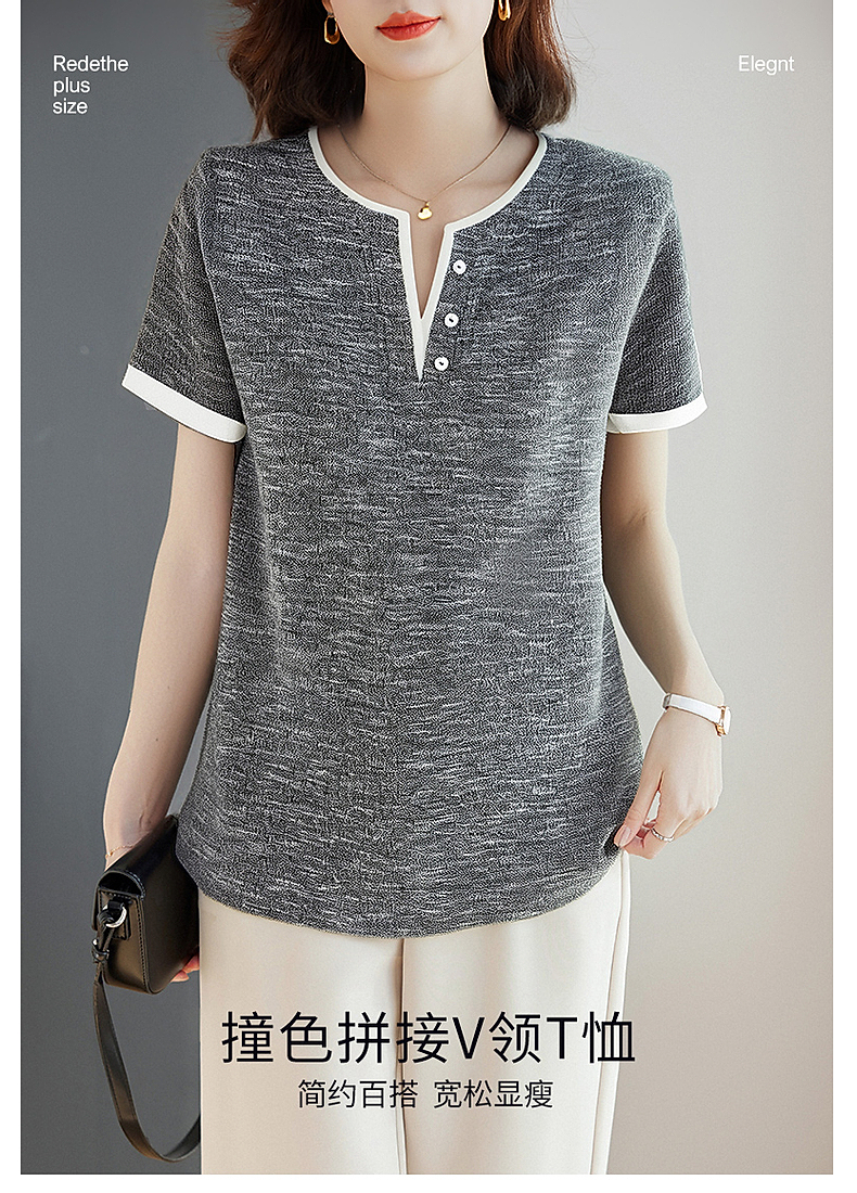 v领短袖女t恤2026新款夏季高端洋气大码女装胖mm宽松女士半袖上衣
