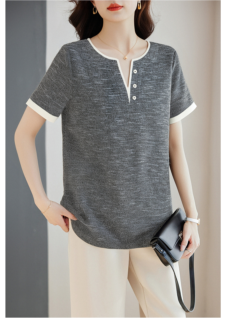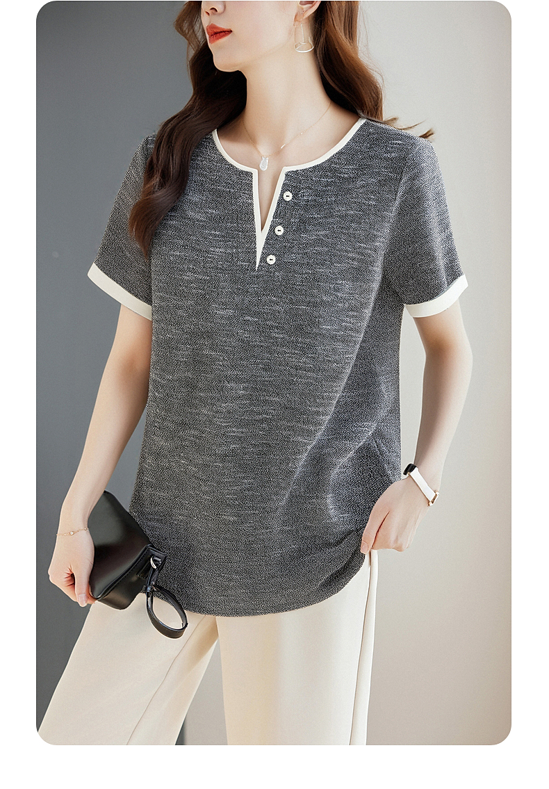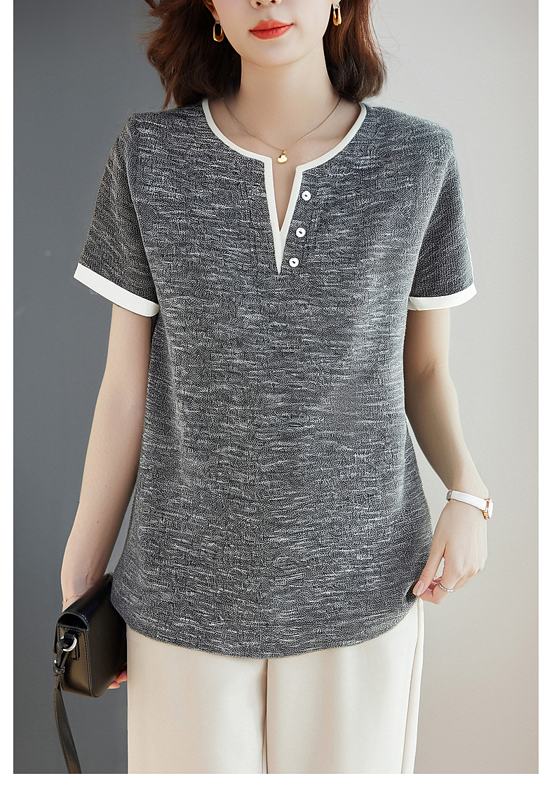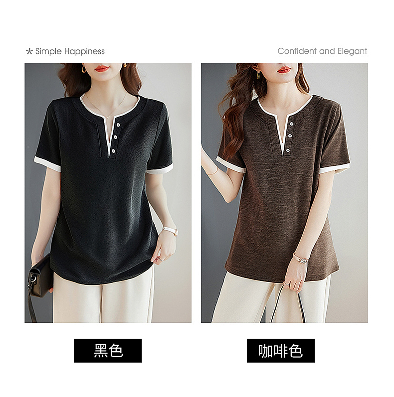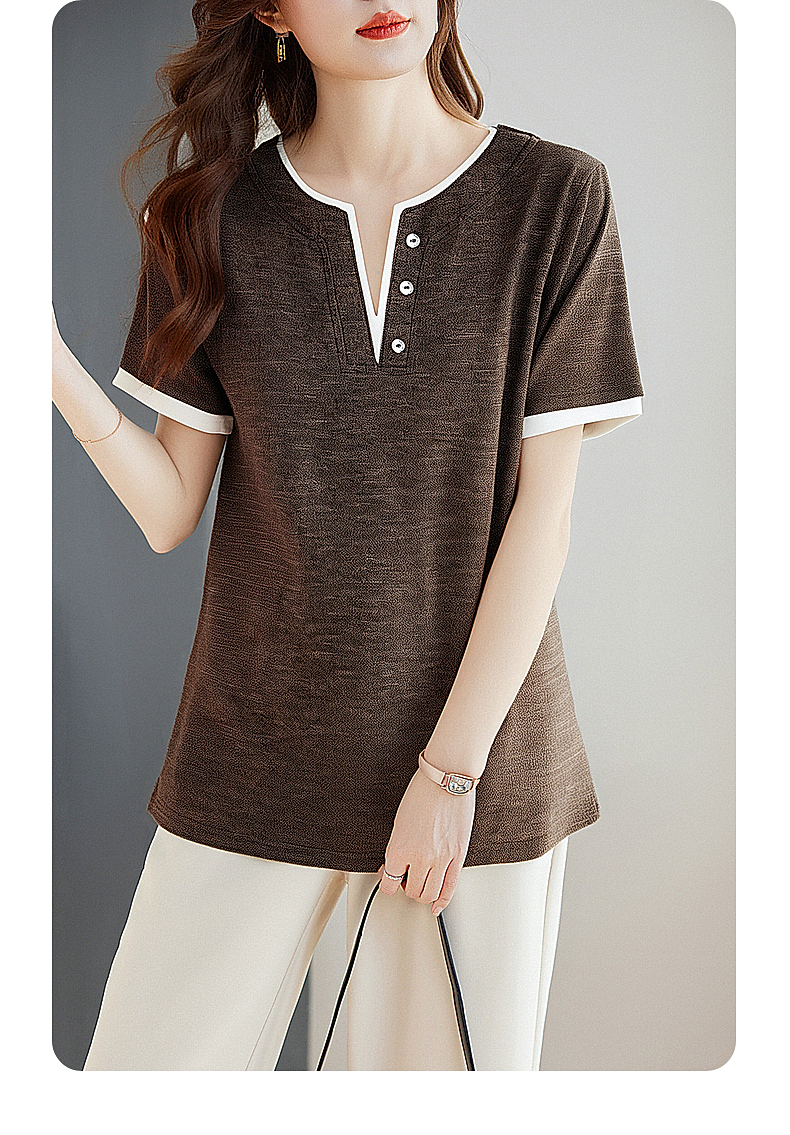 v领短袖女t恤2026新款夏季高端洋气大码女装胖mm宽松女士半袖上衣