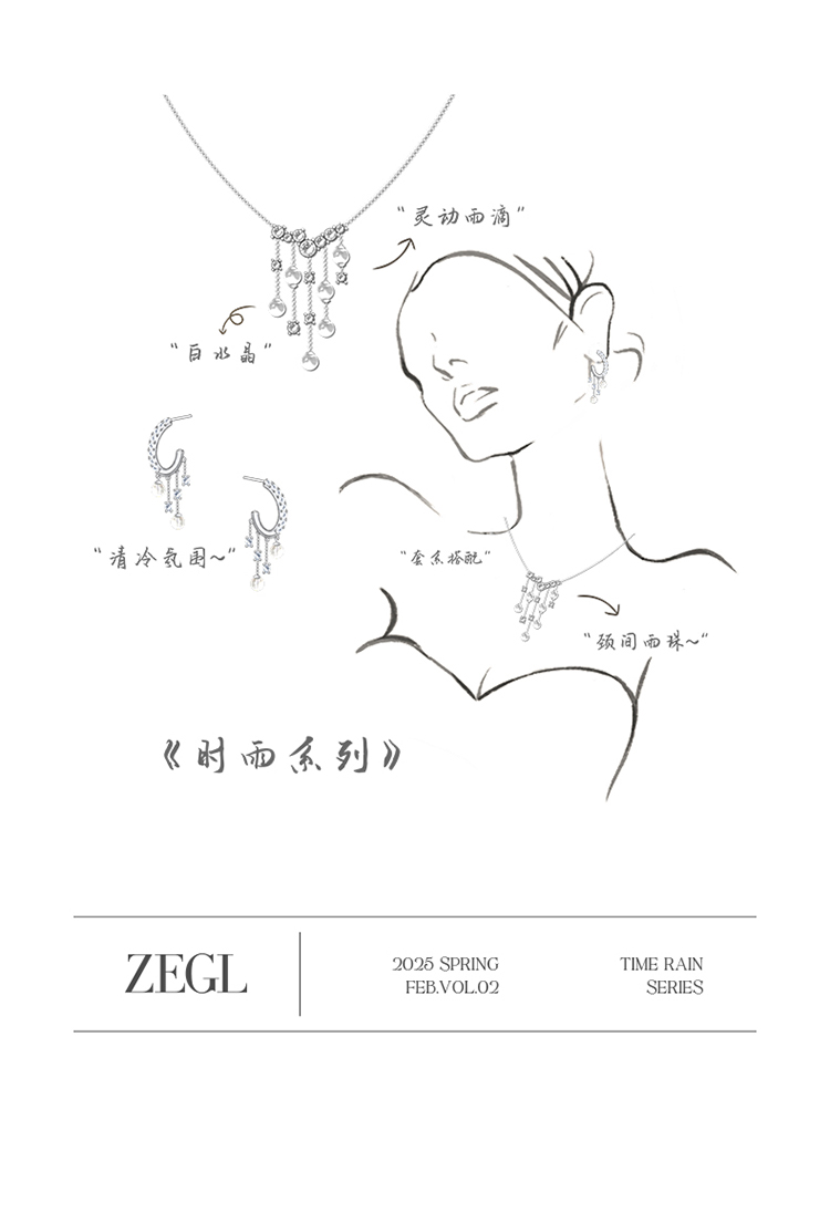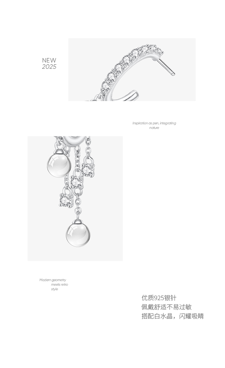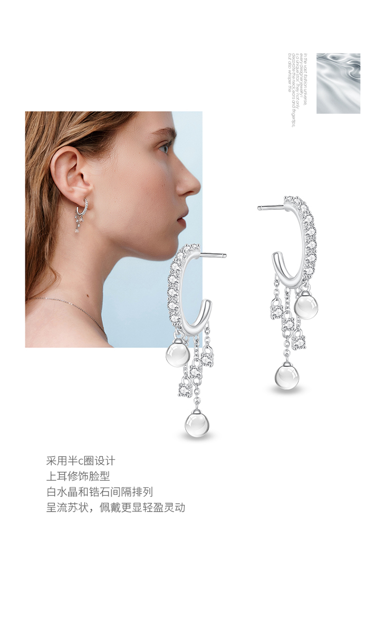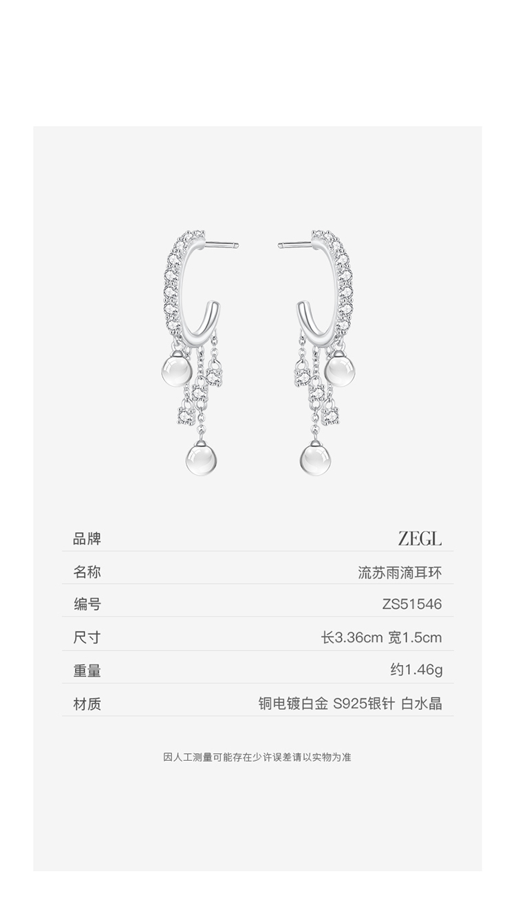 ZEGL真柳设计师时雨系列流苏水滴耳环女高级圈圈耳钉天然水晶耳饰