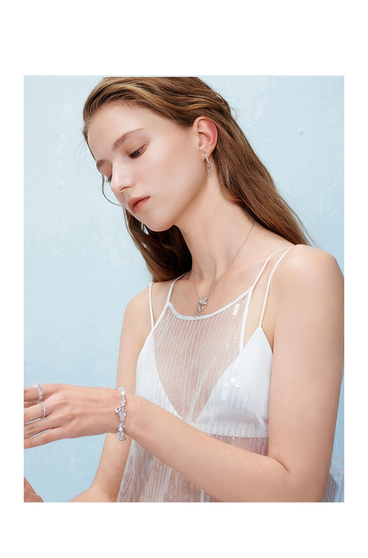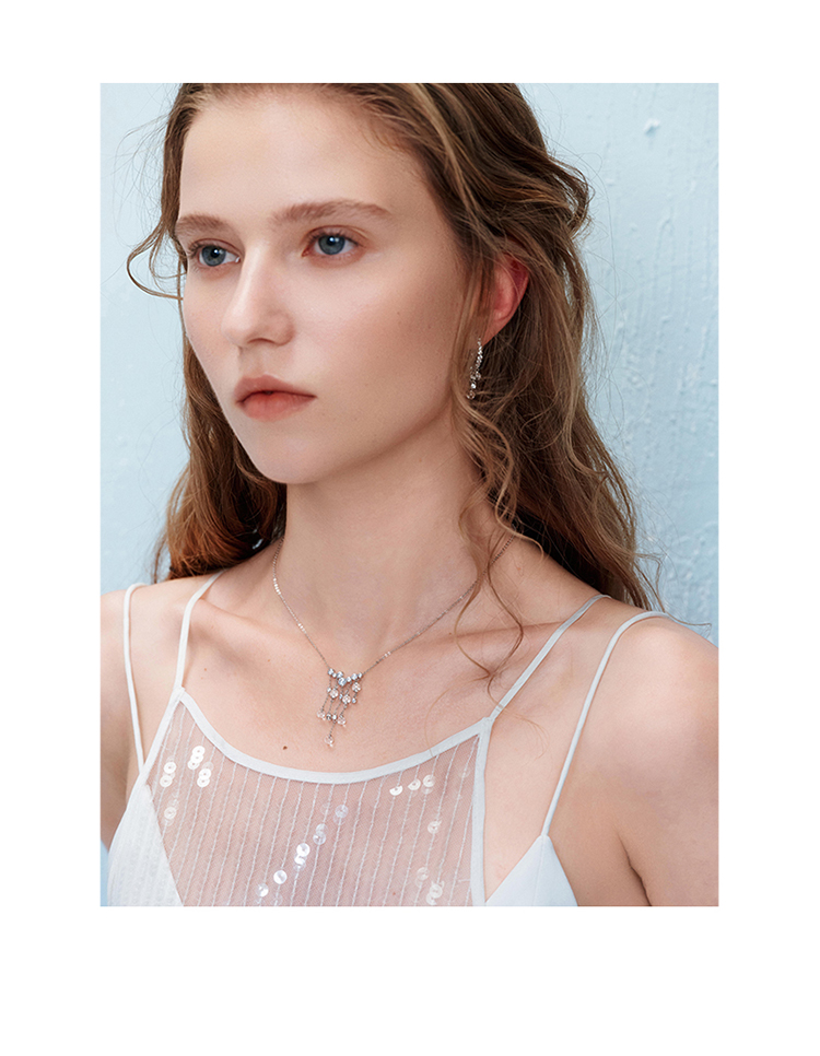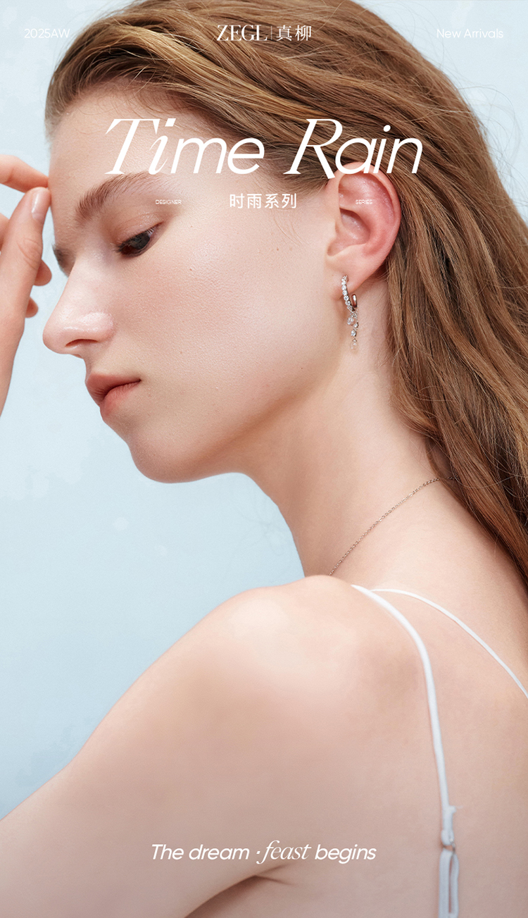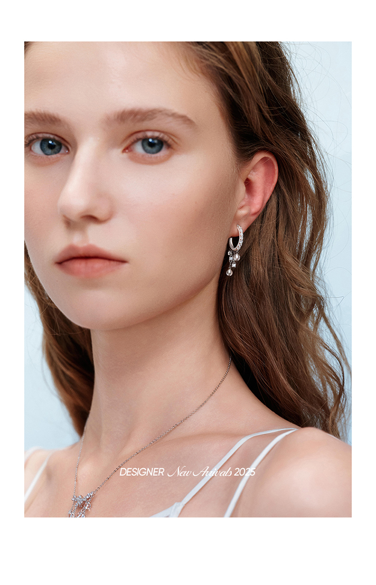 ZEGL真柳设计师时雨系列流苏水滴耳环女高级圈圈耳钉天然水晶耳饰