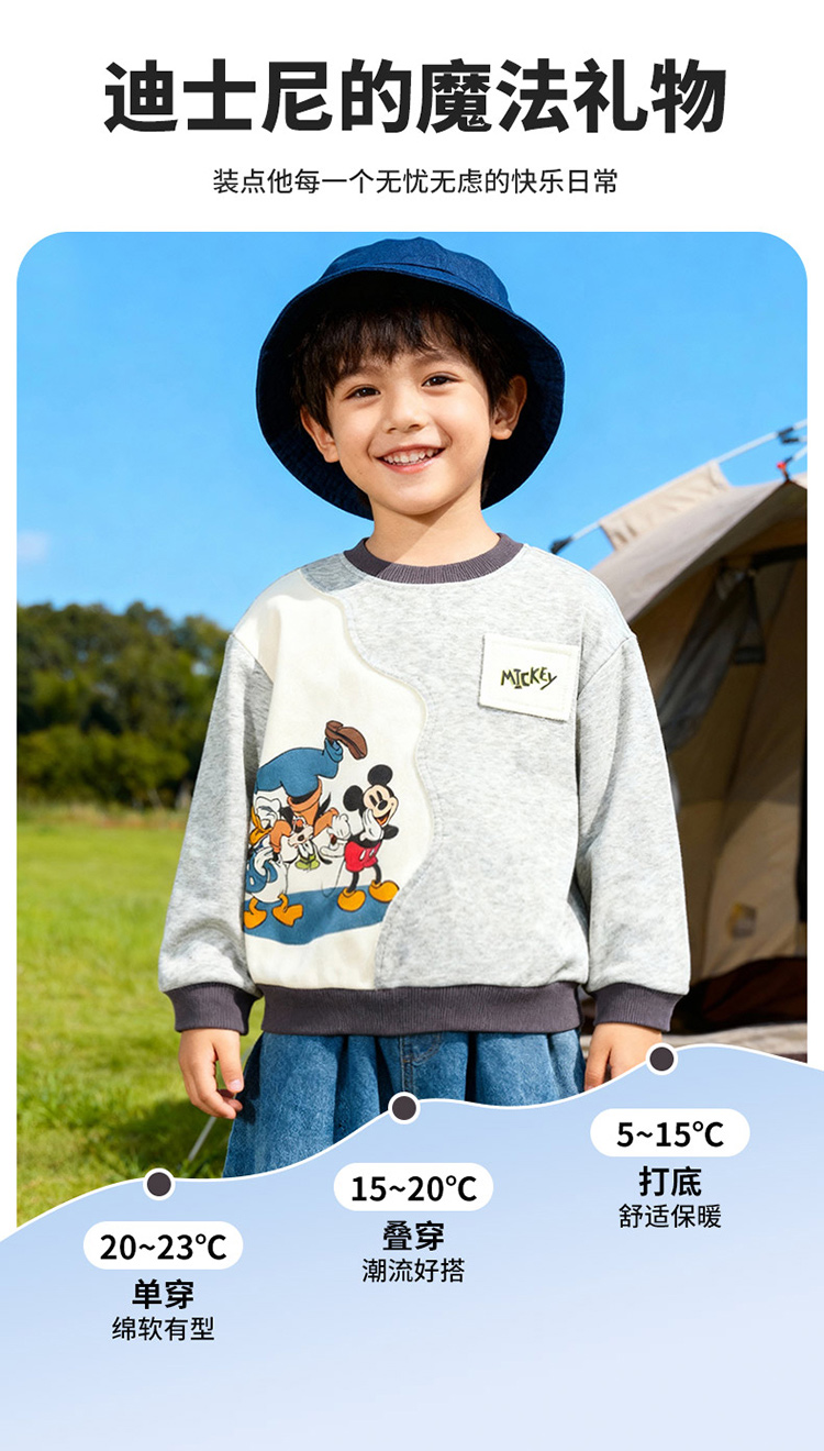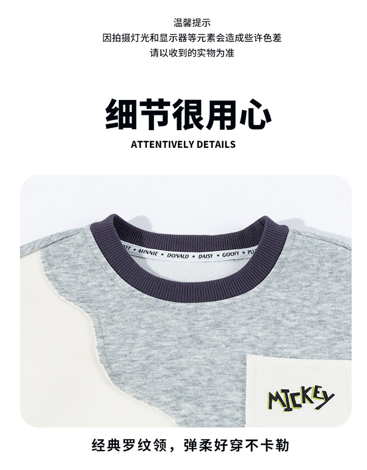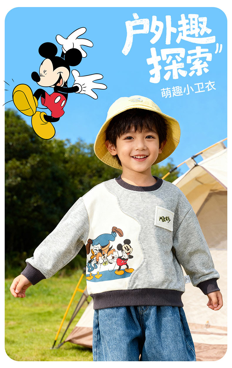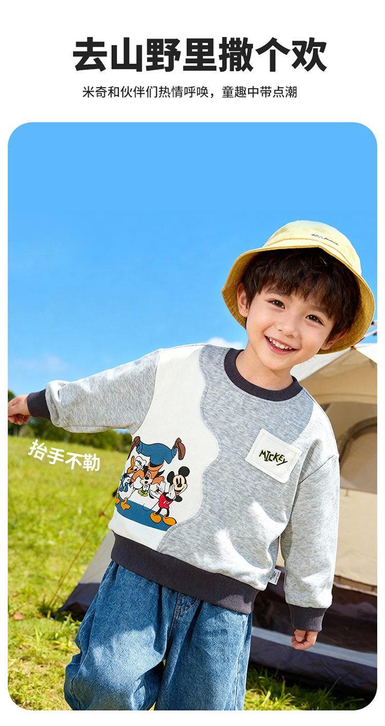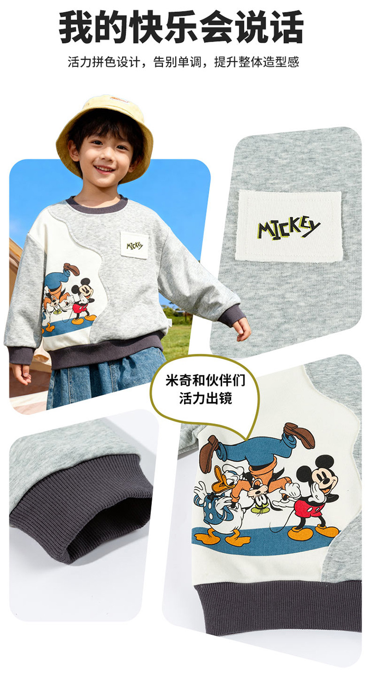 迪士尼(Disney)男童套头卫衣帅气休闲拼色可爱米奇亲肤2026春季新款上衣童装ZD1FS035