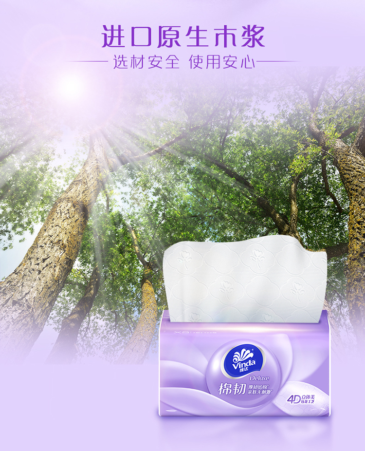 维达 棉韧抽取面巾3层XS码100抽×10包提 V2866