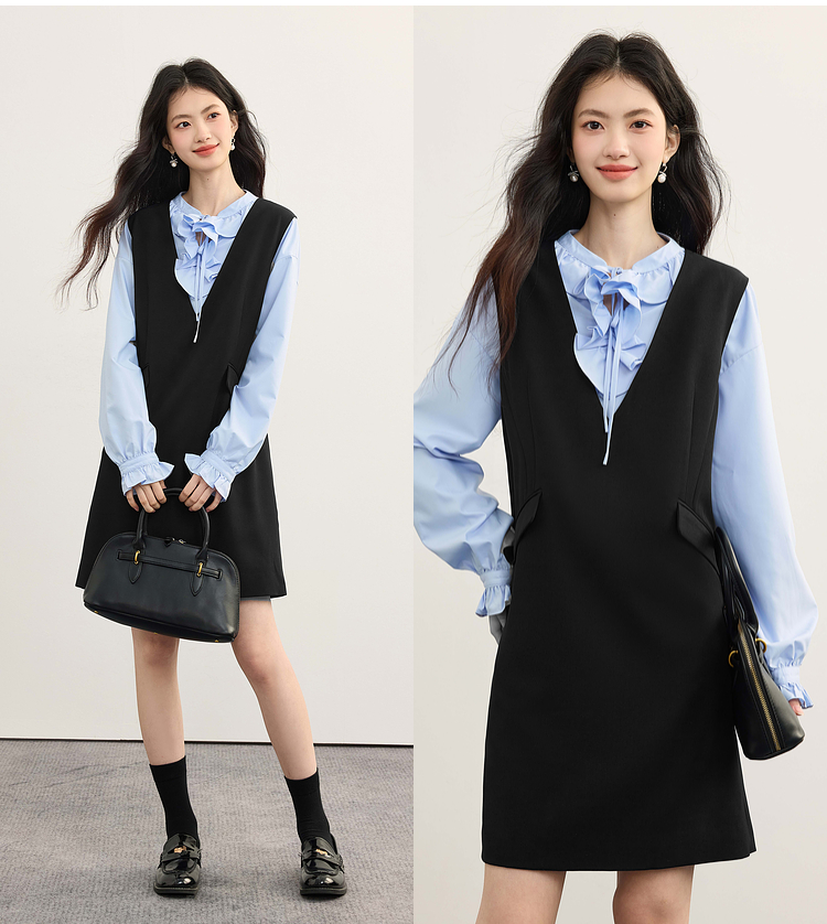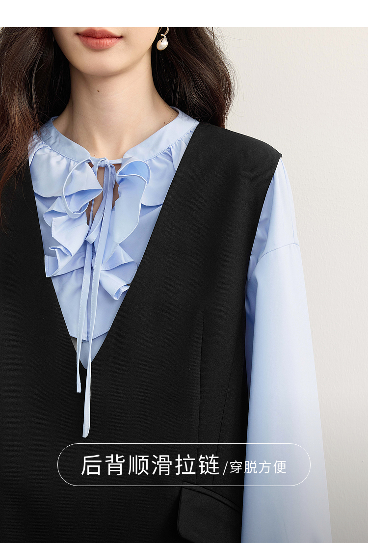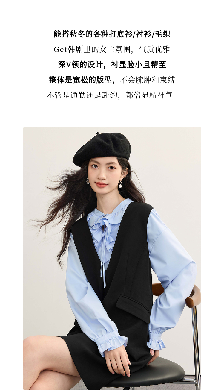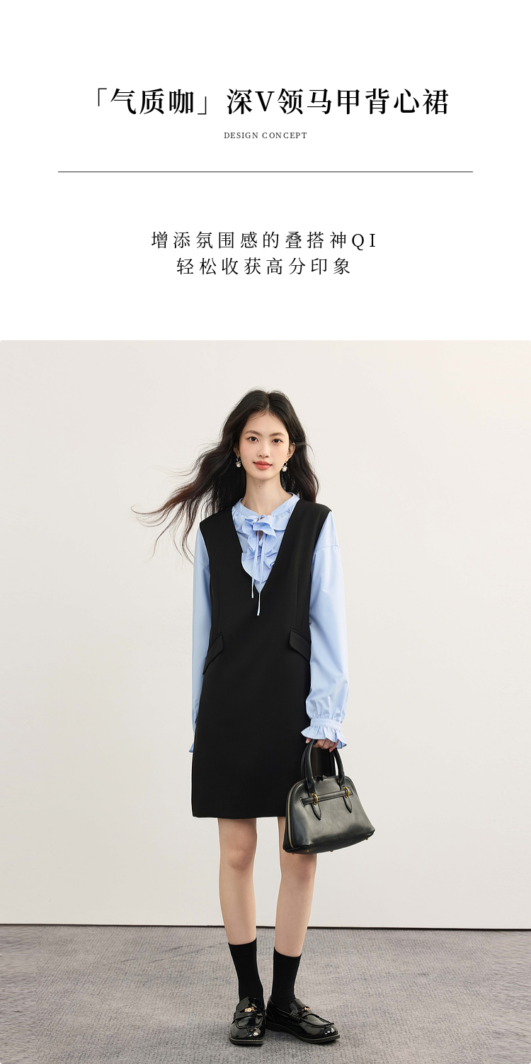 【08/19新品】熙世界气质减龄深V领背心裙女高级感无袖马甲连衣裙2025秋季新款