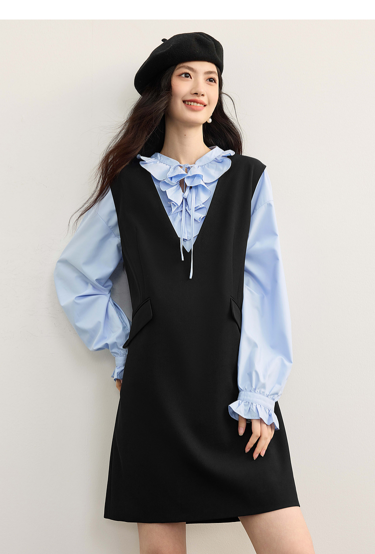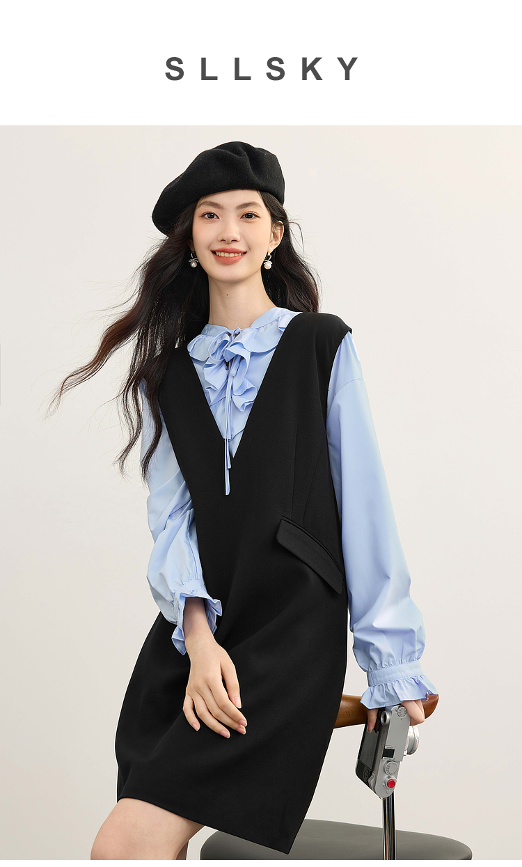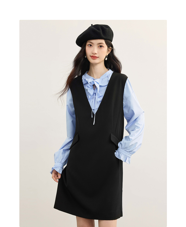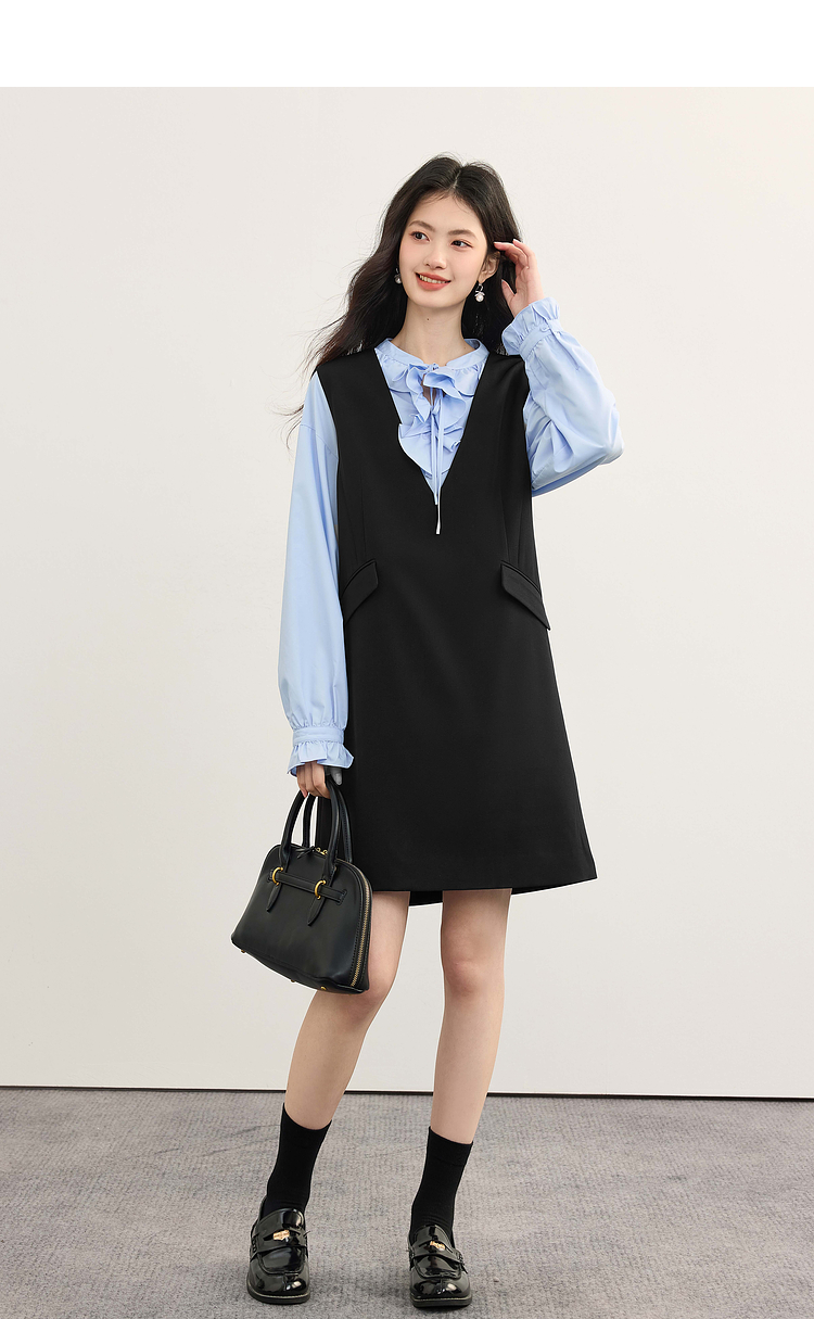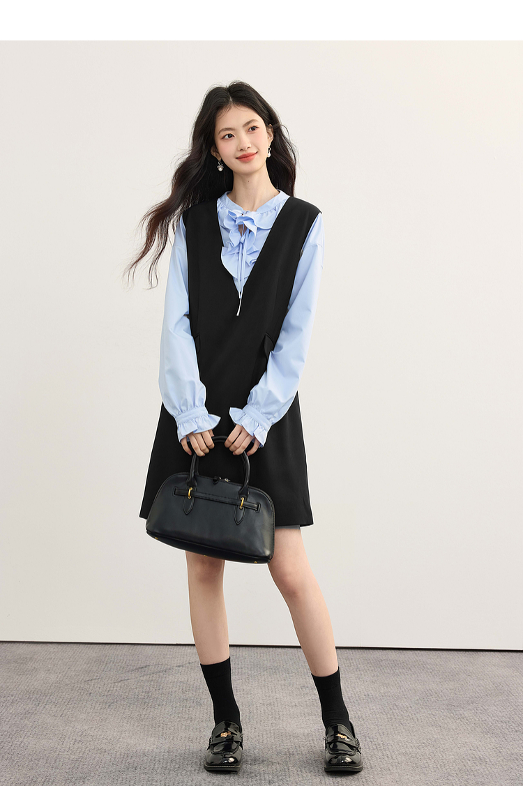 【08/19新品】熙世界气质减龄深V领背心裙女高级感无袖马甲连衣裙2025秋季新款