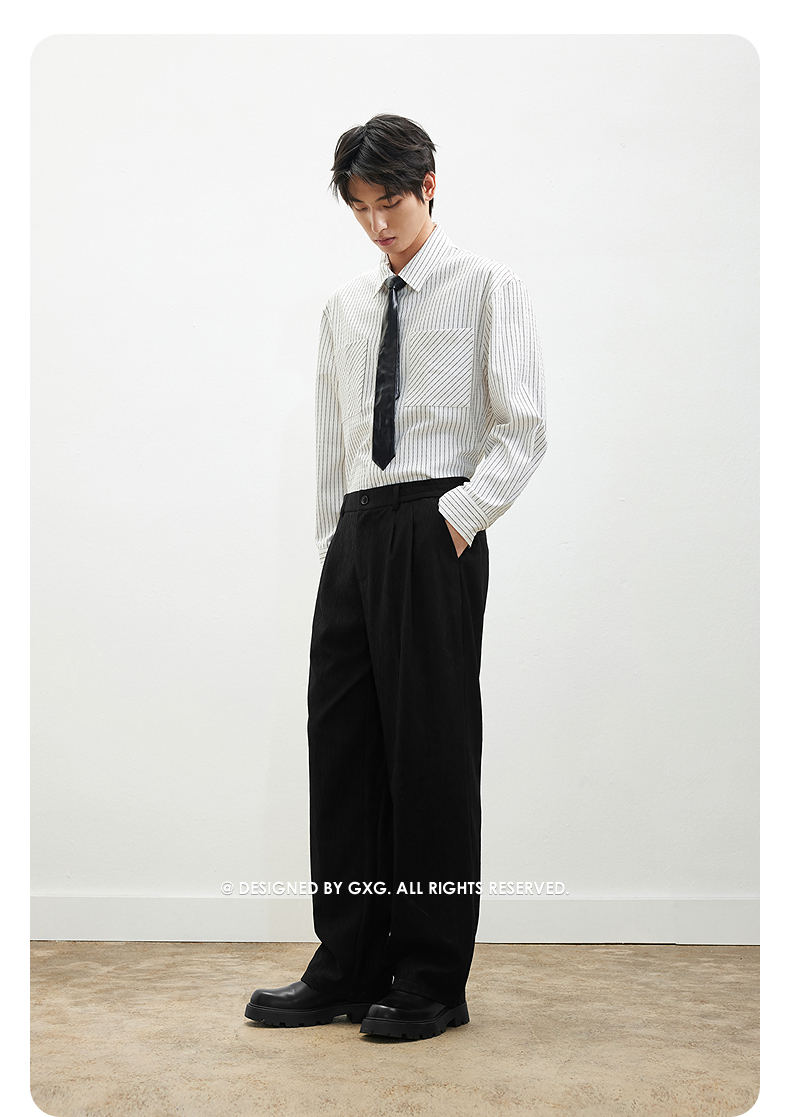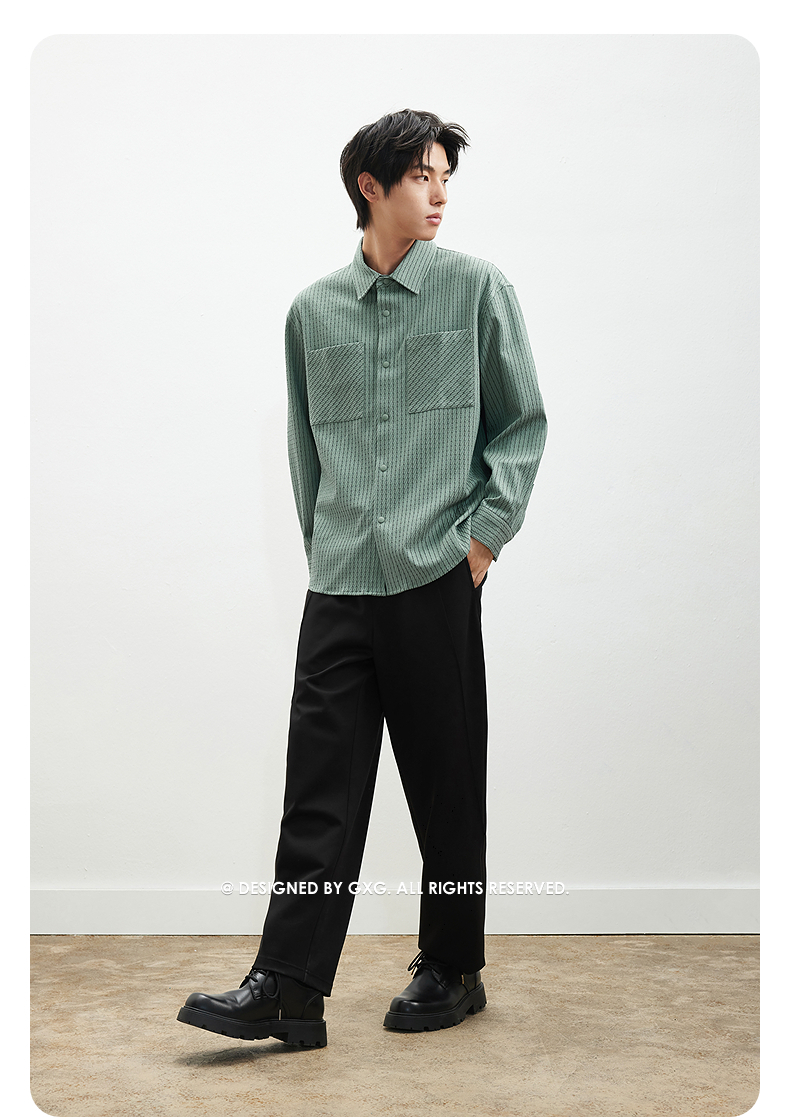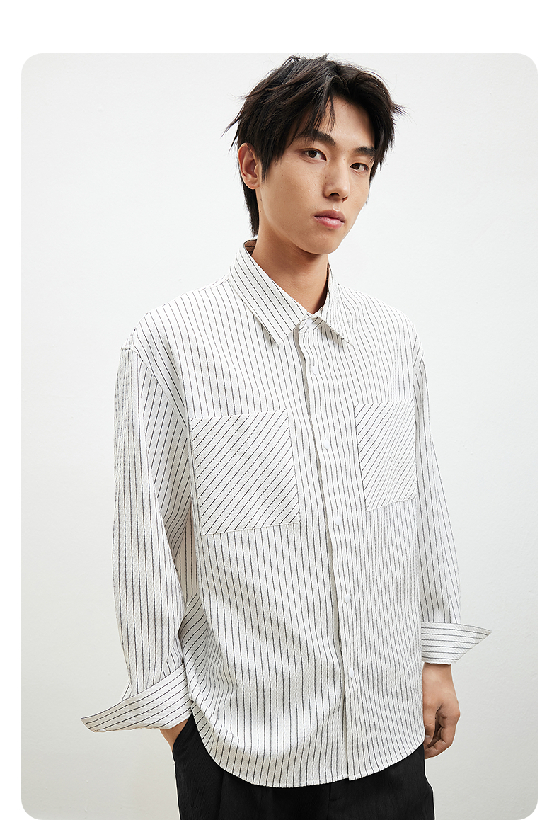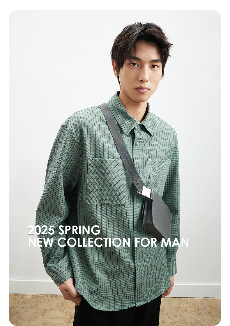 GXG男装25年春季斜纹提花竖条衬衫高级长袖衬衫外套#G25D031013