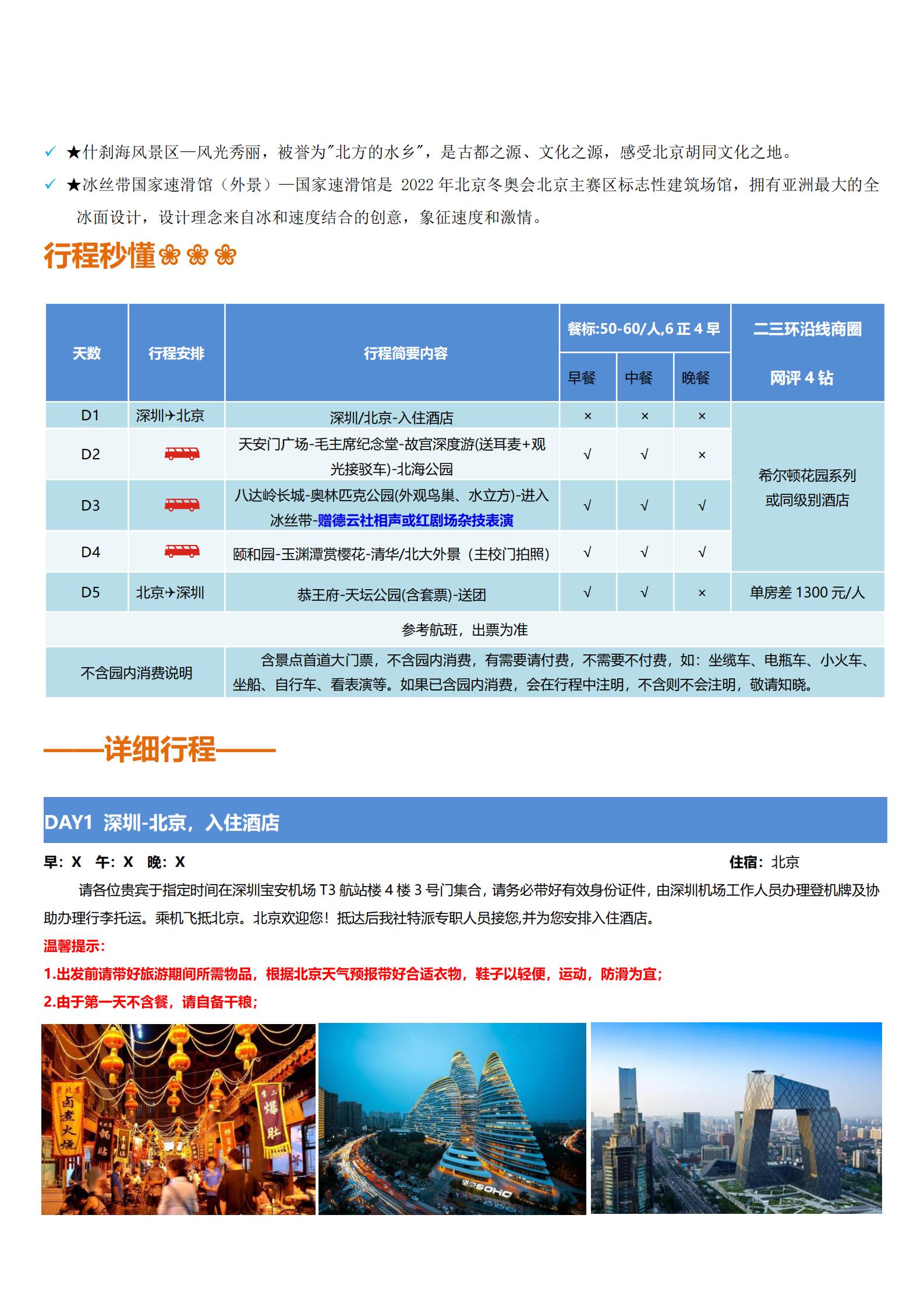 【清明】<北京5天双飞18人纯玩团>天安门广场丨毛主席纪念堂丨故宫博物院丨北海公园丨八达岭长城丨奥运公园丨外观鸟巢水立方丨相声或杂技表演丨恭王府丨颐和园丨玉渊潭赏樱花丨天坛公园丨进入冰丝带