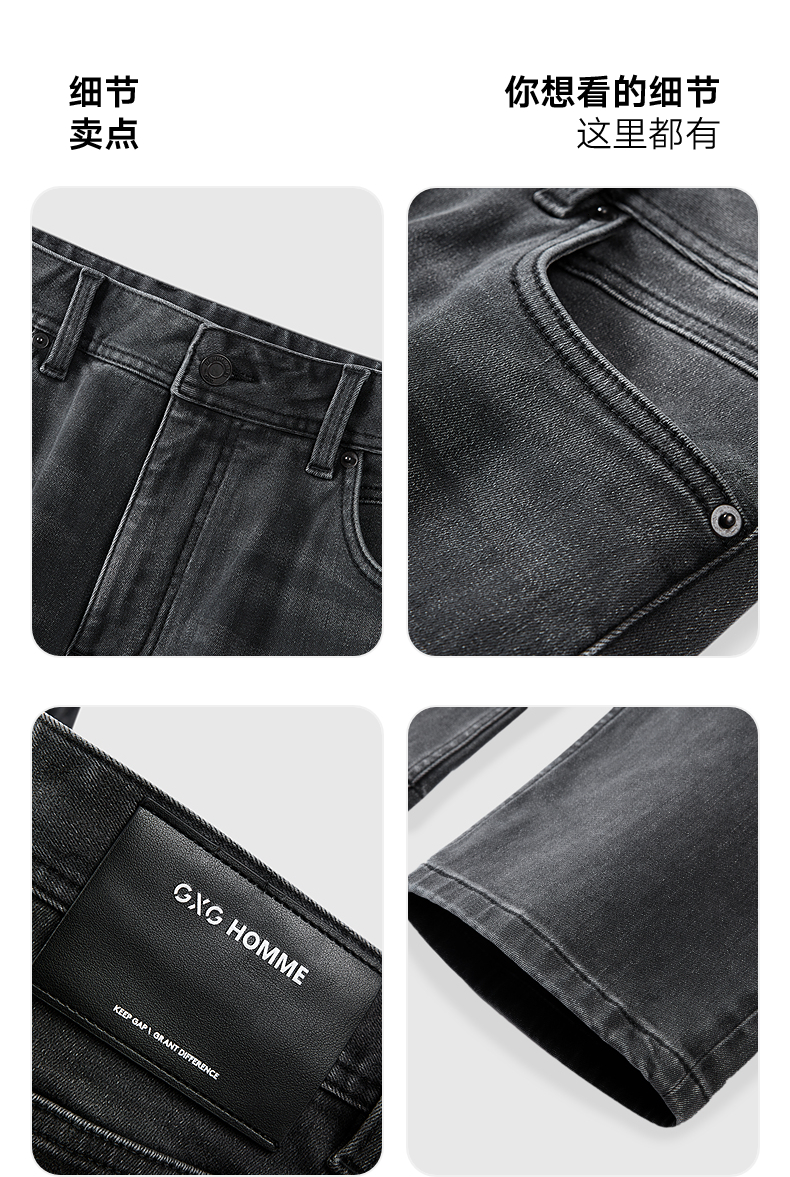 GXG男装 黑灰色直筒牛仔裤通勤男长裤 热卖牛仔裤G24X054058