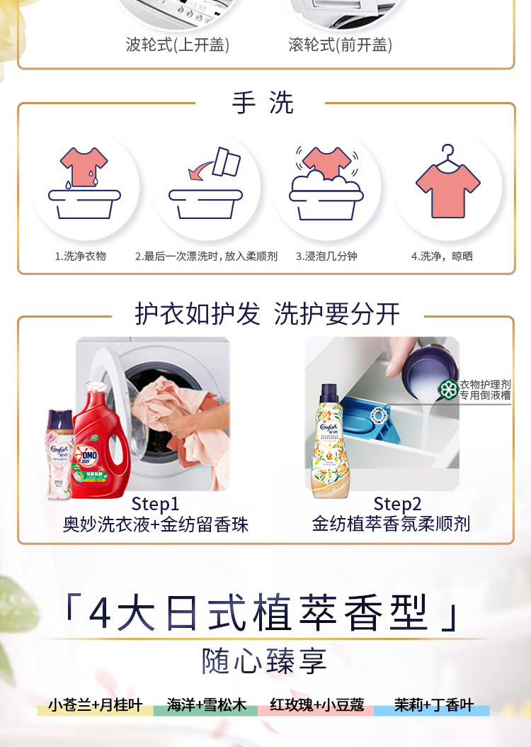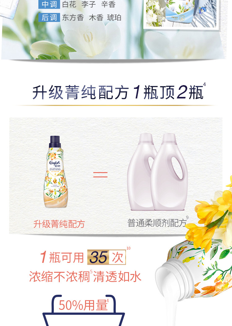 金纺植萃香氛热巴同款衣物护理剂 小苍兰+月桂叶香型700ml(浓缩用量省半 漂洗时中和洗衣液残留 柔顺留香)