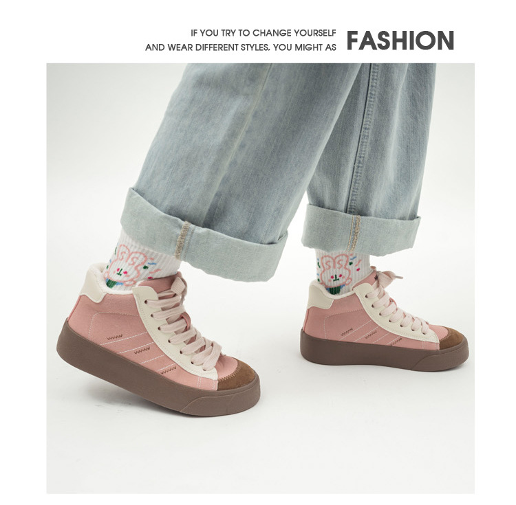 「三款配色!加绒高帮」保暖二棉鞋女学生2023新款学院风休闲复古板鞋潮 商品图0
