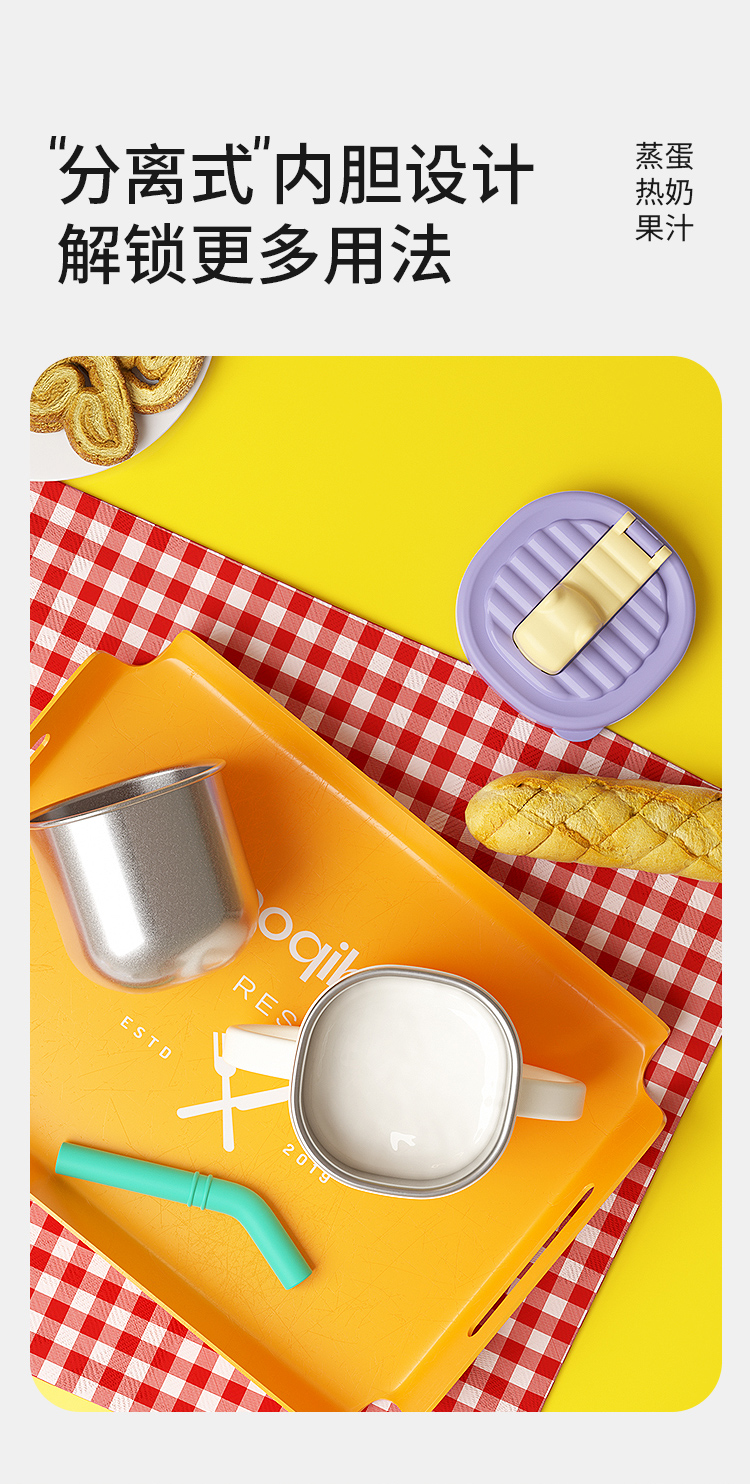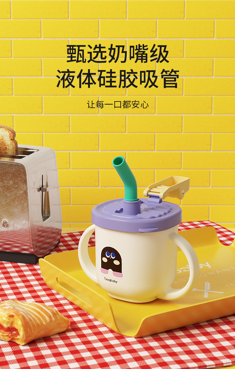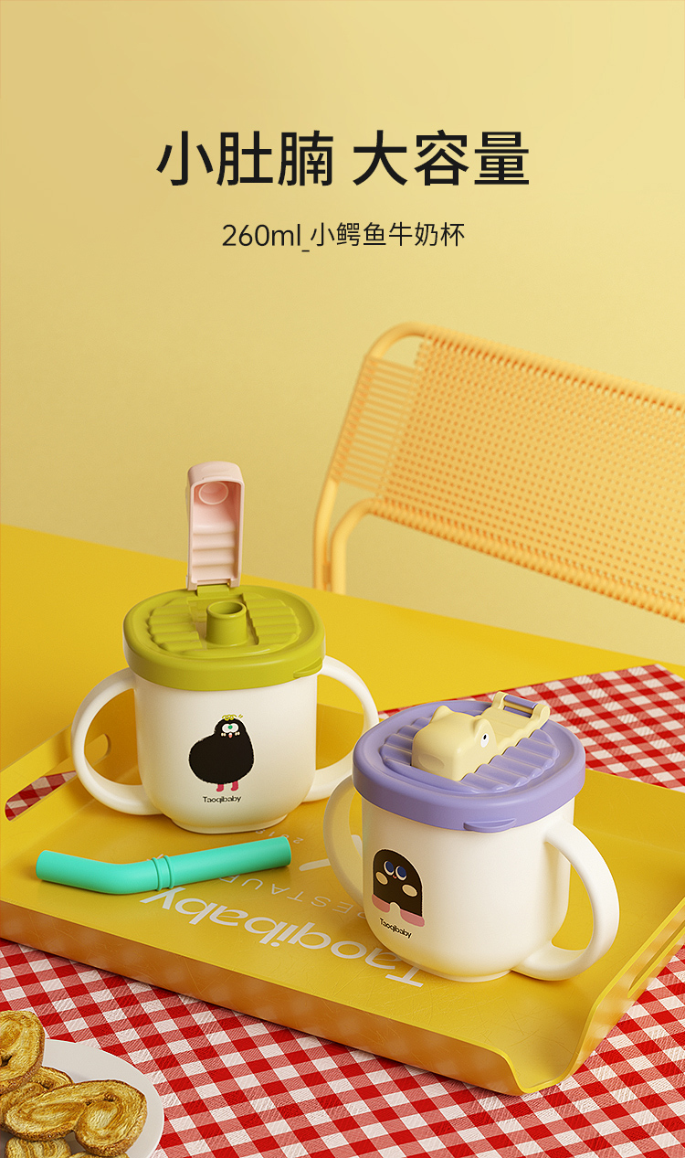 Taoqibaby淘气宝贝牛奶杯带刻度可加热宝宝专用杯水杯防摔吸管杯 316不锈钢