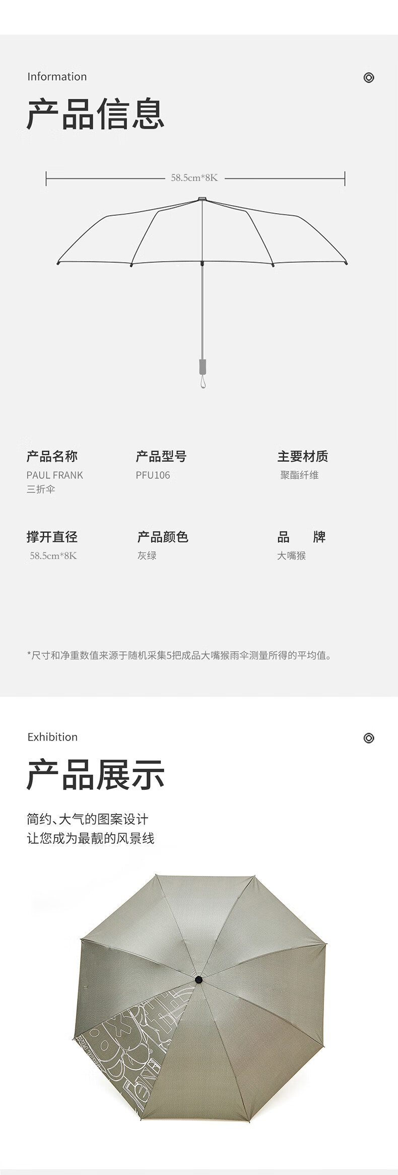 【分仓直发包邮】Paul Frank 三折伞晴雨两用PFU106