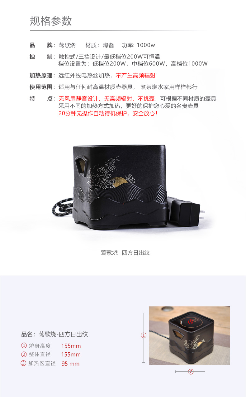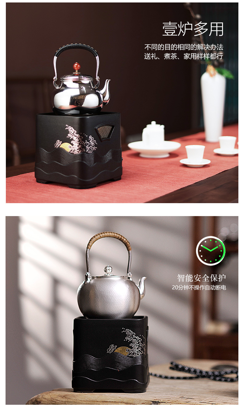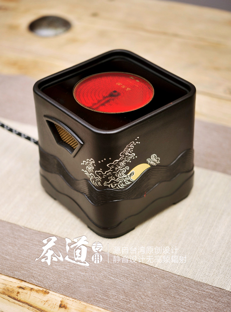 莺歌烧电陶炉 家用煮茶茶炉 小型铁壶银壶泡茶煮茶器 四方日出纹
