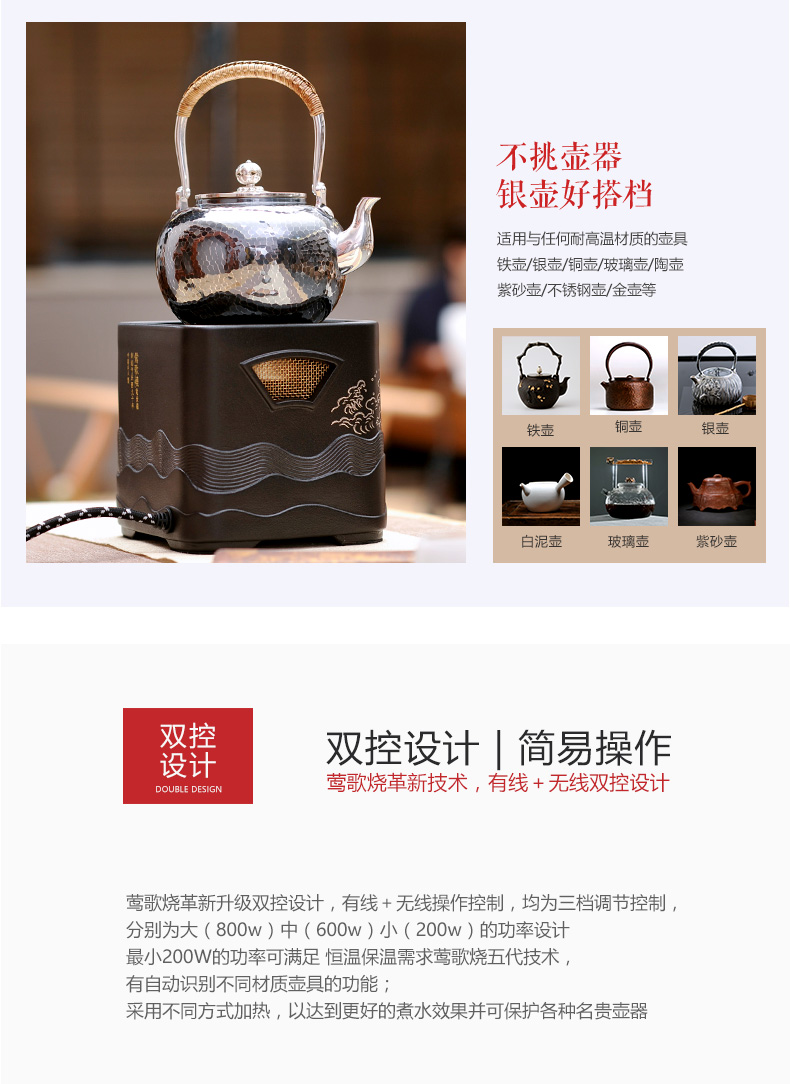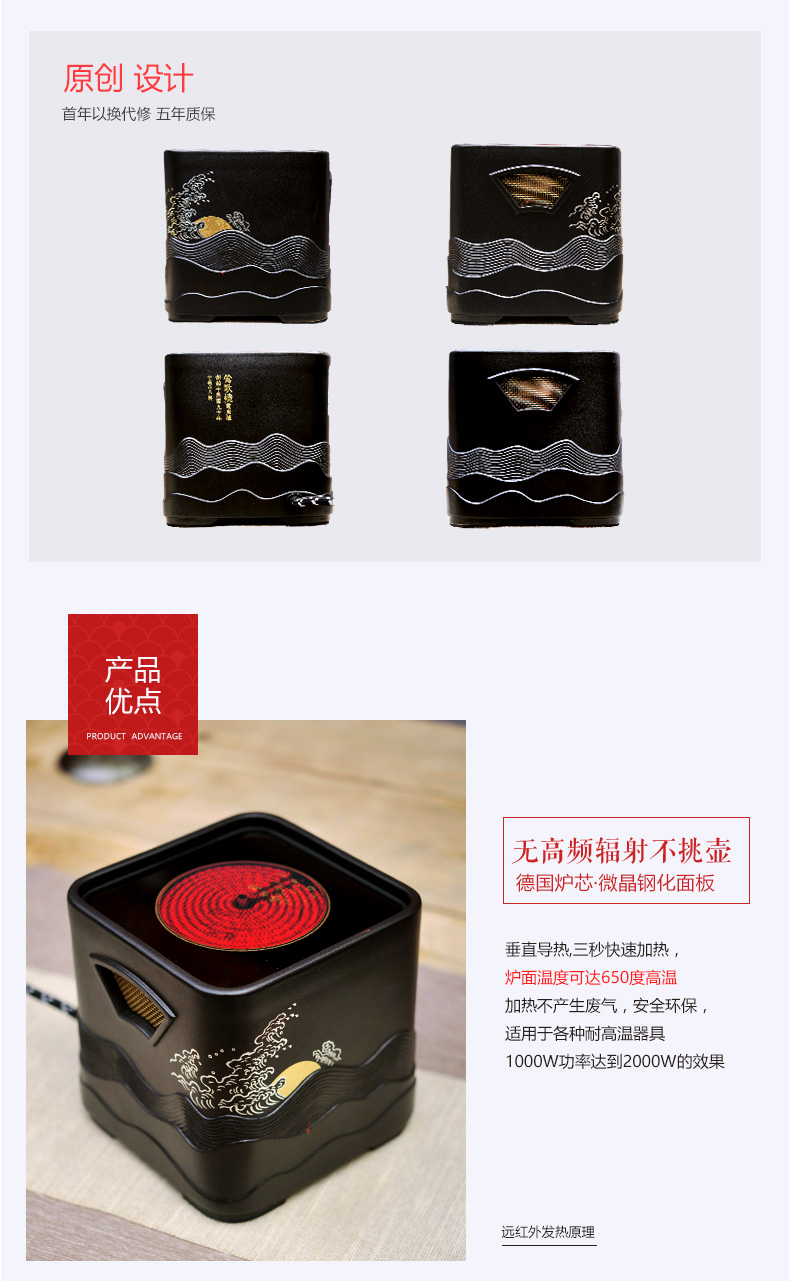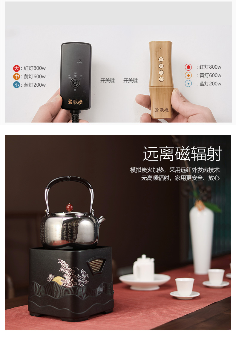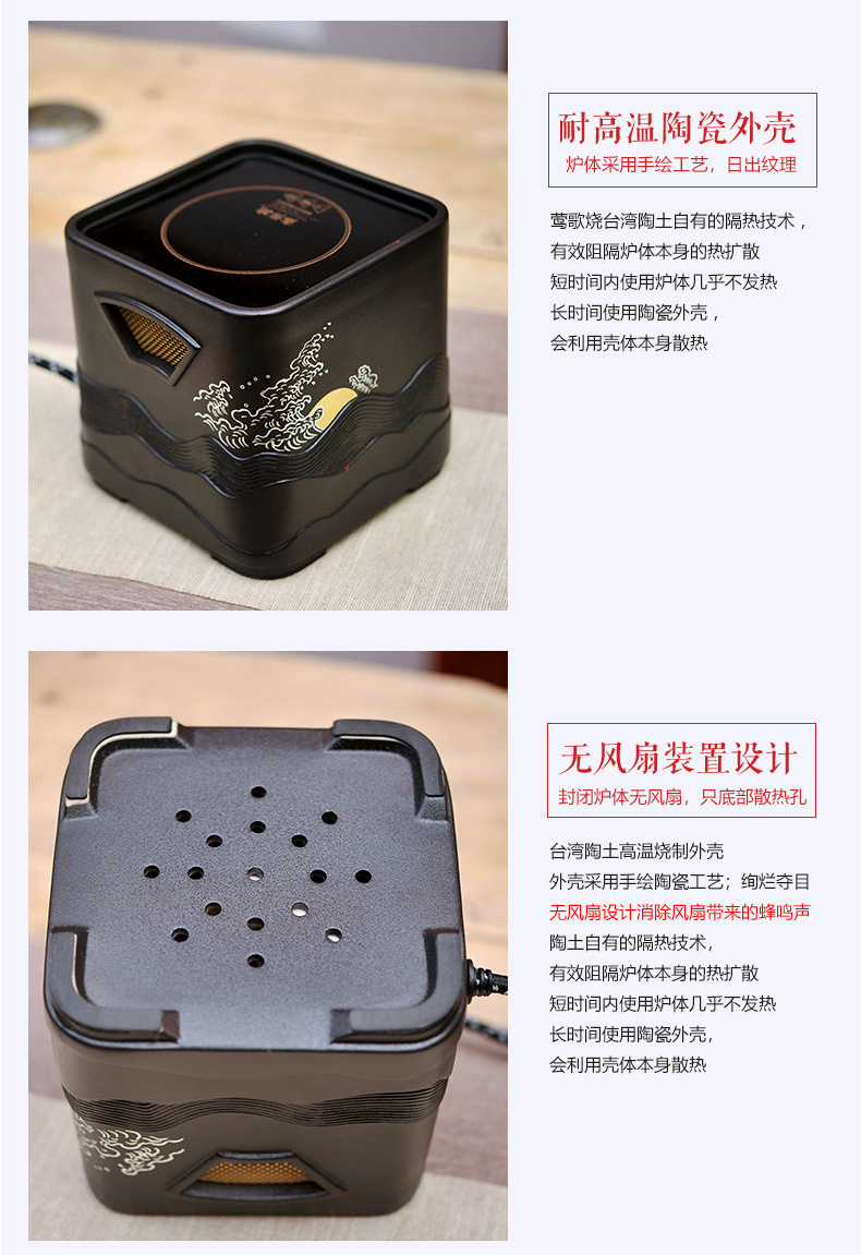 莺歌烧电陶炉 家用煮茶茶炉 小型铁壶银壶泡茶煮茶器 四方日出纹