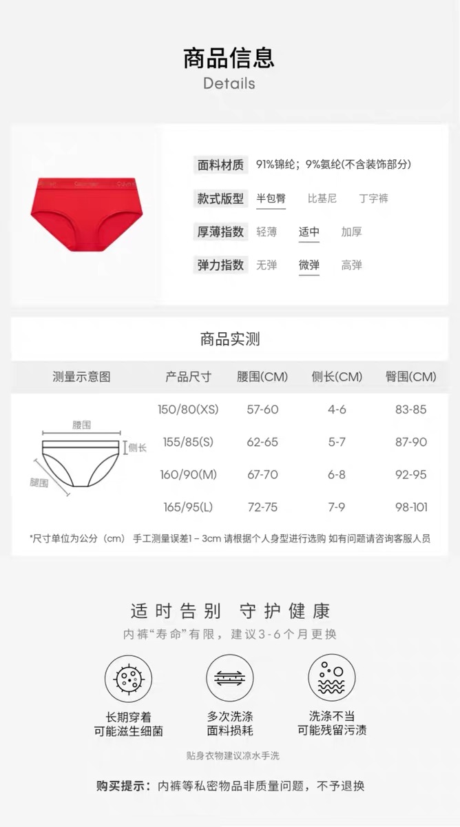 CK内衣女本命年新年红字母防夹臀半包臀内裤QF8619ADXAT