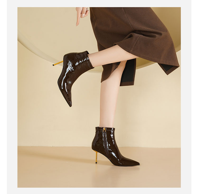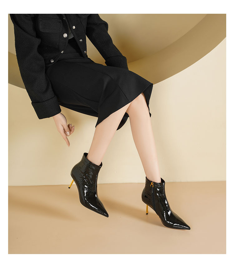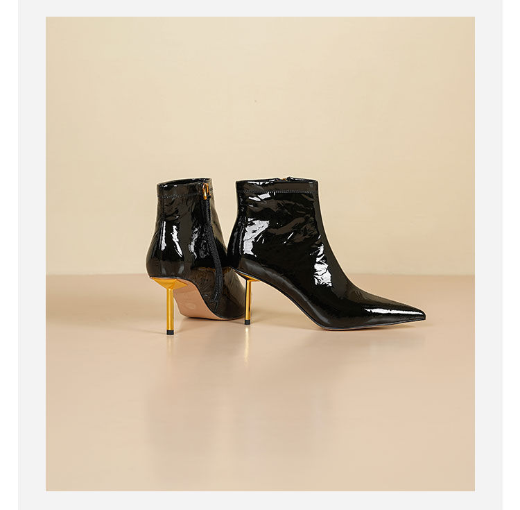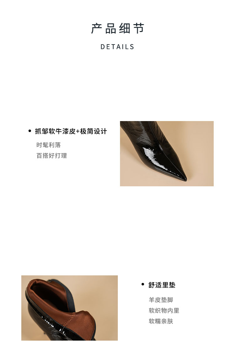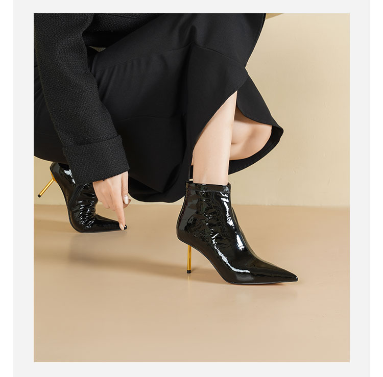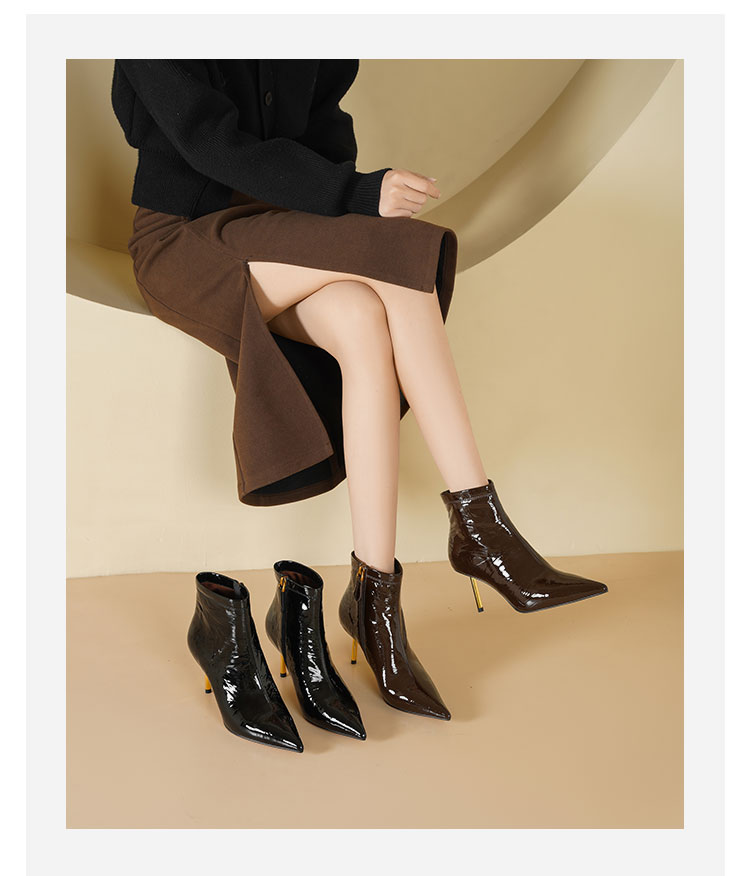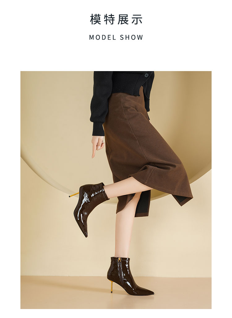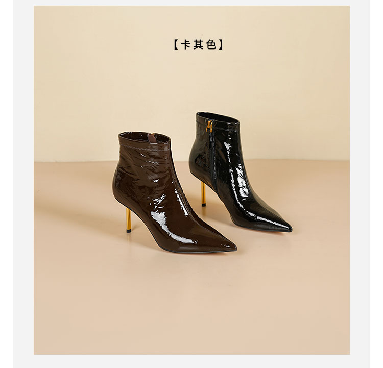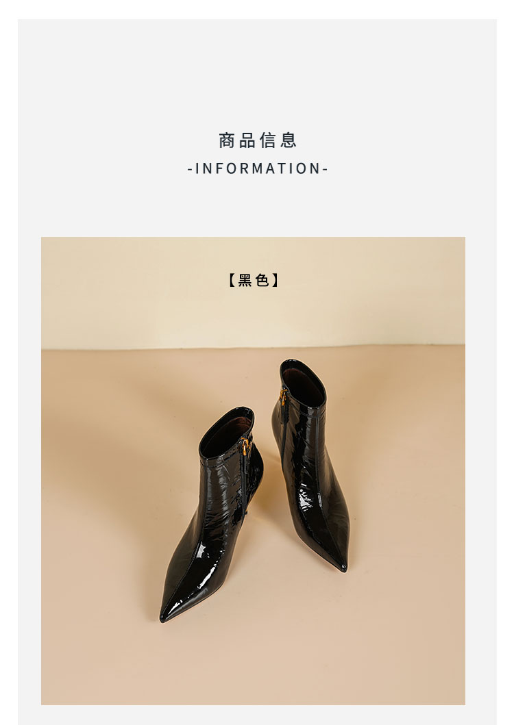 Westory2025年冬季尖头高跟简约抓邹软牛漆皮百搭短靴S25DS86221