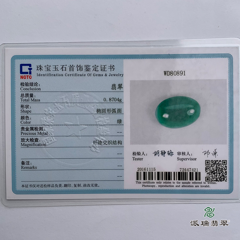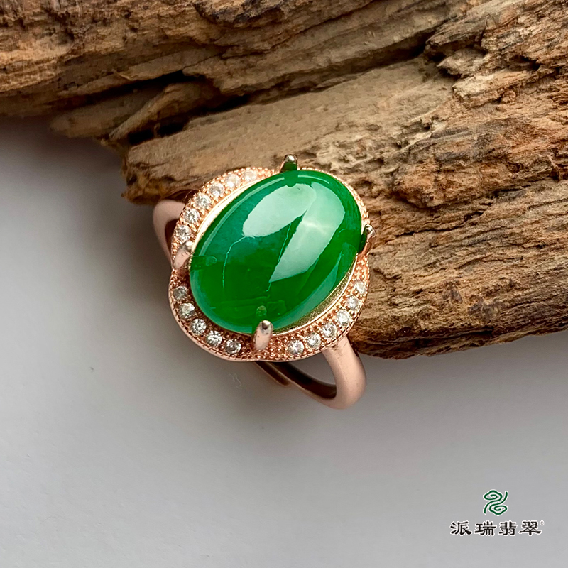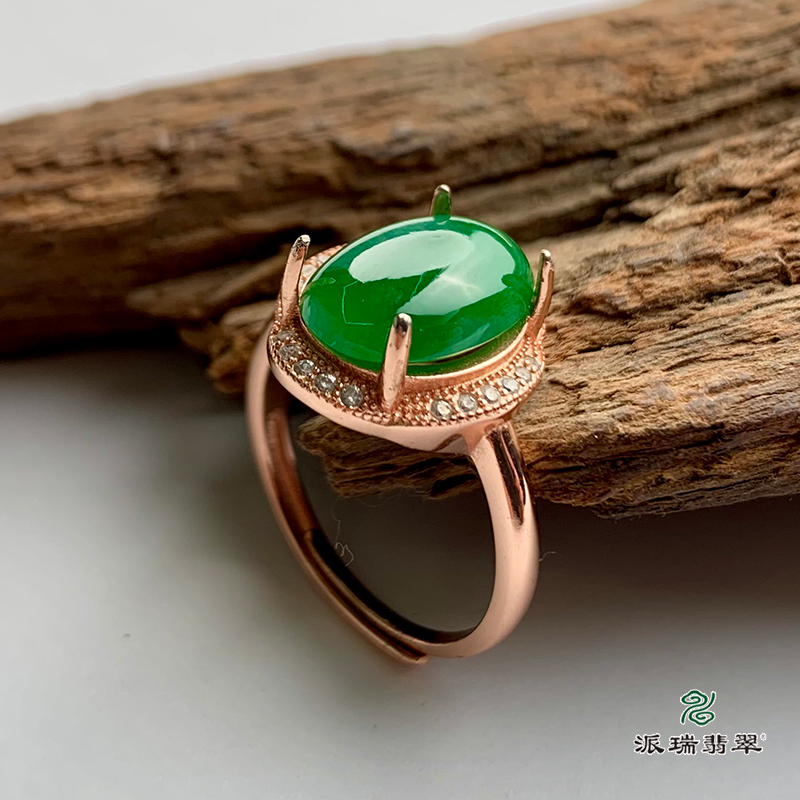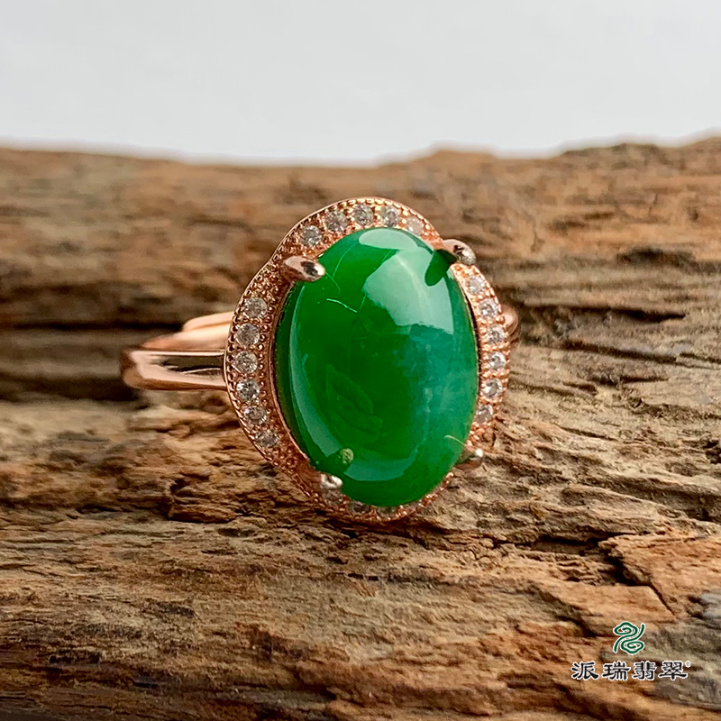 派瑞翡翠 翡翠戒面 冰种 绿色