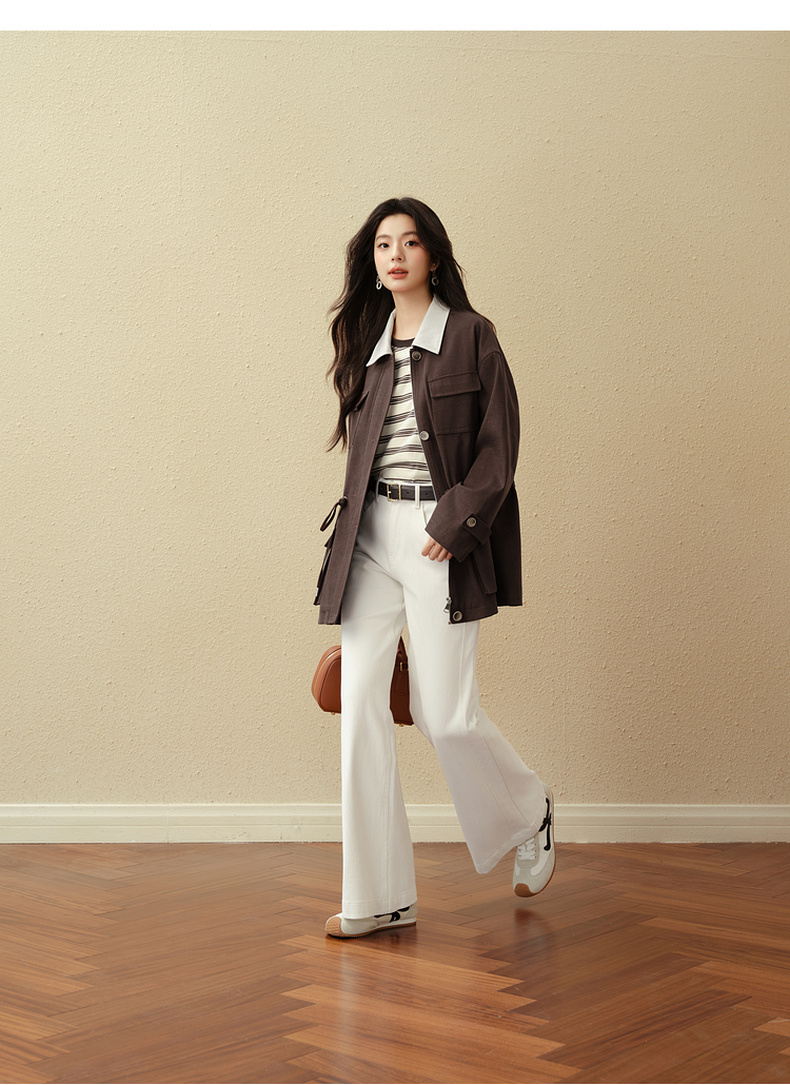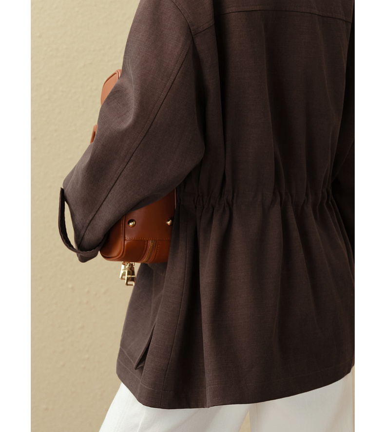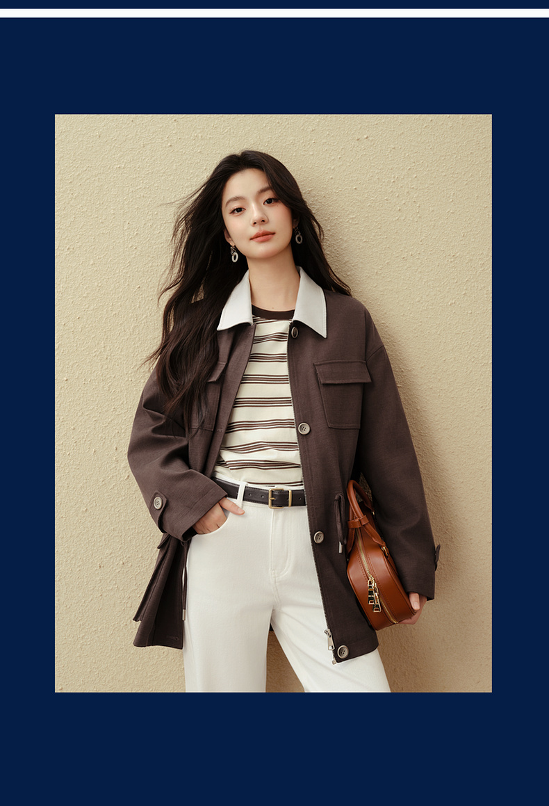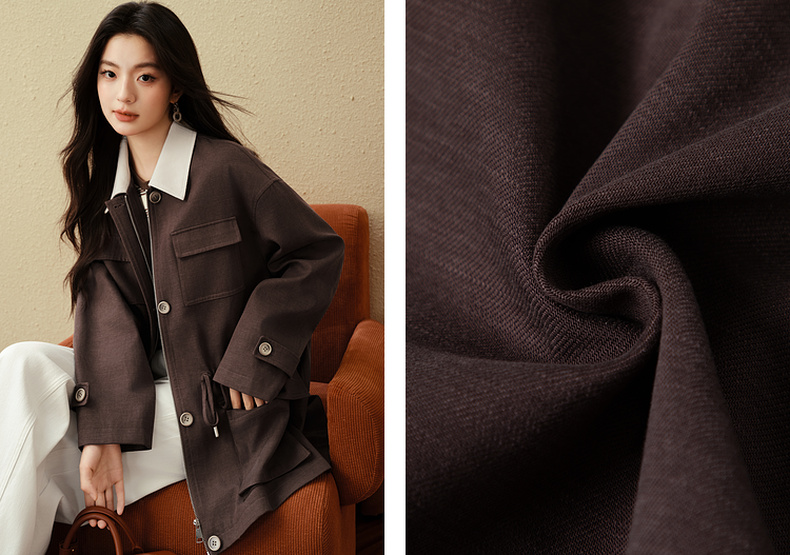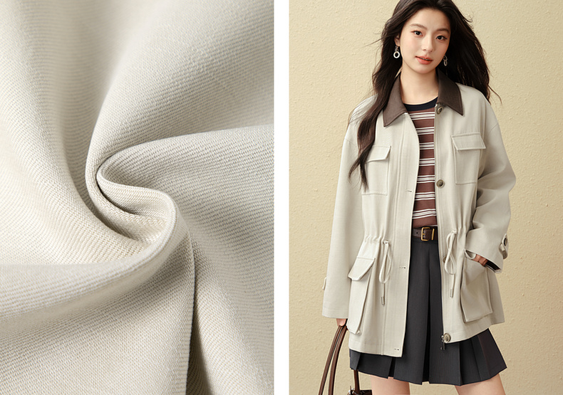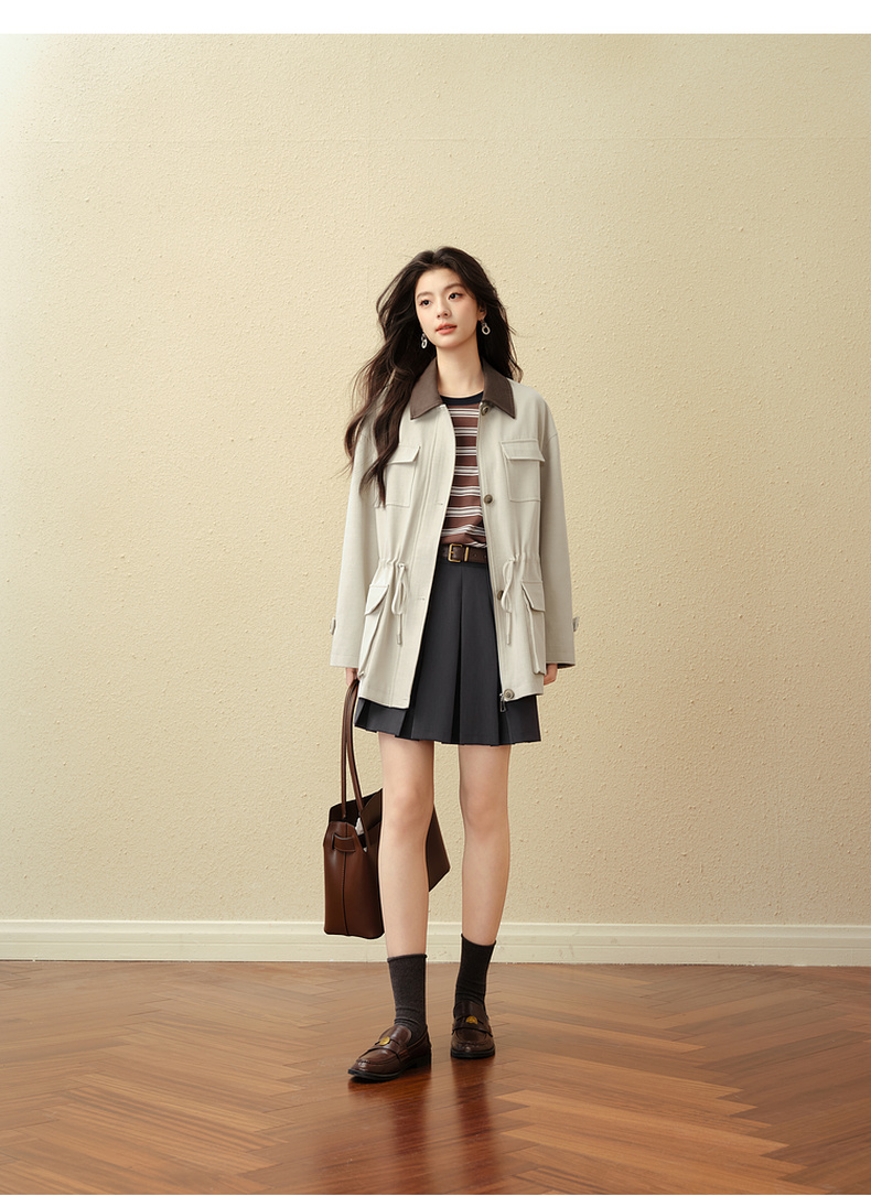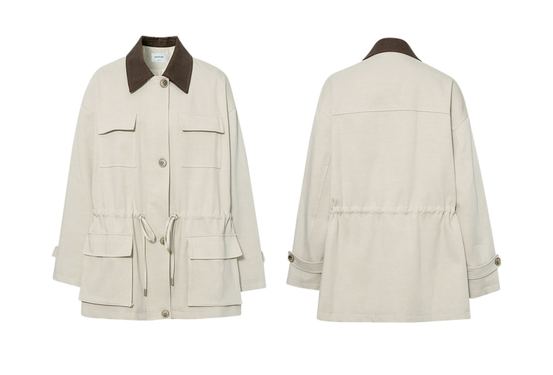 【严选】诗凡黎巴恩风撞色翻领质感风衣25秋新款天丝棉复古抽绳轻便短外套7G8160241