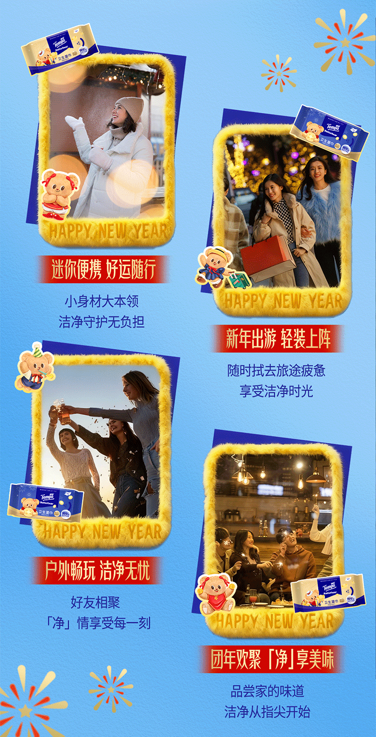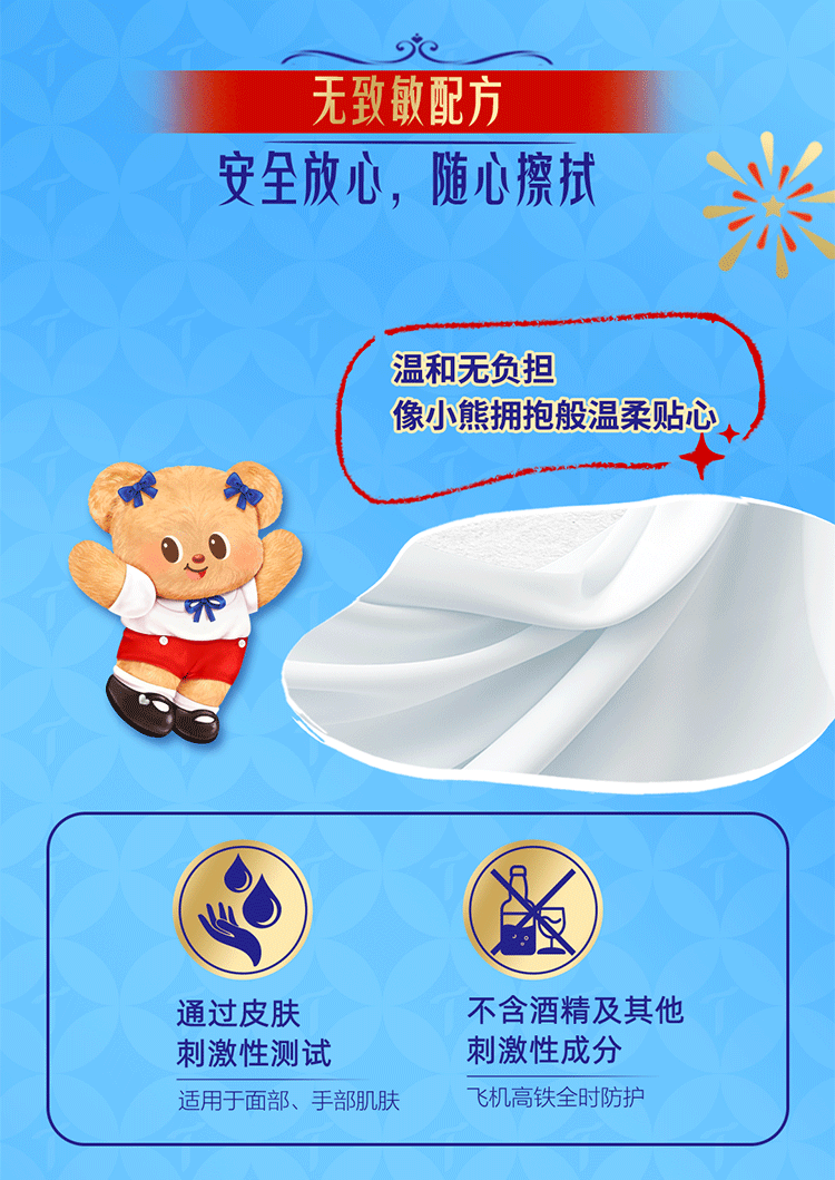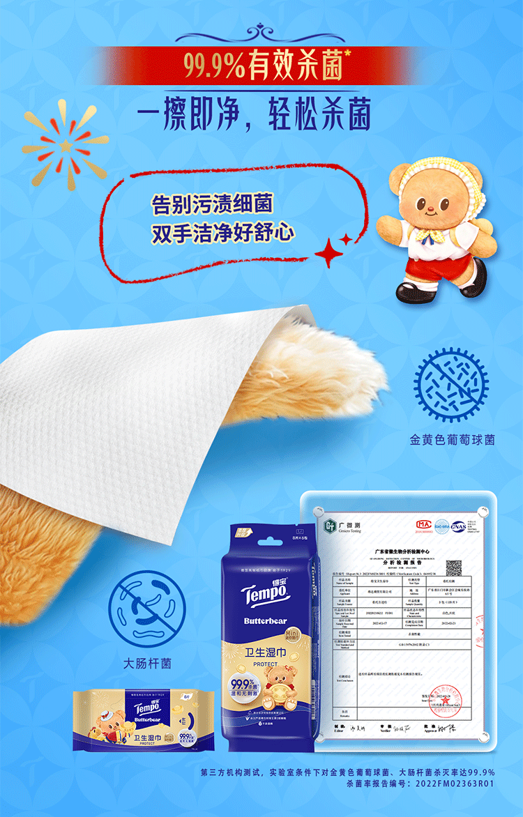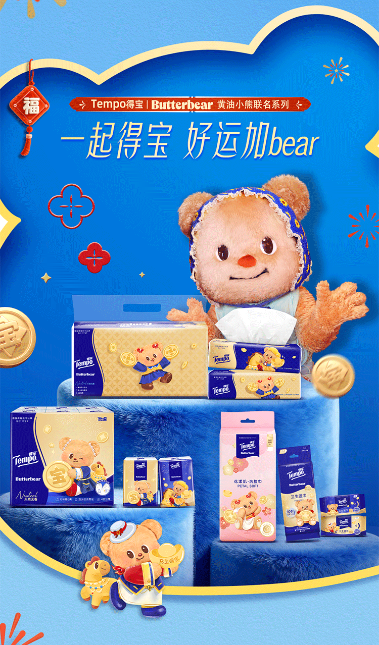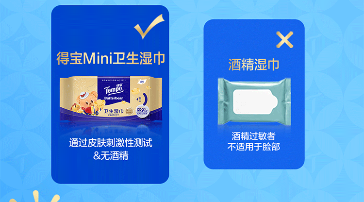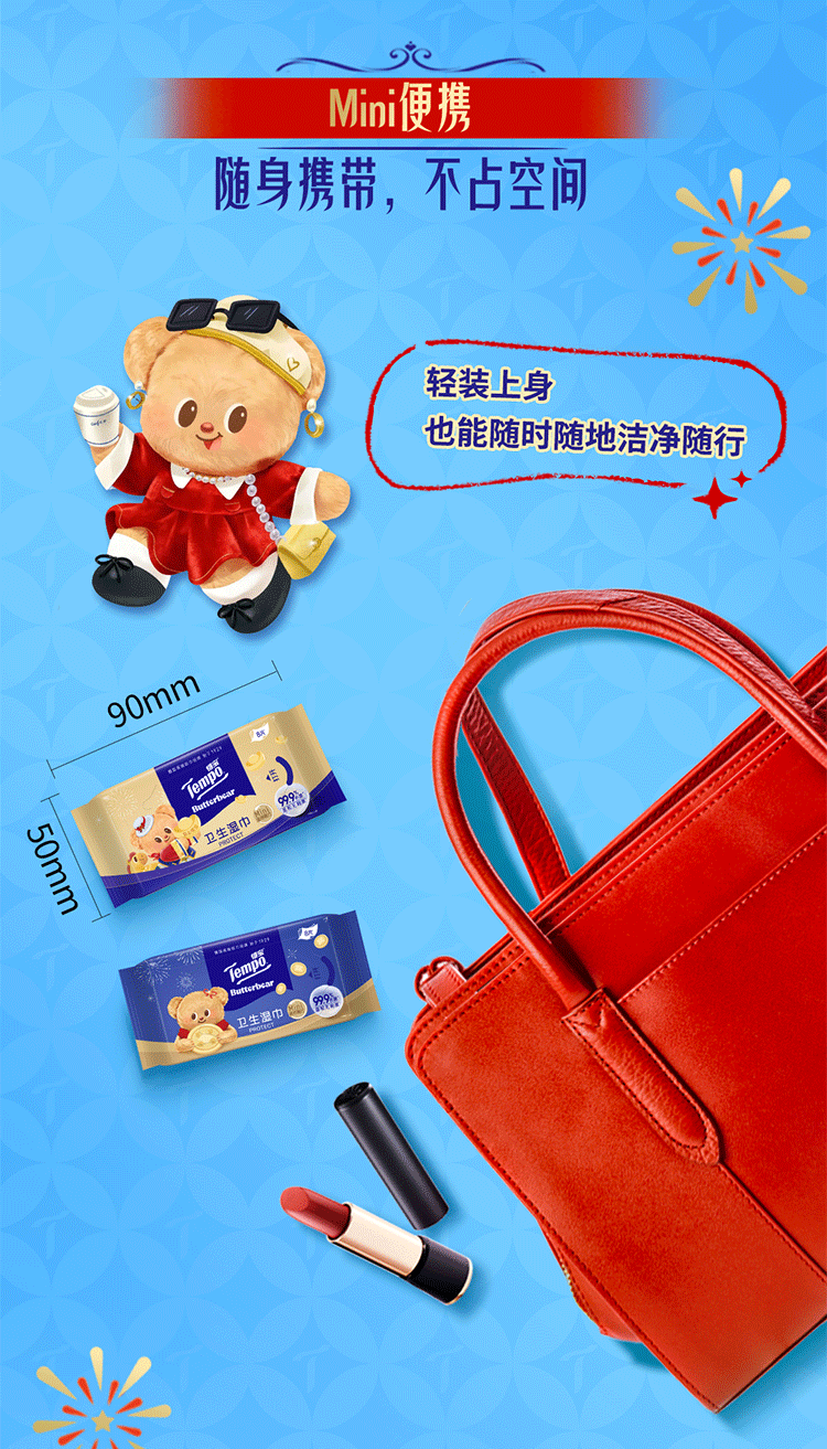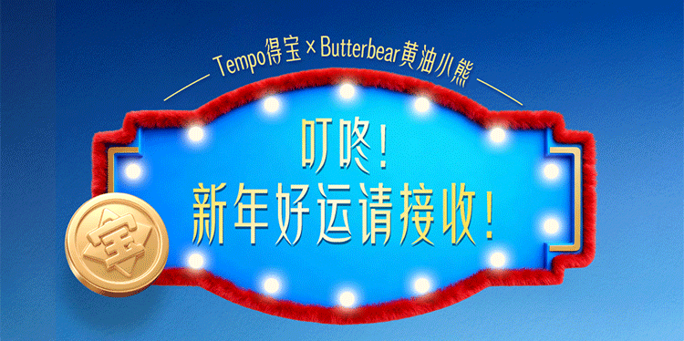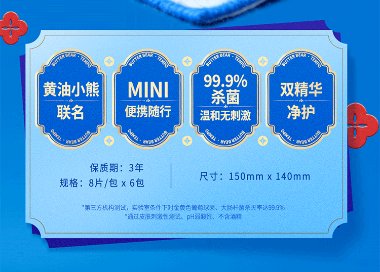 Tempo得宝 新年特别款 黄油小熊联名 迷你便携装 卫生湿巾8片x6包/袋(顺手买)
