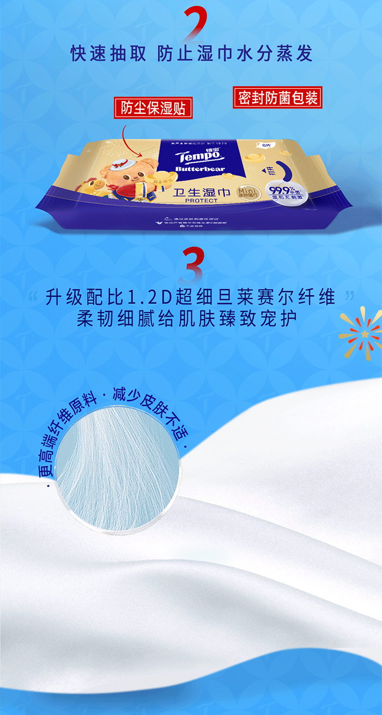 Tempo得宝 蚕丝凝萃悬挂洗脸巾 加大加厚 60抽/提 添加金盏花双萃 敏感肌可用