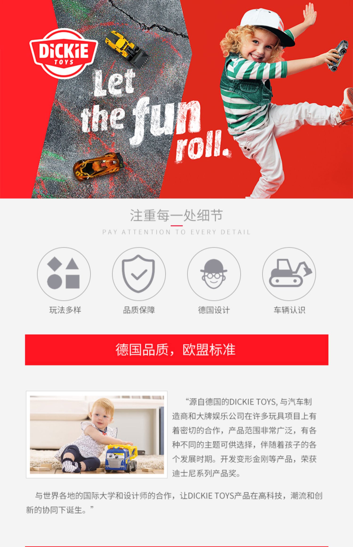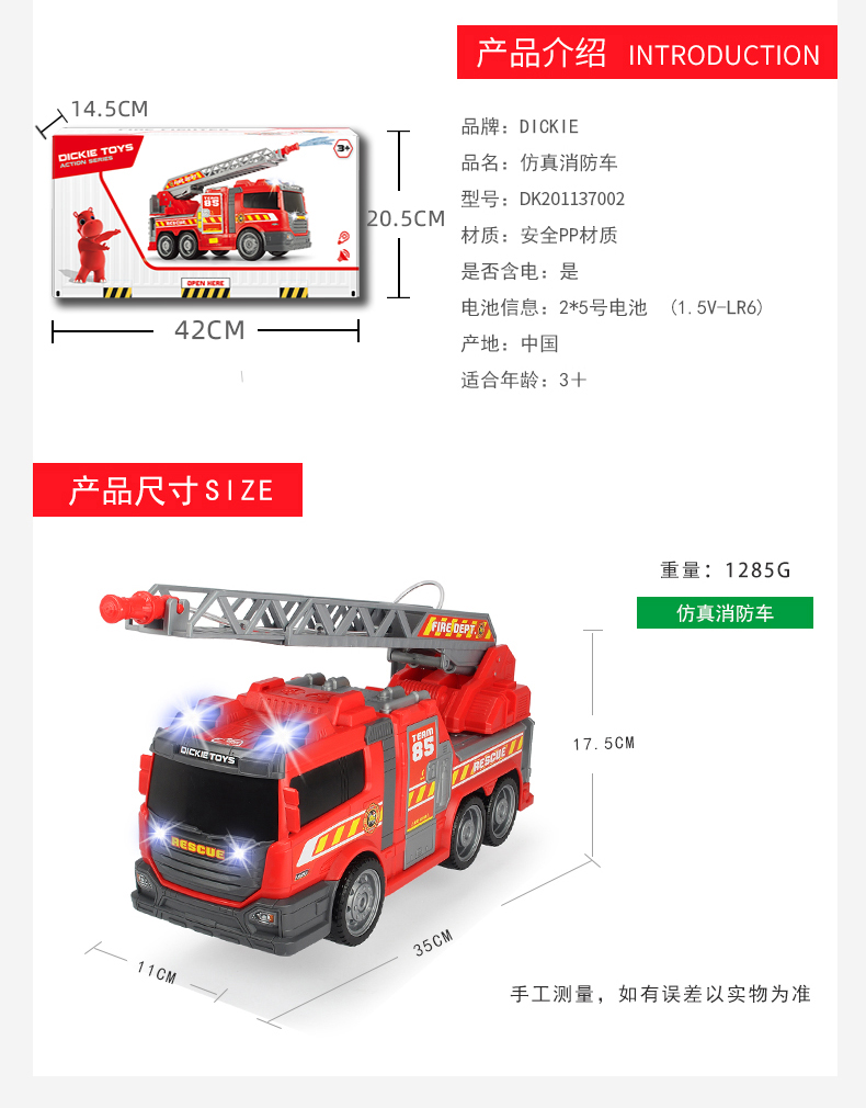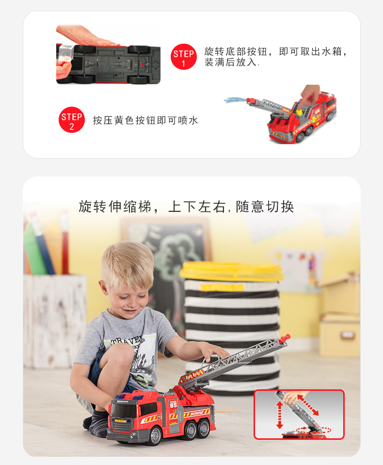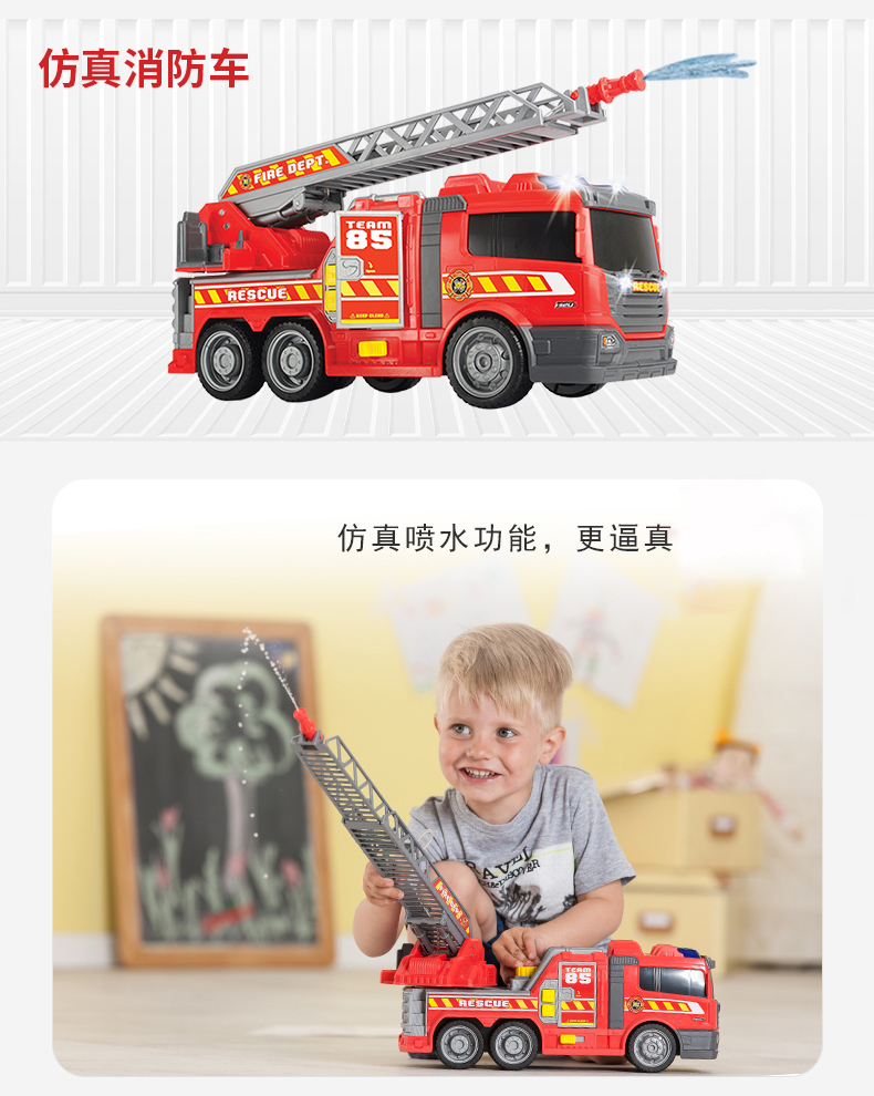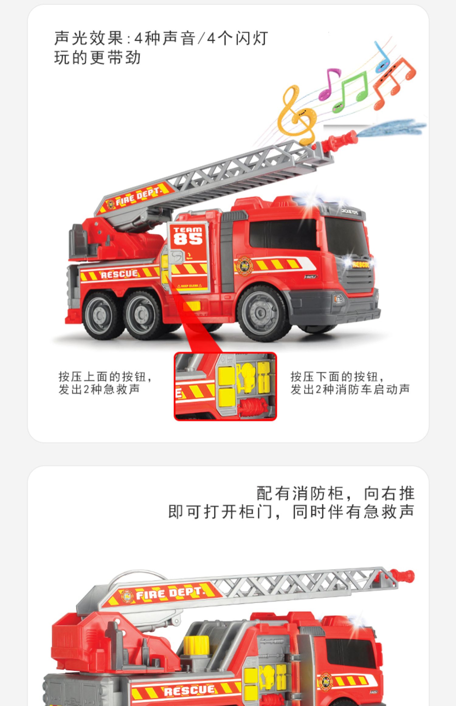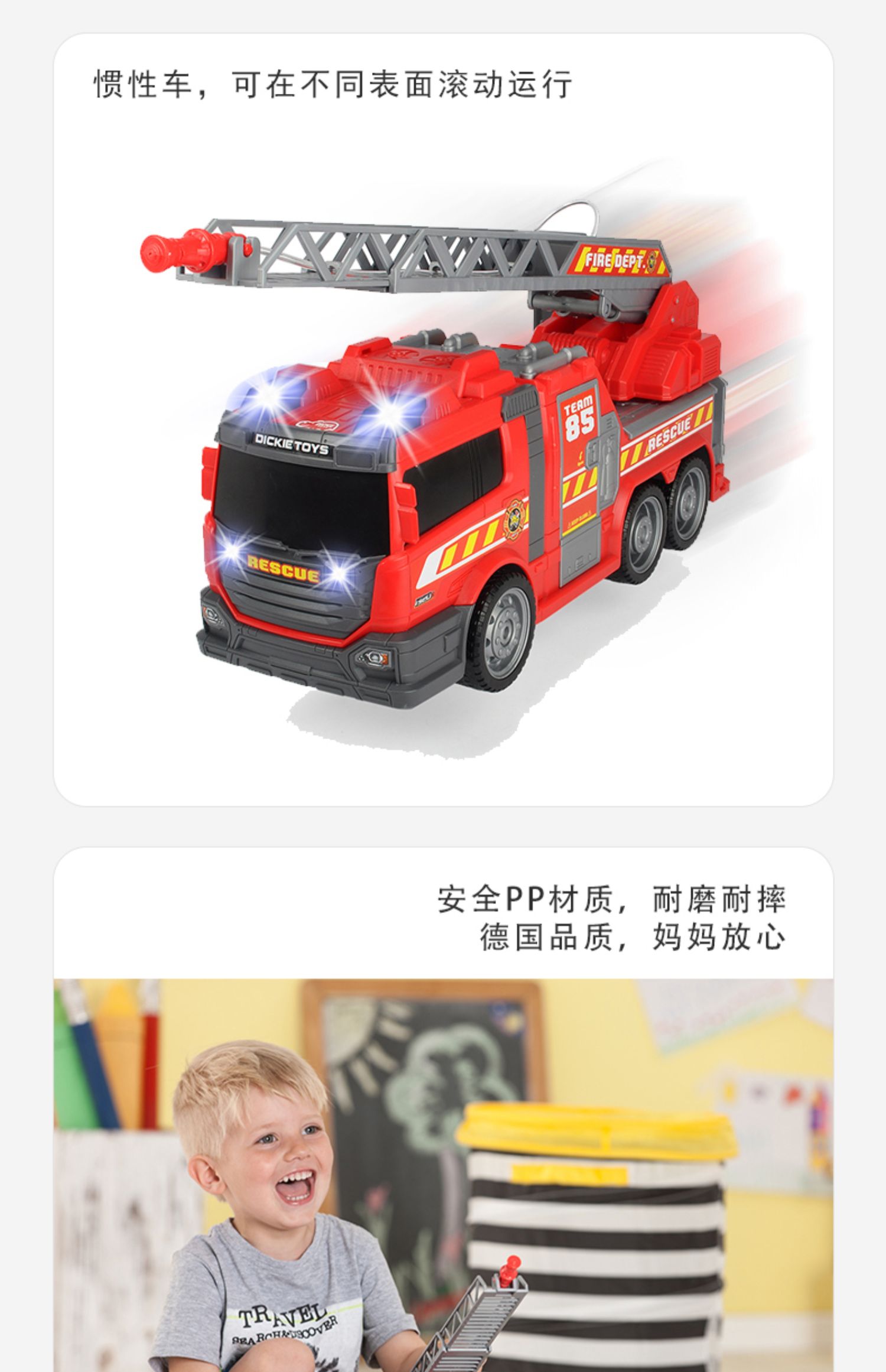 德国Dickie 儿童大号喷水仿真消防车惯性声光模型玩具男孩新款 3岁+