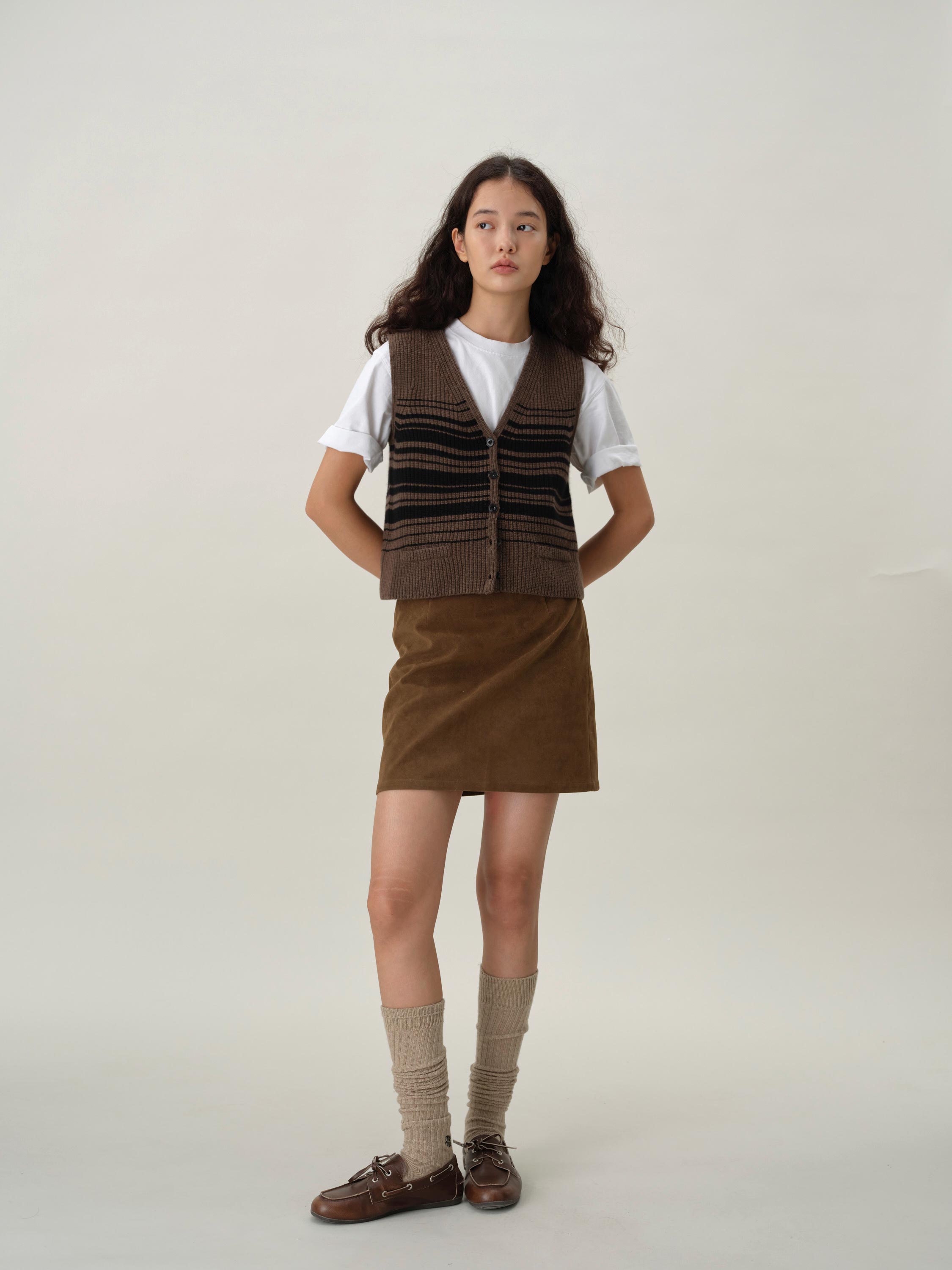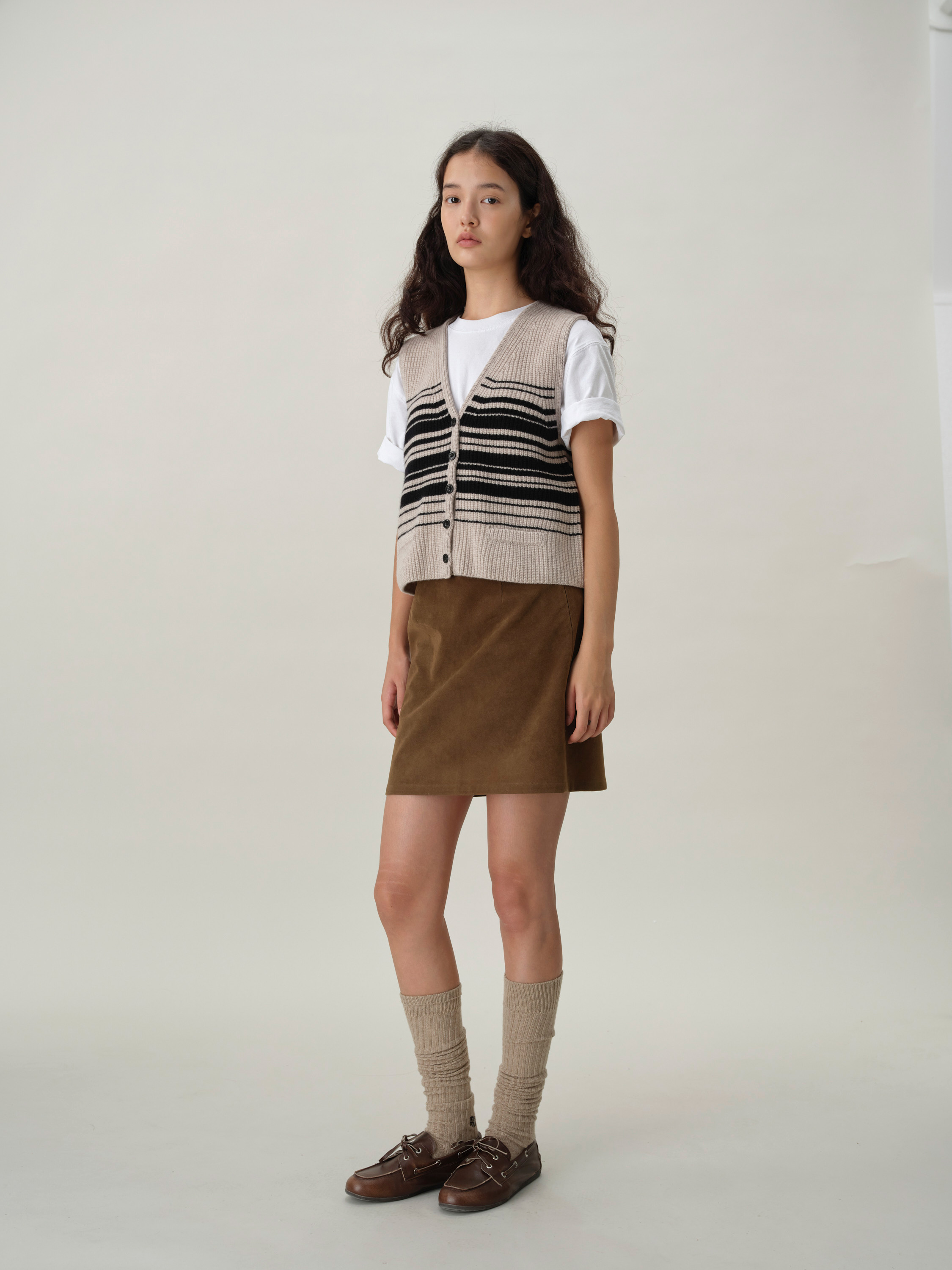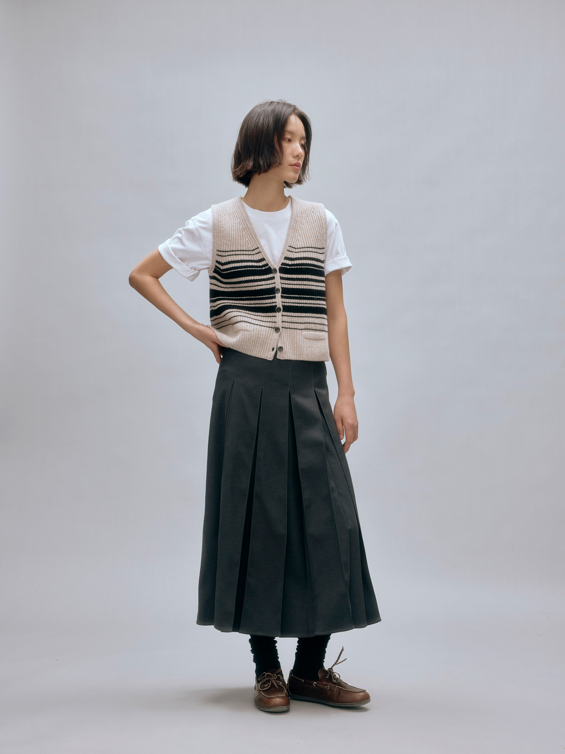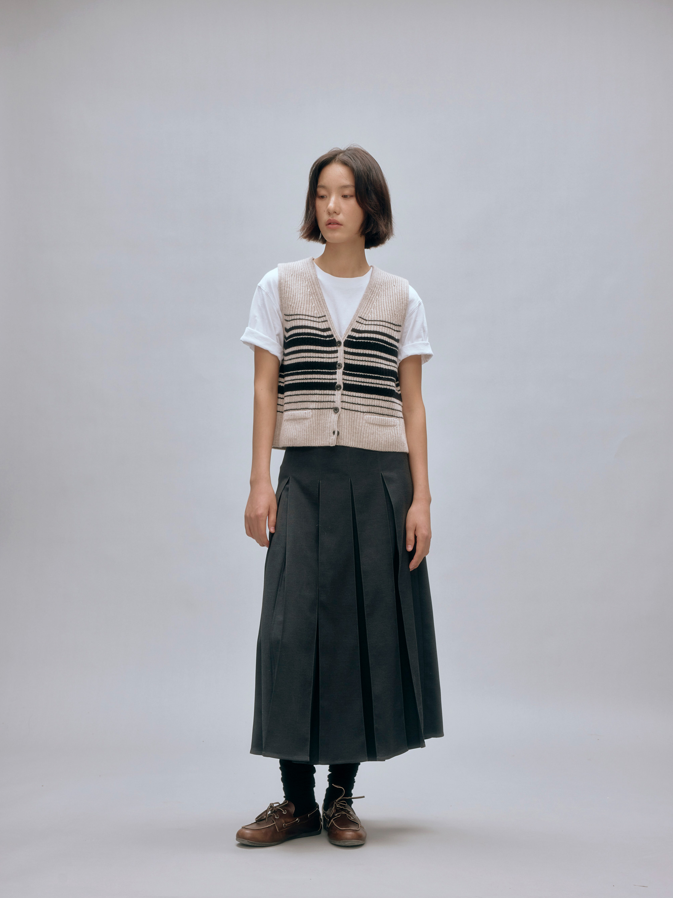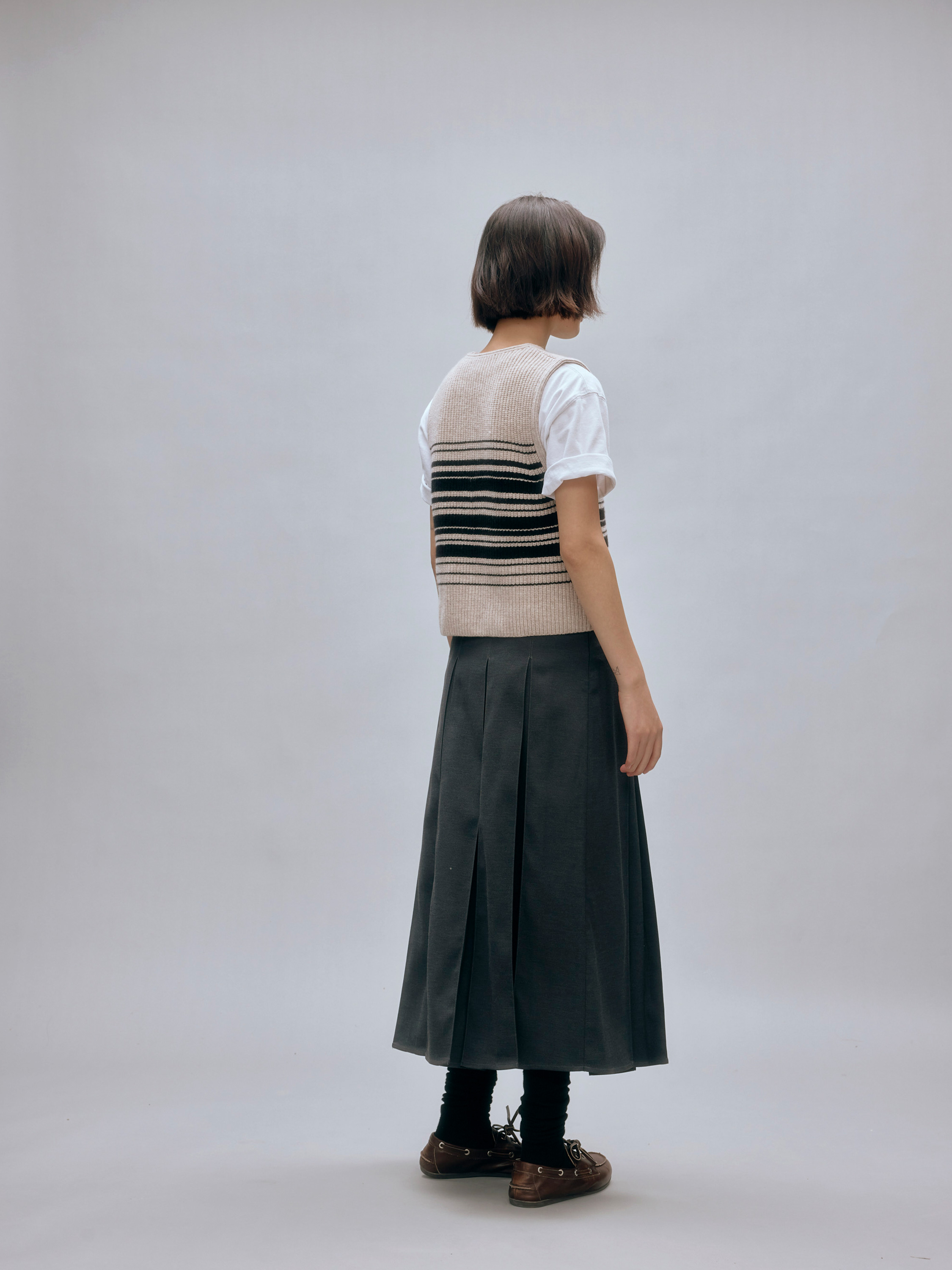 shyshystill/shy202408016/v领粗细条纹高品质全羊毛重磅无袖马甲