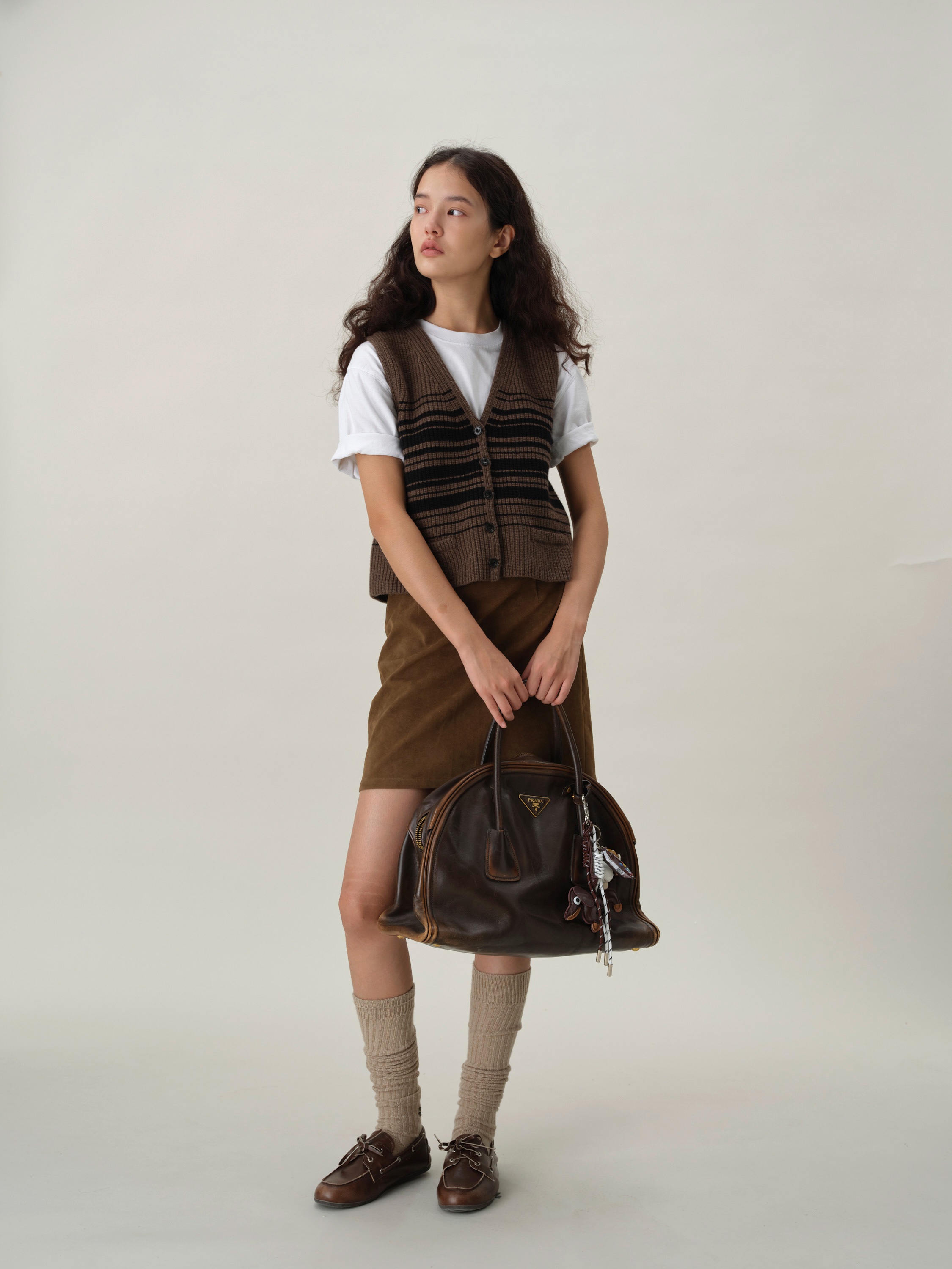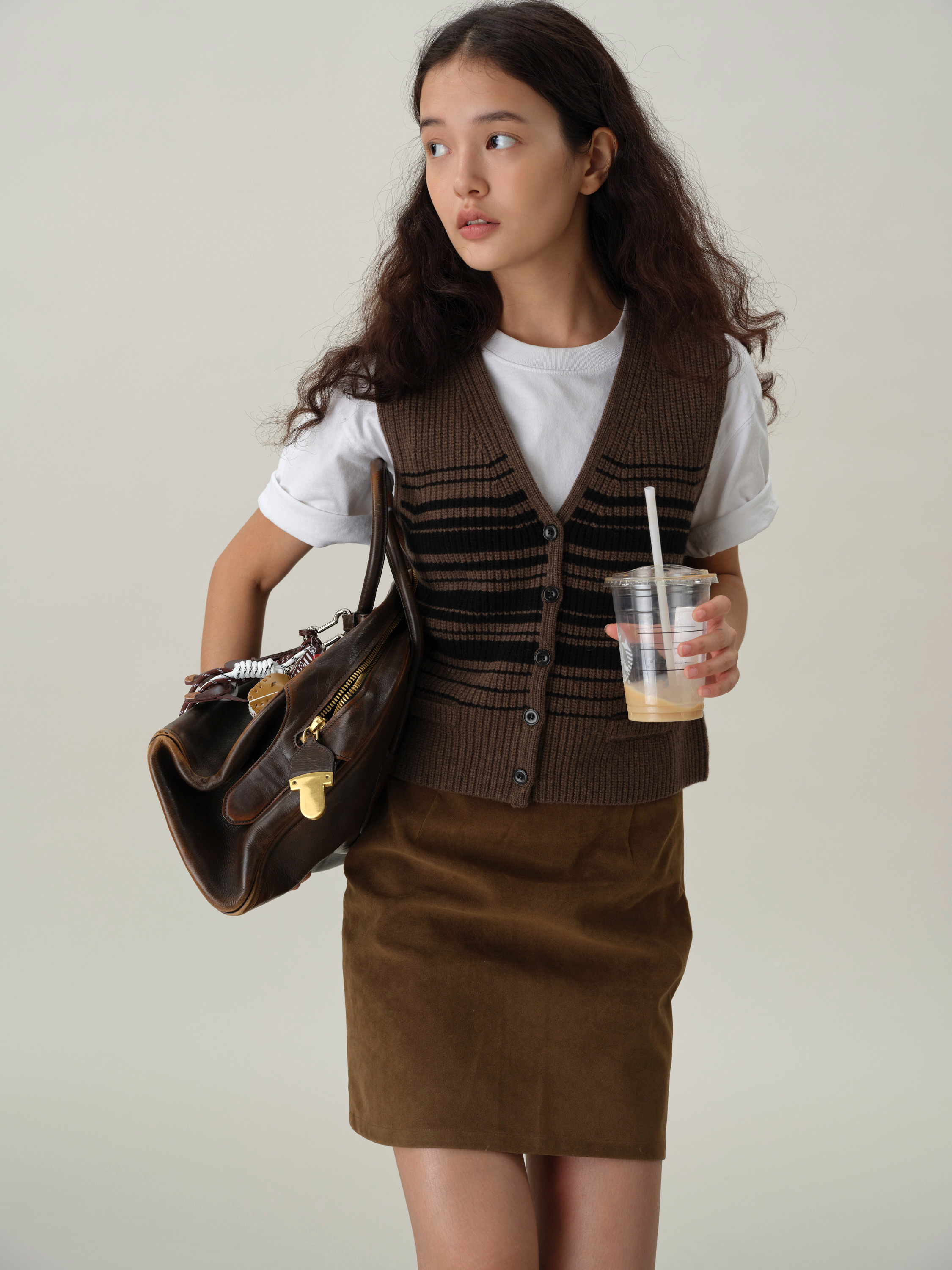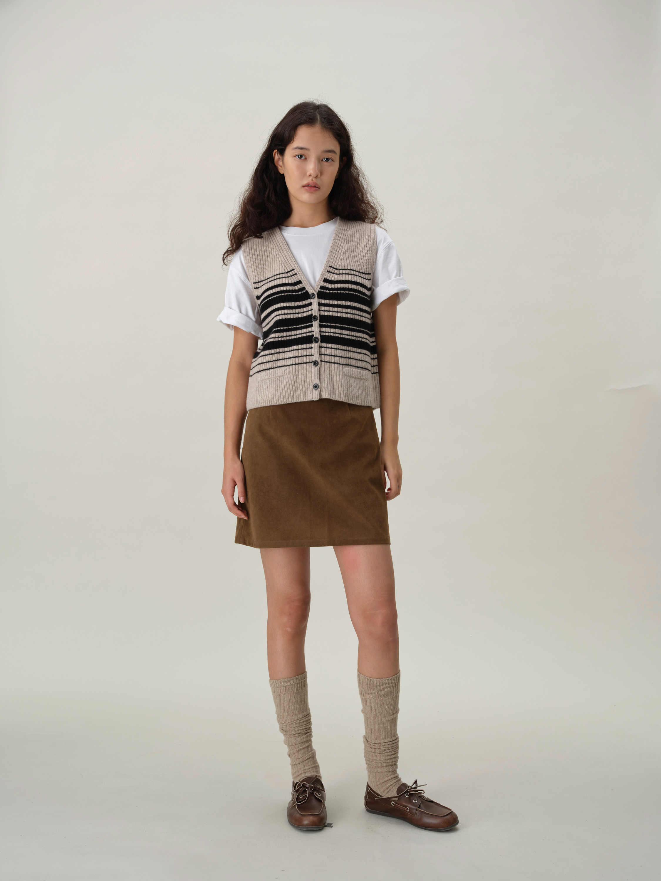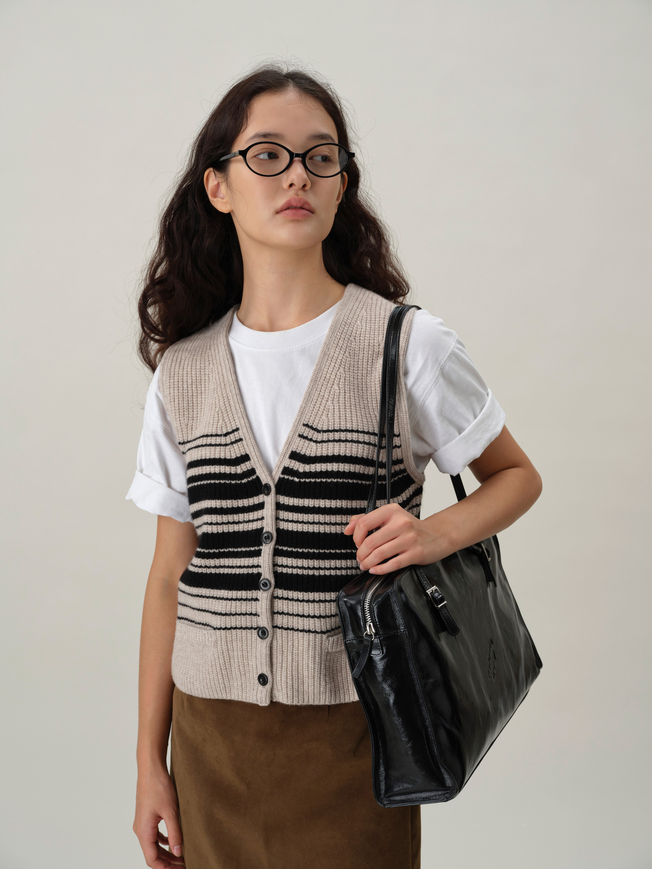 shyshystill/shy202408016/v领粗细条纹高品质全羊毛重磅无袖马甲