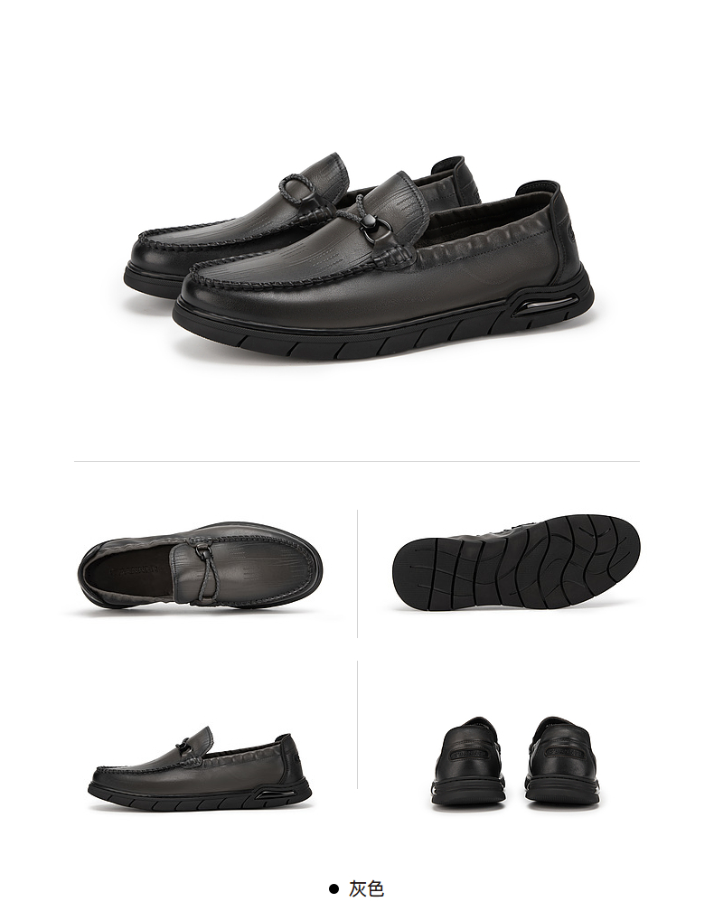 千百度男鞋一脚蹬休闲皮鞋春夏男士乐福鞋豆豆鞋大头皮鞋A24194777