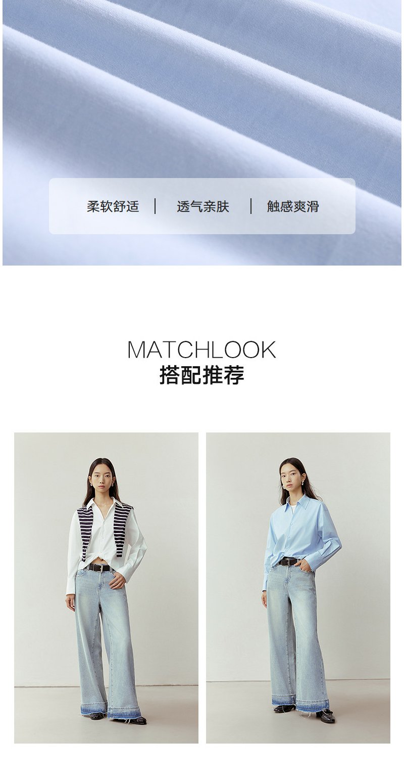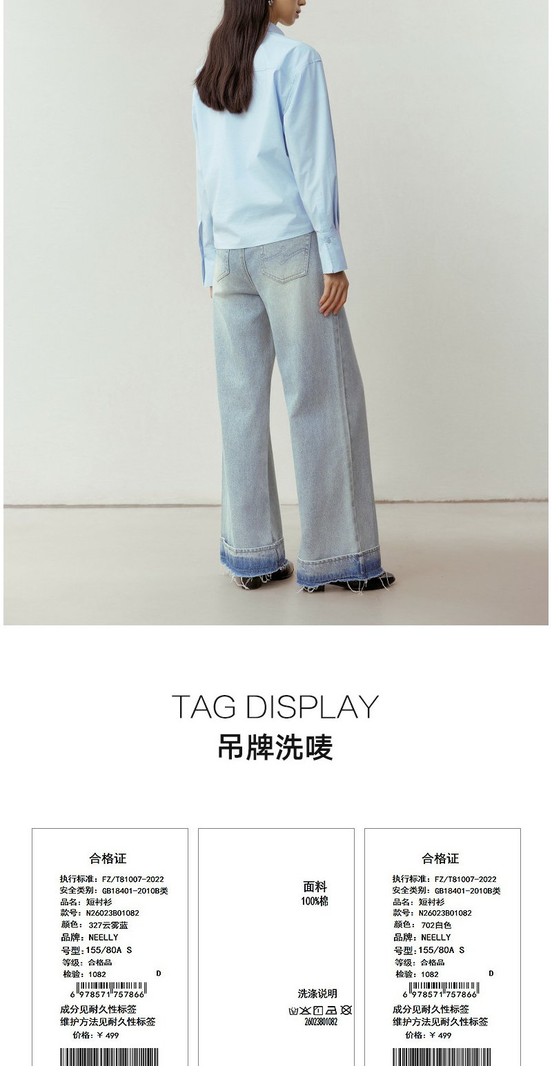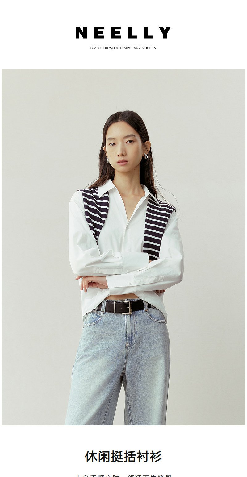 NEELLY纳俪商场同款春季新款设计感挺括衬衫女通勤随性百搭外套N26023B01082