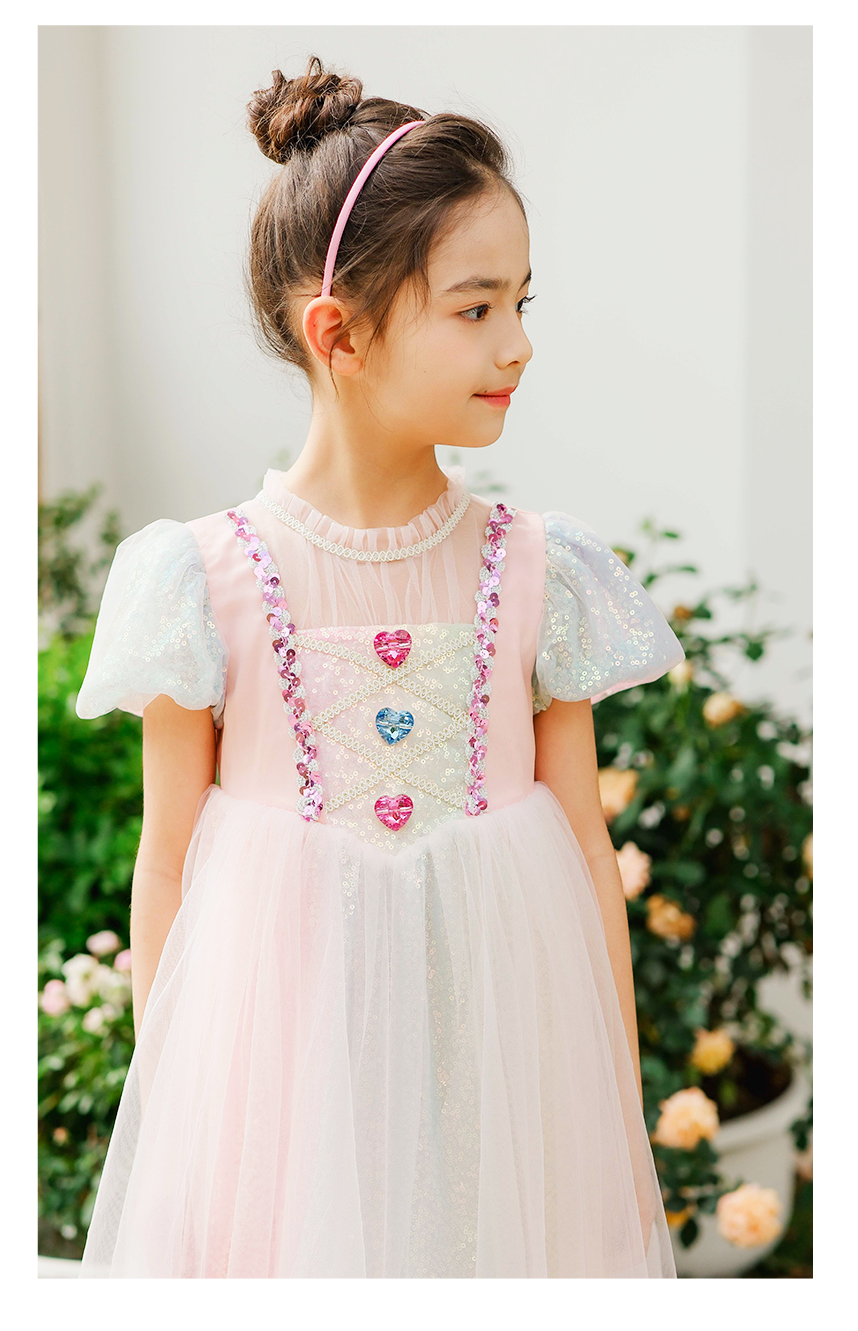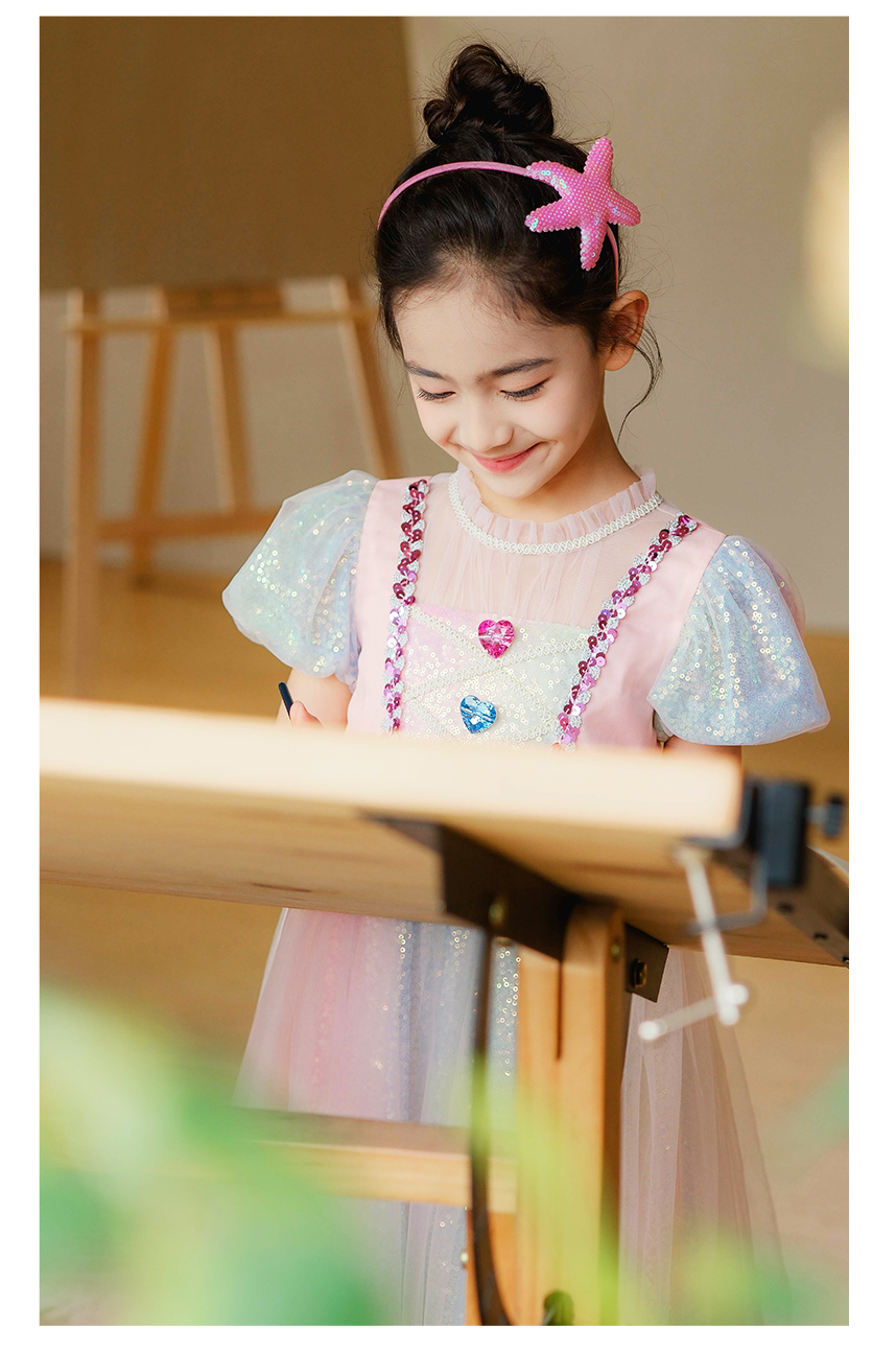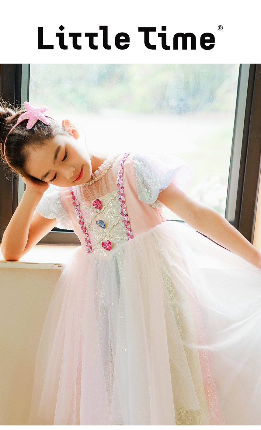 littletime女童甜美公主裙2024春夏新款短袖网纱裙儿童洋气连衣裙