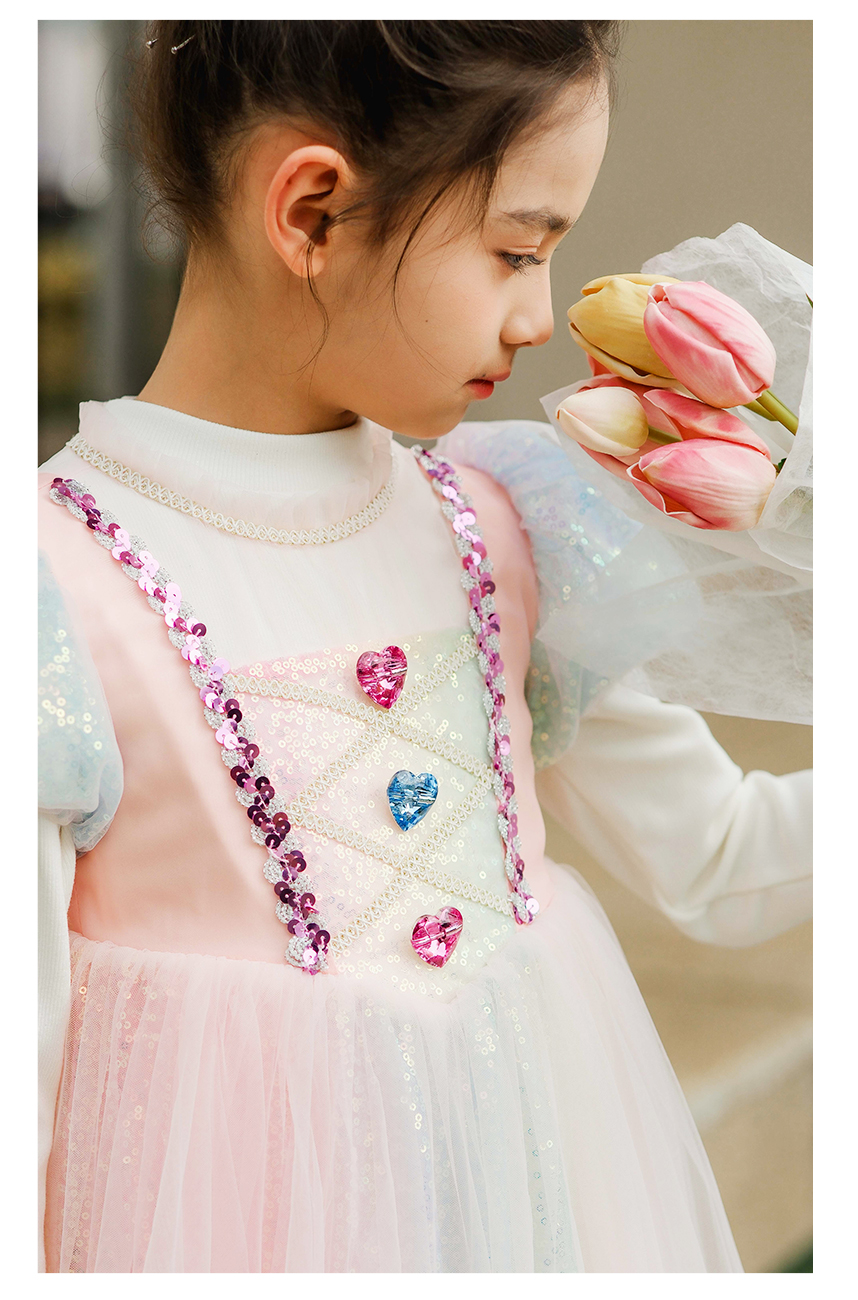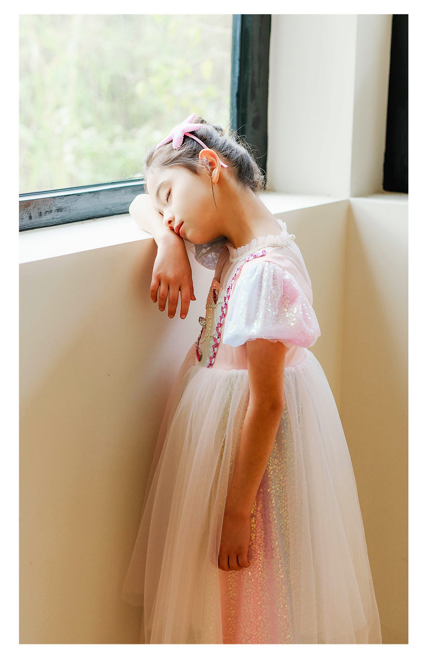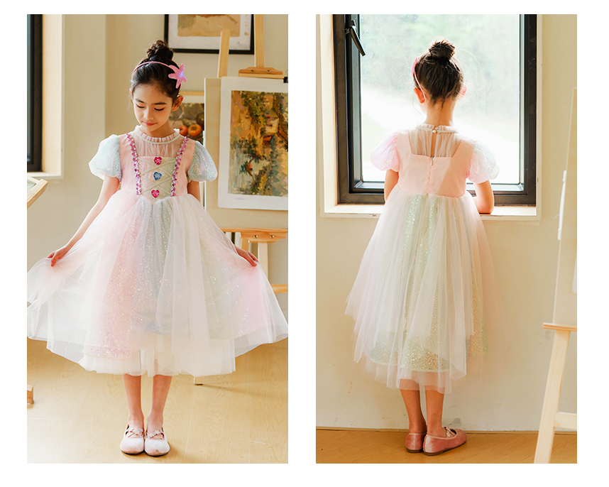 littletime女童甜美公主裙2024春夏新款短袖网纱裙儿童洋气连衣裙