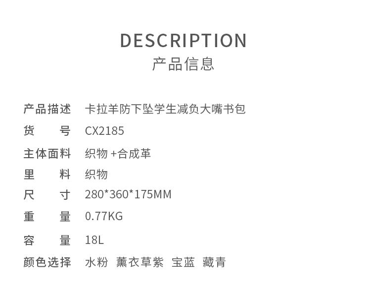【1-3年级】卡拉羊18L小学生减负大嘴书包S2185